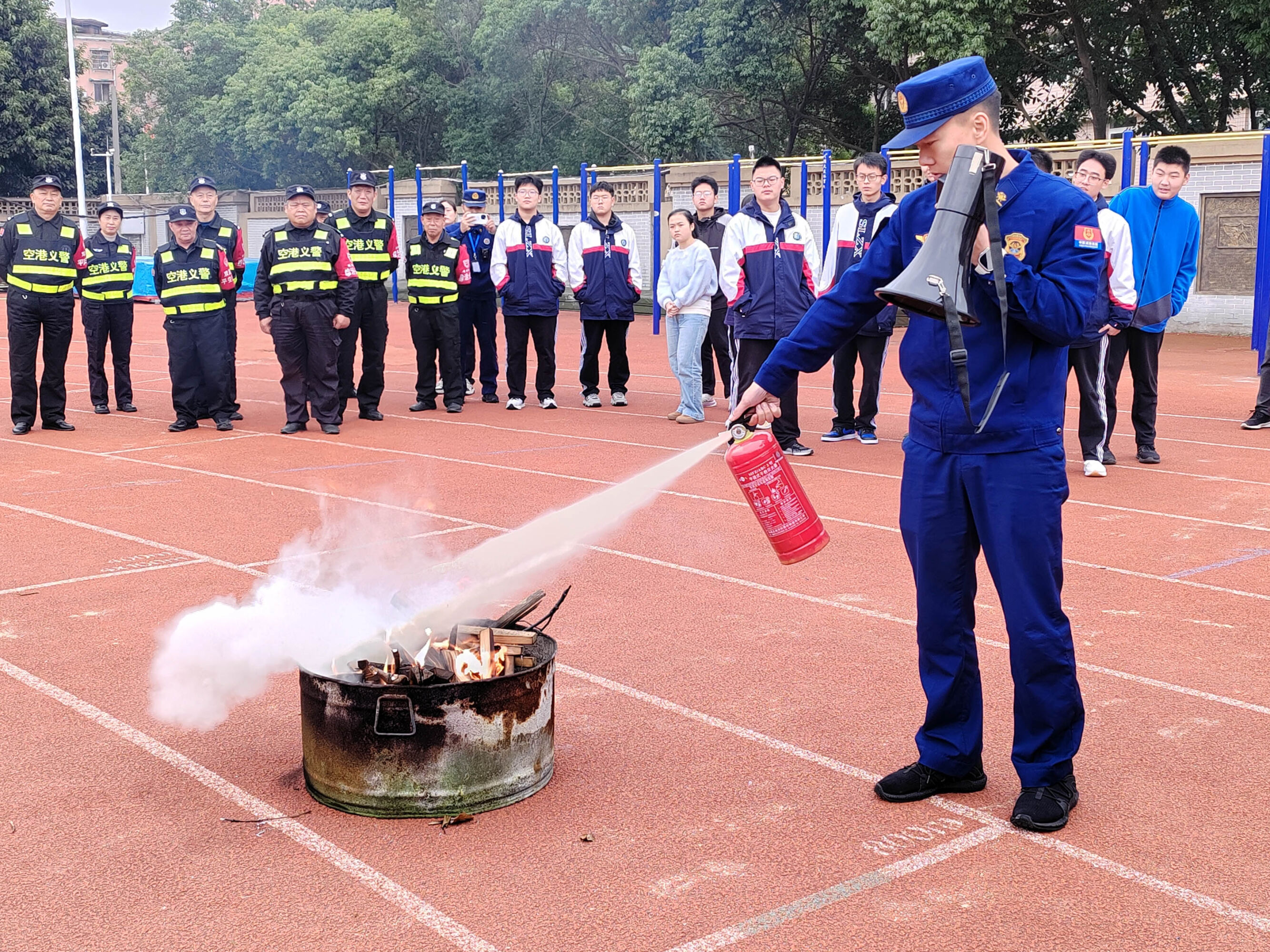 图6 参培师生进行实操练习此次消防安全培训活动,不仅增强了师生的消防安全意识和应急处置能力,也为学校的安全稳定发展奠定了坚实的基础。