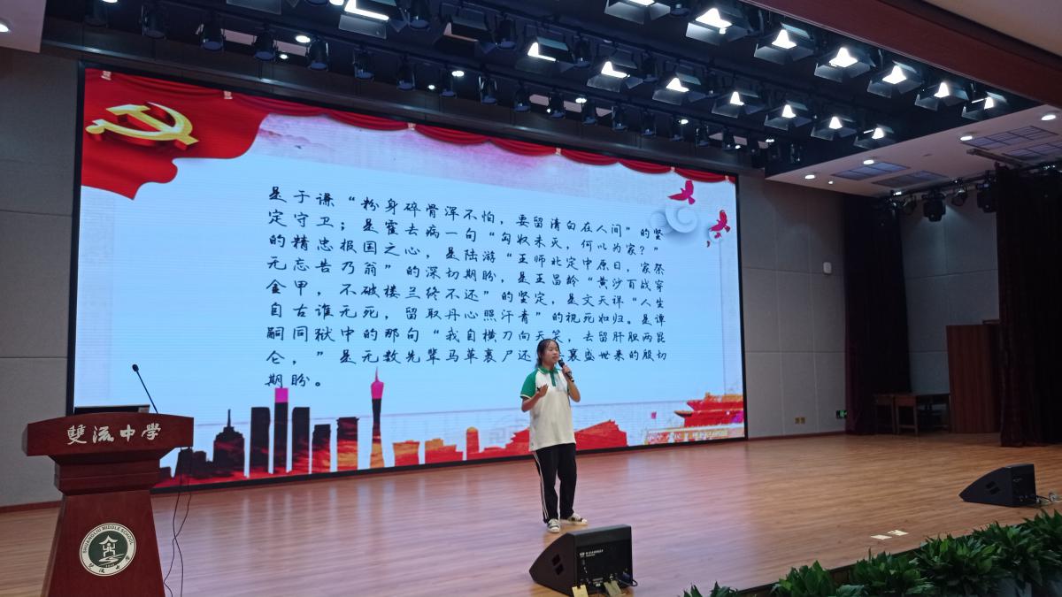 德育安全处副主任邱国界为同学们详细介绍 “综评·引领”接着,初2020级2班的周贞言、高2020级6班的王宏杰和高2019级20班赵敏三位学生代表,分别以“向国心,扬国志”“君子之德”和“双流中学是一所怎样的学校”为主题,进行了“综评·引领”示范课程的展示。他们分别站在家国情怀、传统美德和优秀校风的角度,为大家带来了独具双流中学特色的视觉盛宴和情怀感悟,也让大家认识到双流中学各班级每天都坚持进行综合素质评价,使班级和个人都得到了极大的成长。
