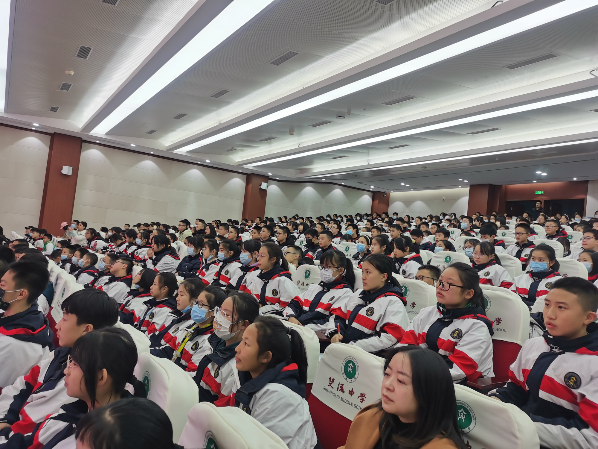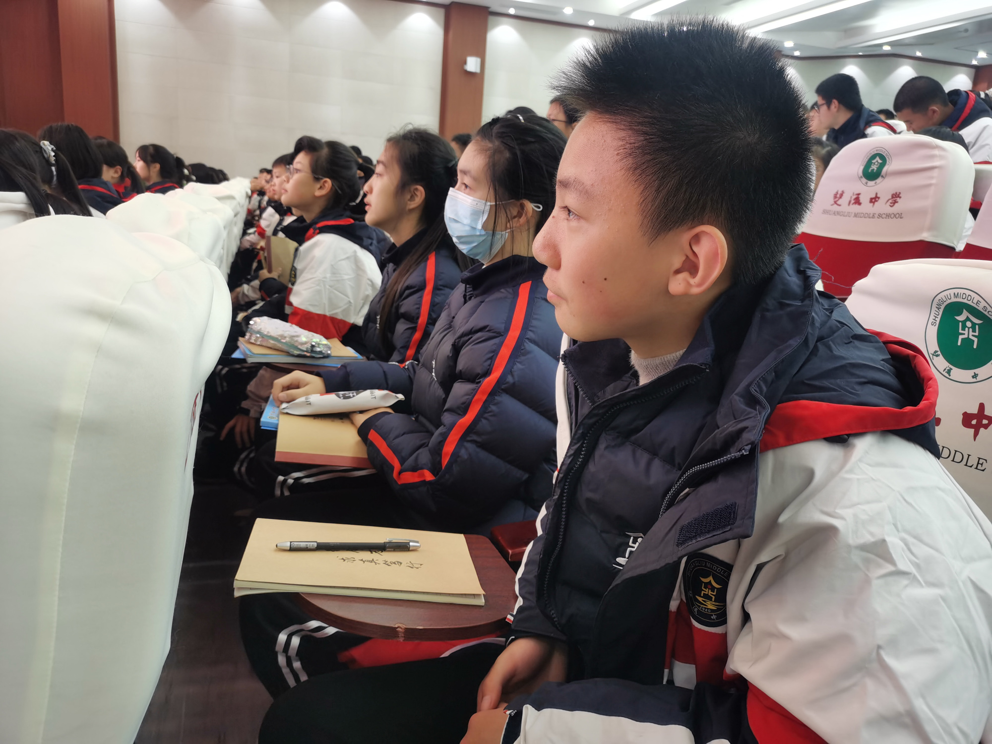 为了充分发挥优秀榜样的示范作用,激励同学们锐意进取,2021年11月23日晚18点,双流中学初中部在玉兰厅开展了综评引领示范展示活动。活动邀请了综评引领演讲比赛的四位特等奖获得者进行示范演讲,双流中学德育安全处副主任郝碧娅担任本次活动的主持人,初中部全体师生出席了活动。