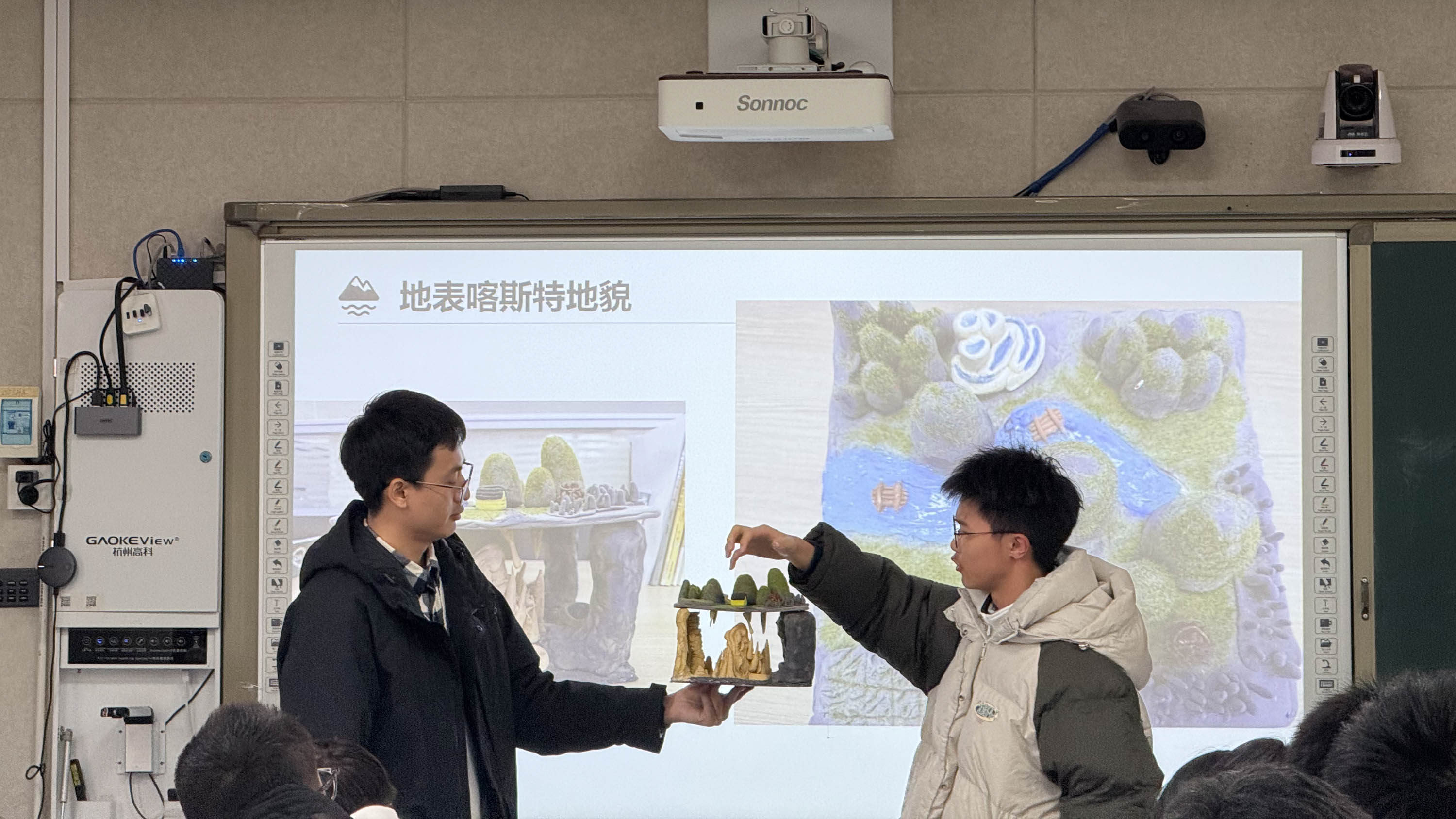 图3 集团校地理邓佳欣老师以科考中发现的“地下荷包蛋”带同学们走进《喀斯特地貌》
