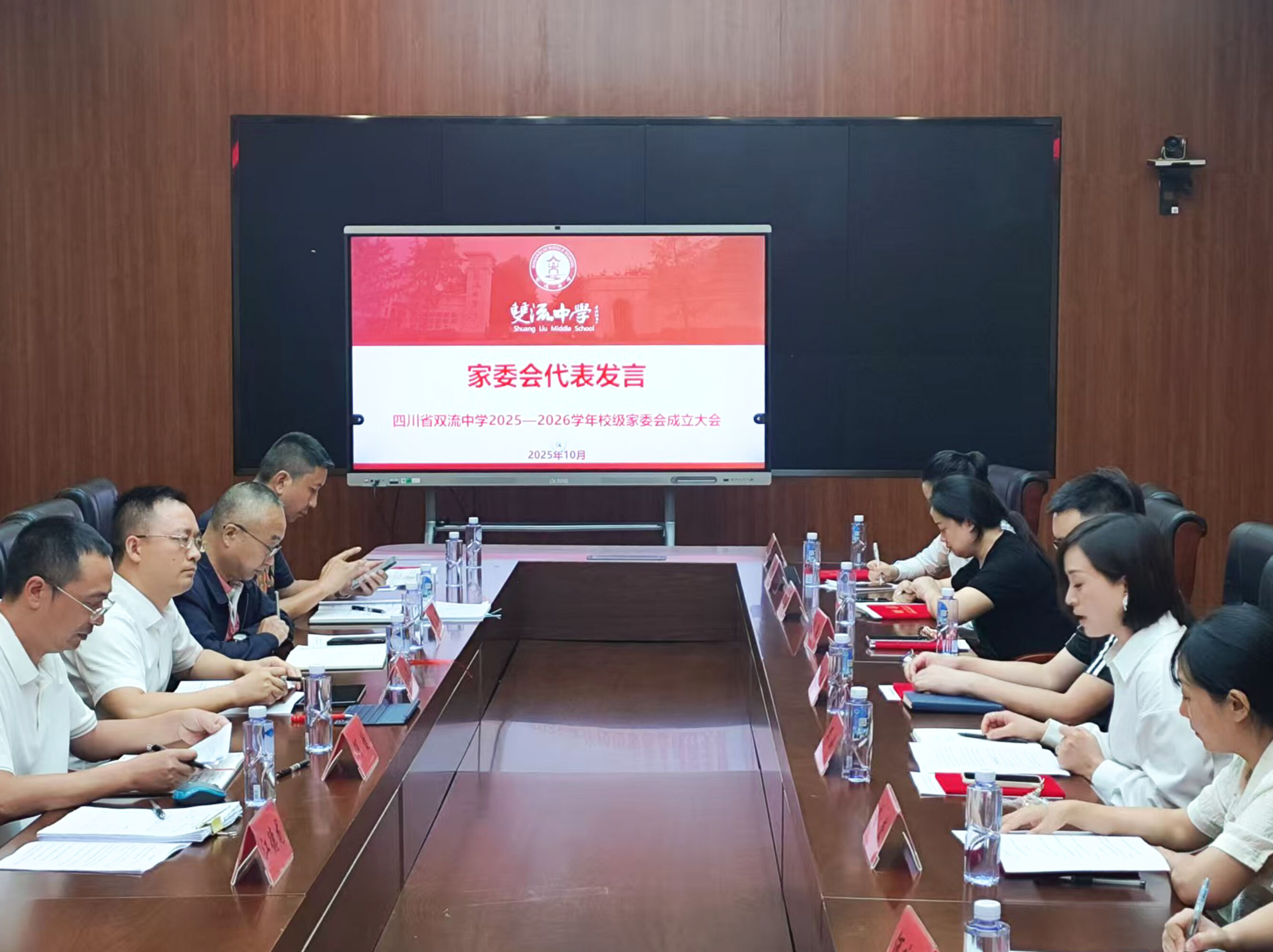 金秋十月,丹桂飘香。10 月 16 日下午,四川省双流中学景贤楼 106 会议室暖意浓浓,2025-2026 学年校级家长委员会成立大会在此举行。会议以 “家校同心创未来 共绘教育新蓝图” 为核心,由德育安全处主任何健全程主持,学校党委副书记、主持行政工作副校长杜江涛、德育安全处副主任夏小平、江德龙及德育干事和 12 位新一届校级家委会成员参会,共商育人大计。