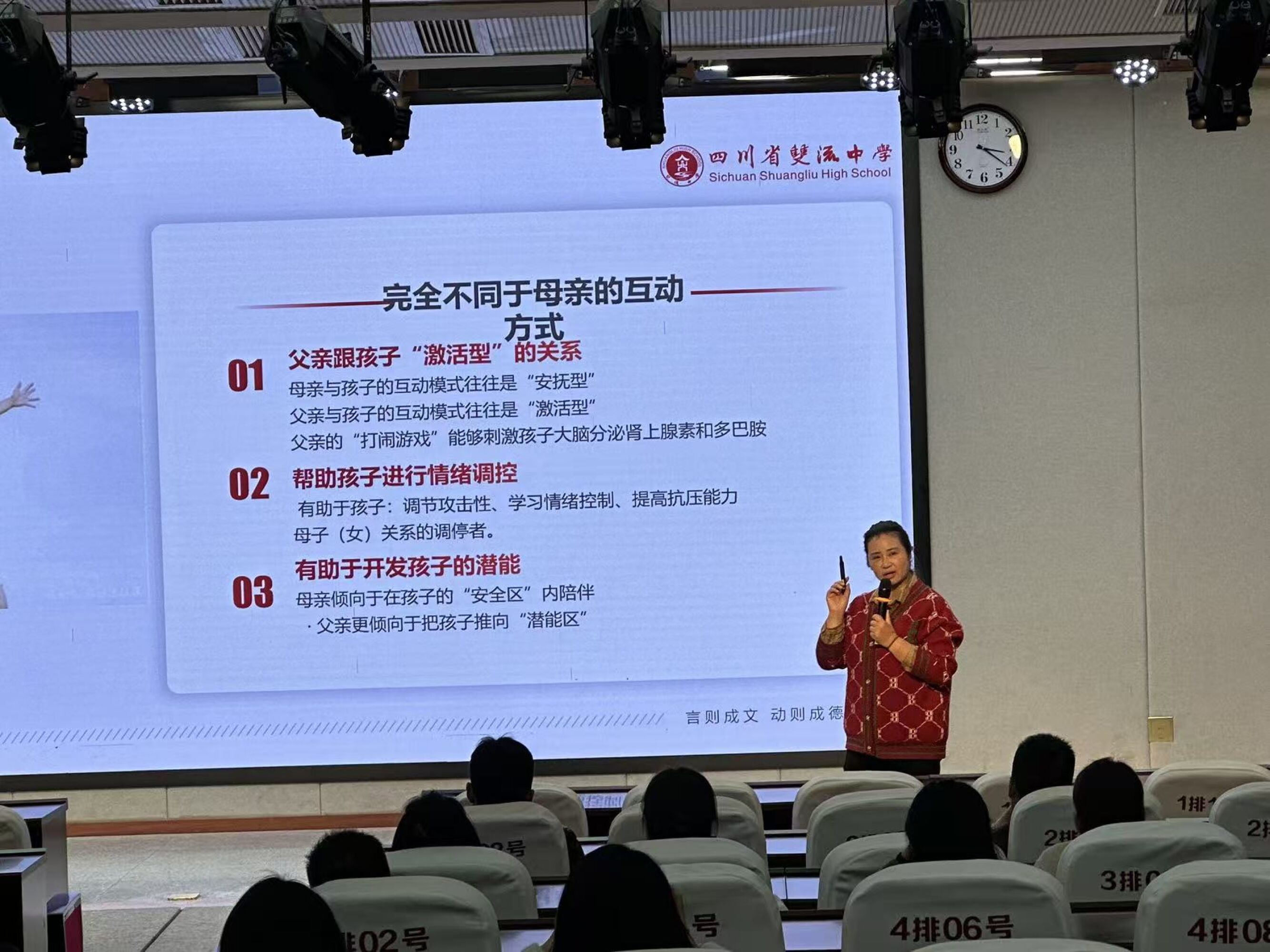 家庭是第一课堂,父亲的角色无可替代。2026年3月27日,双流中学家校社协同育人中心伍林老师带来《父亲的力量》专题讲座,与家长共同探讨父亲在孩子成长中的独特价值与陪伴智慧。