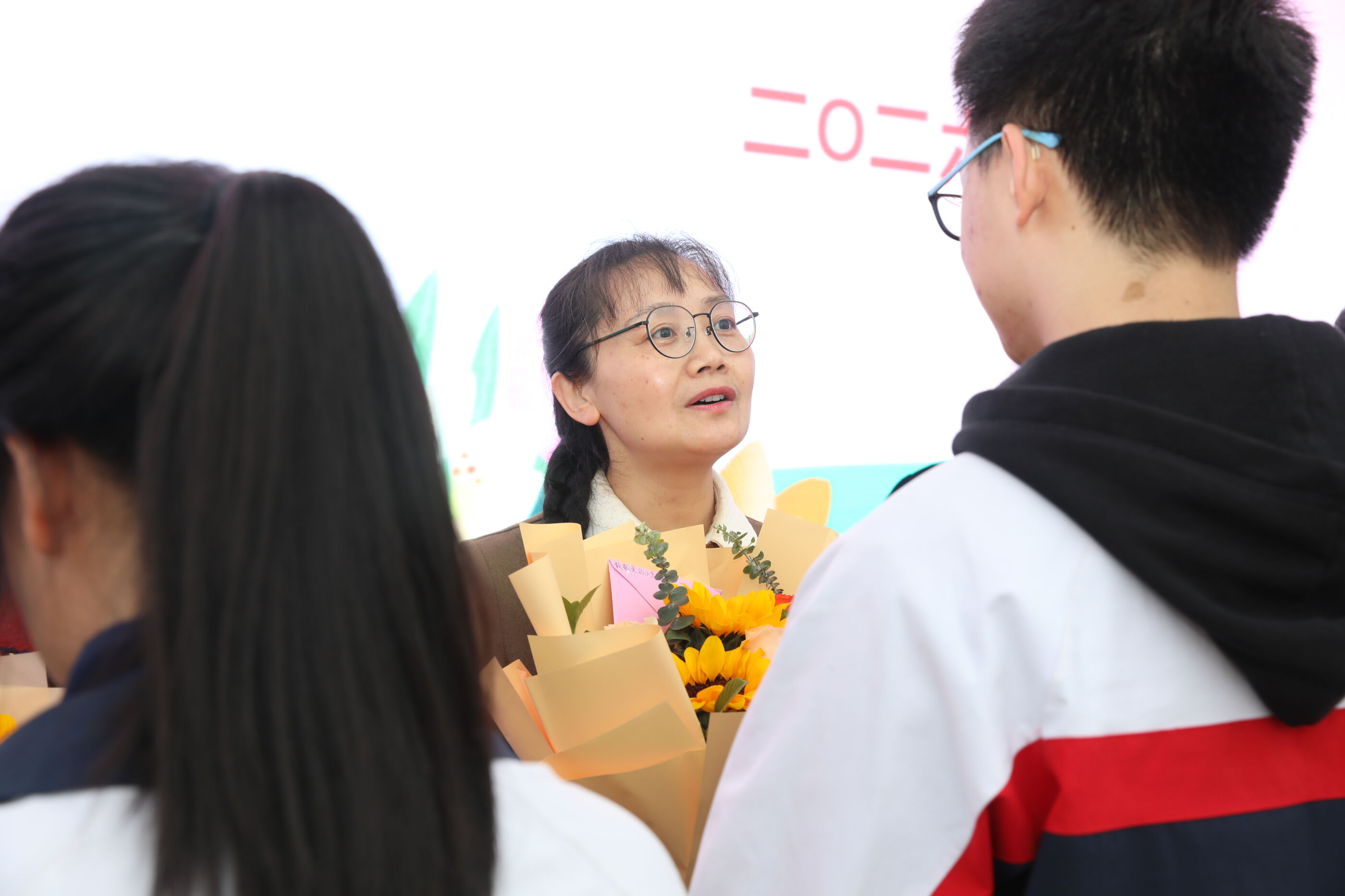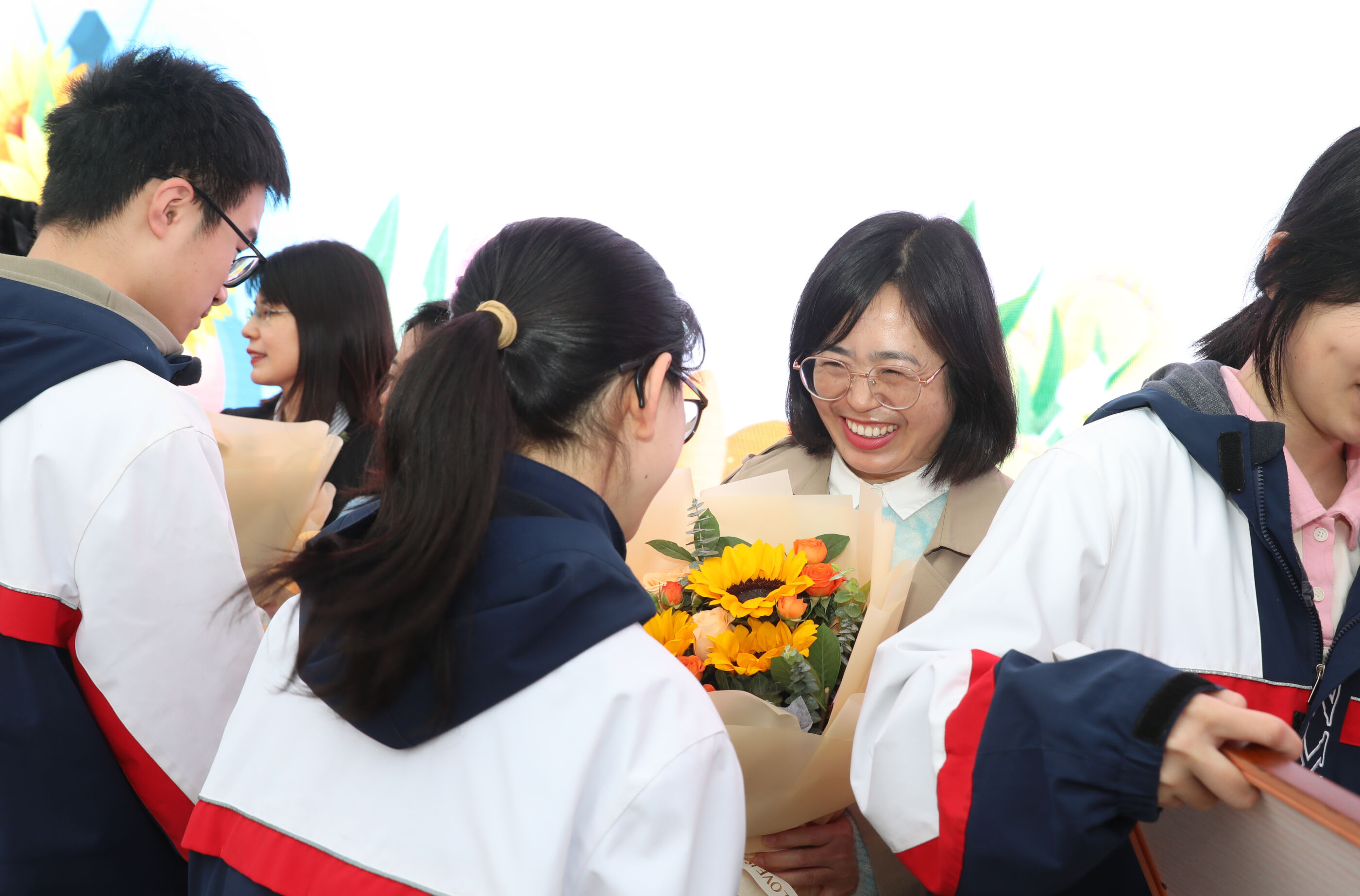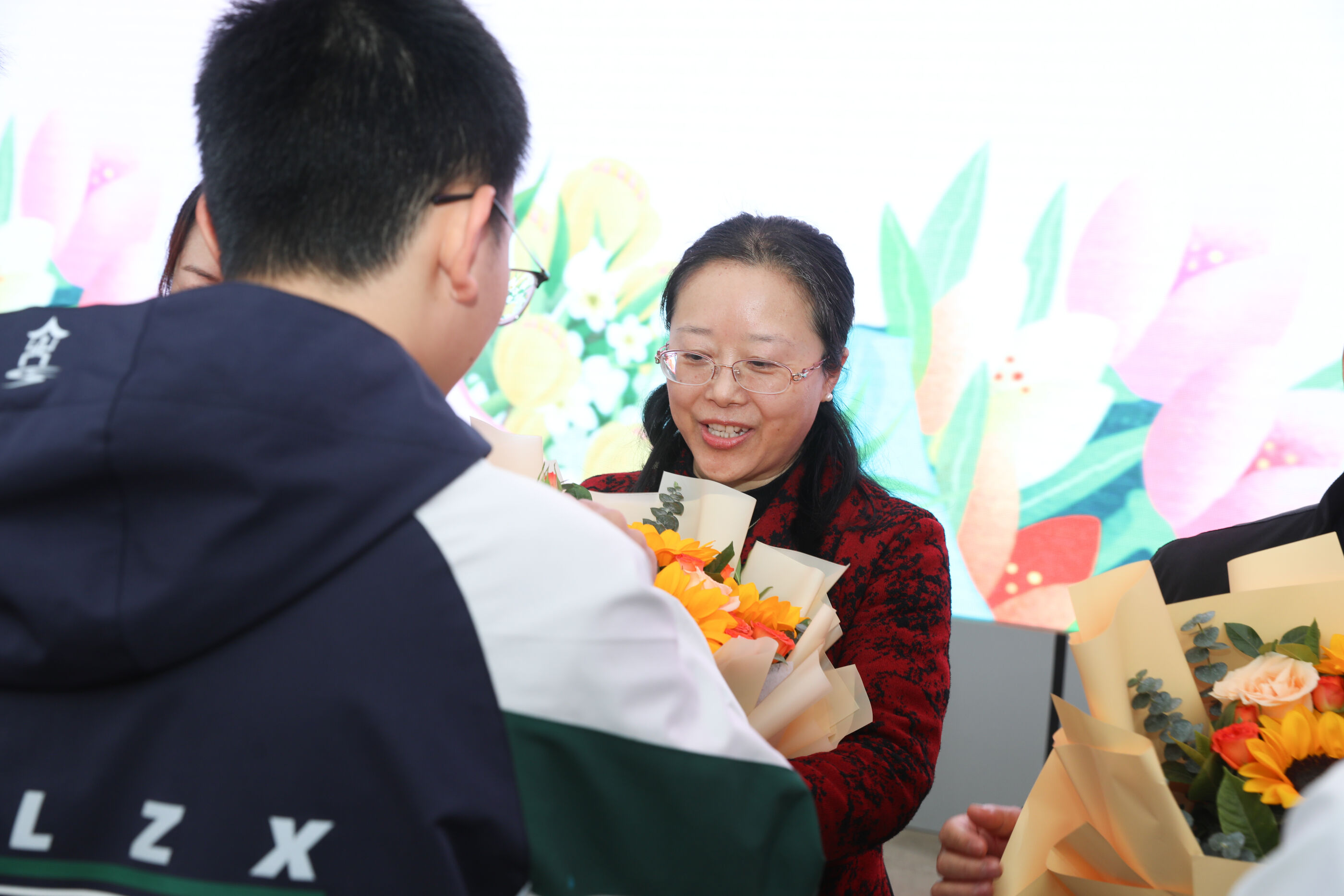 学生代表给班主任献花