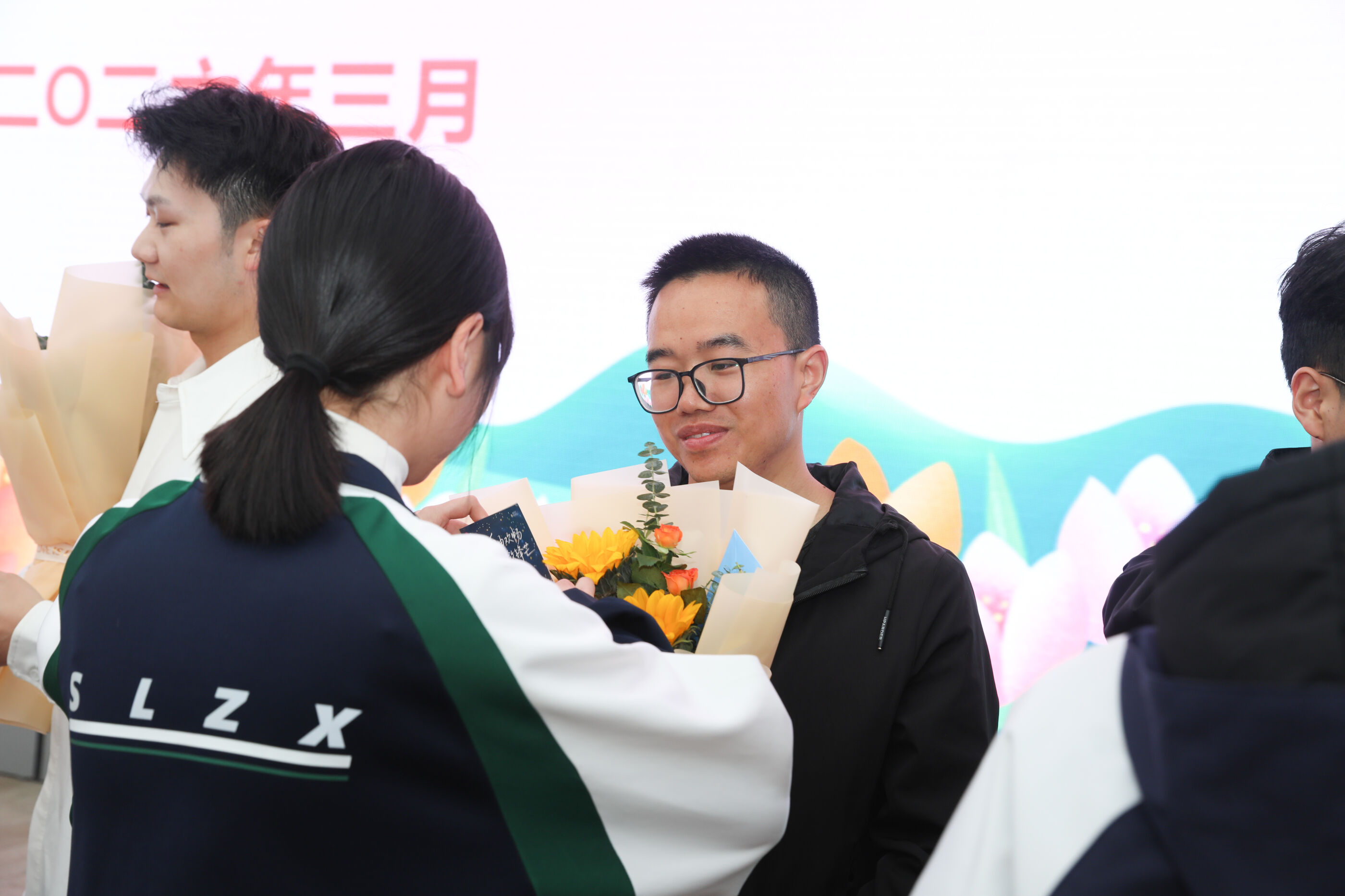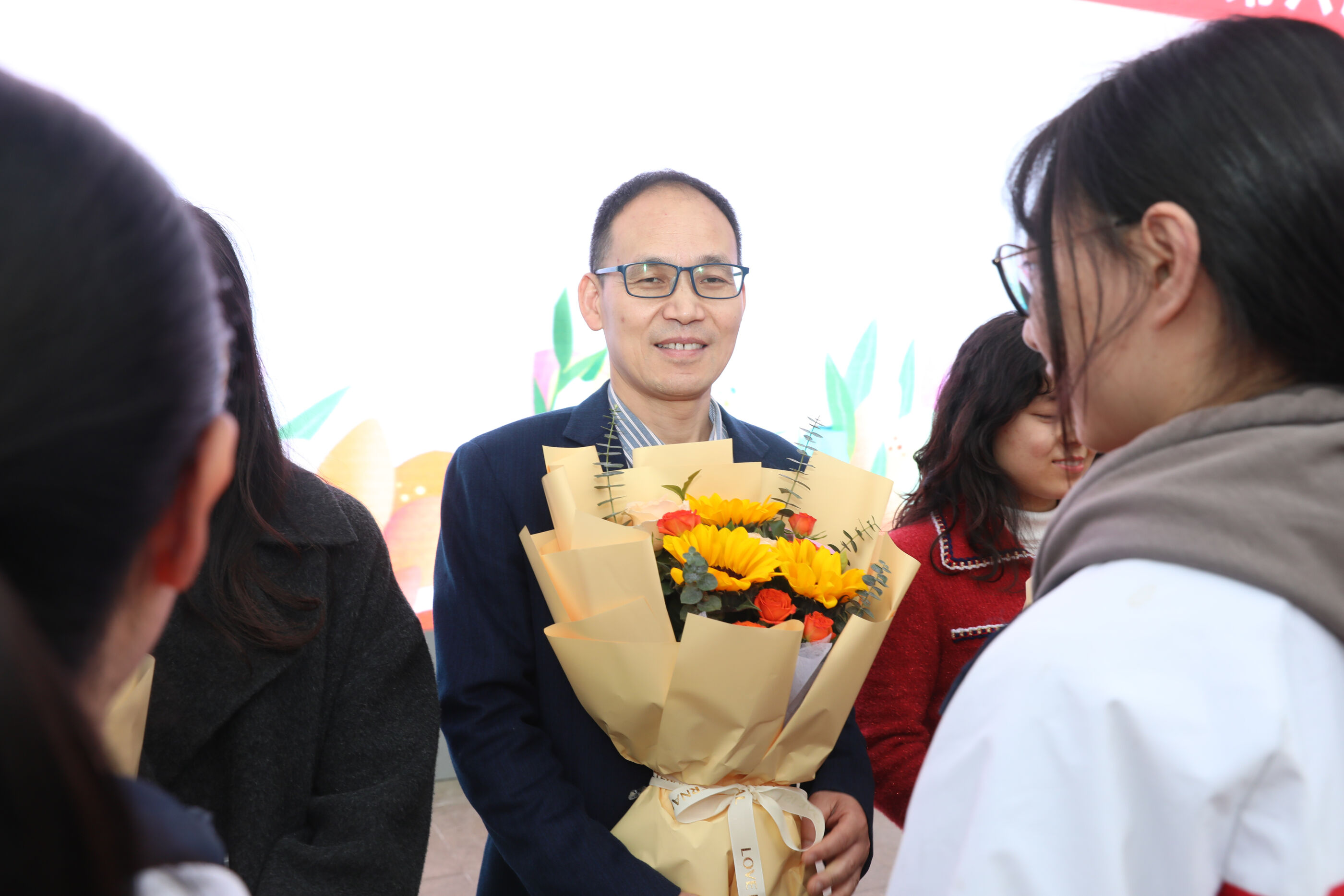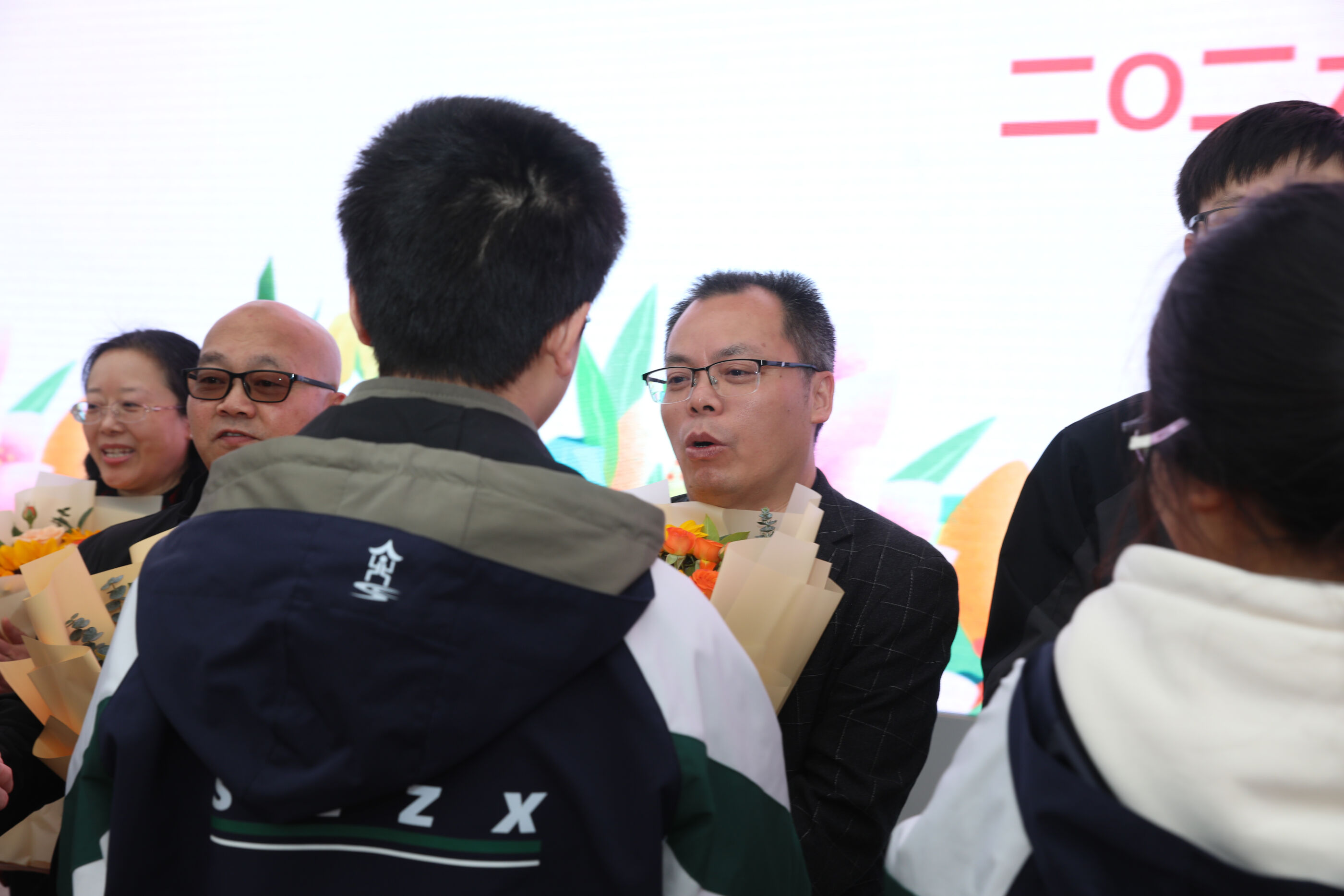 学生代表给班主任献花