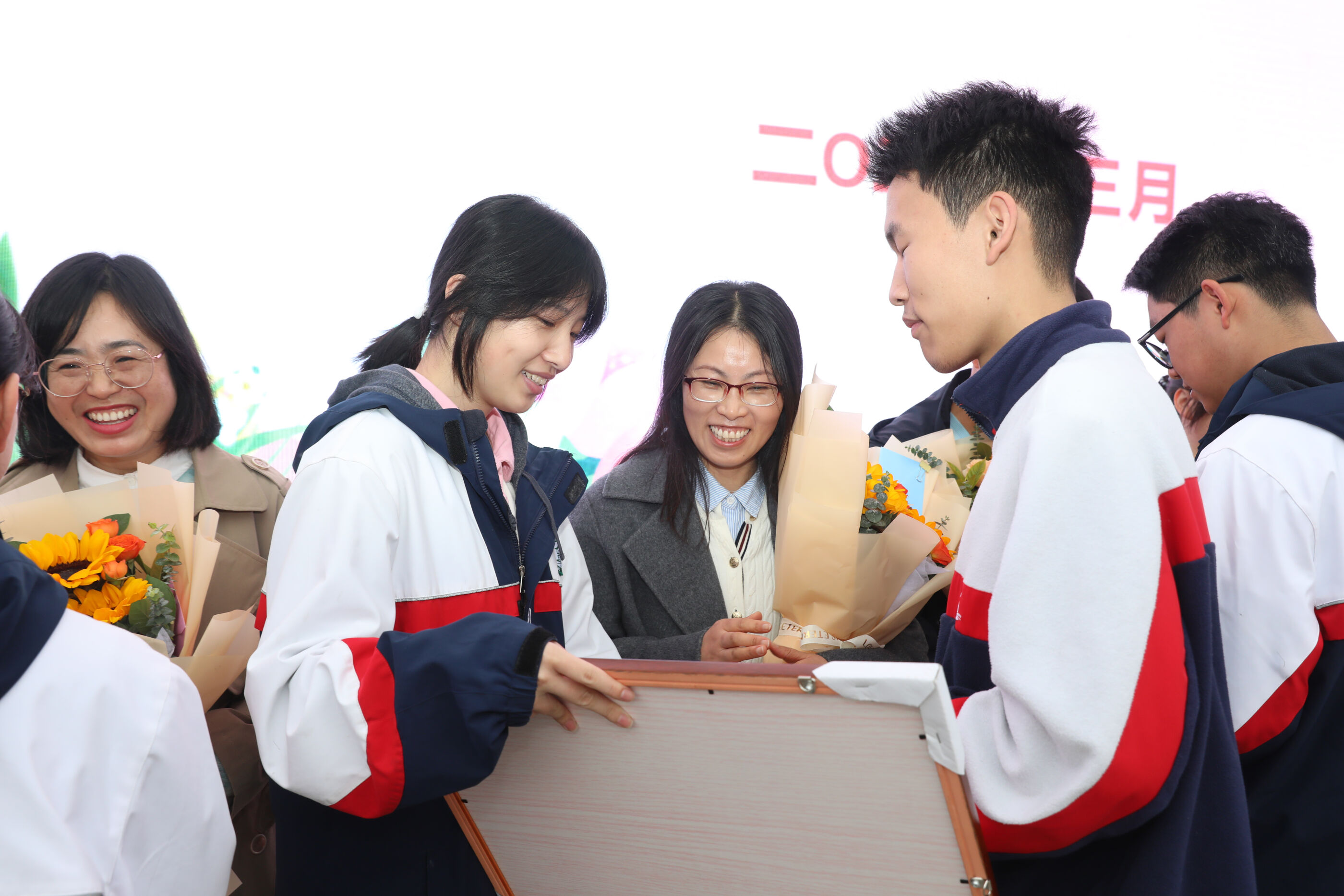 高二年级班主任与班级学生代表合影