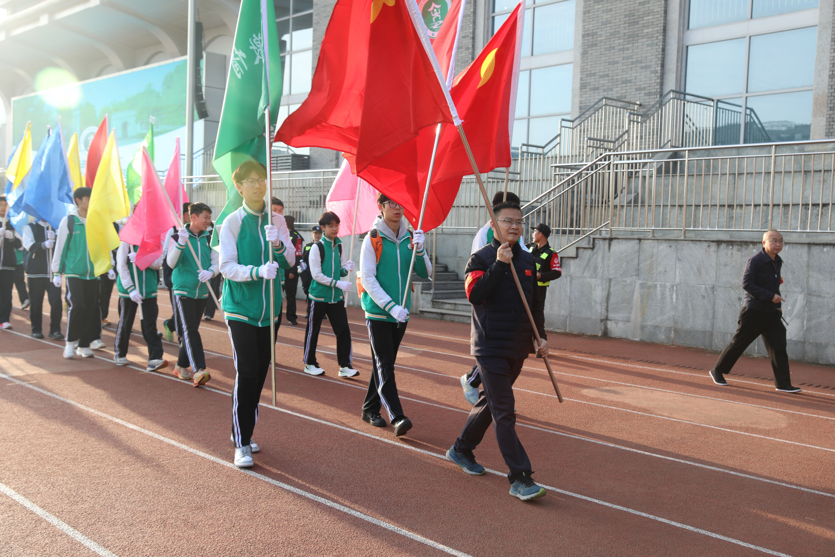 各色班旗迎风飘扬