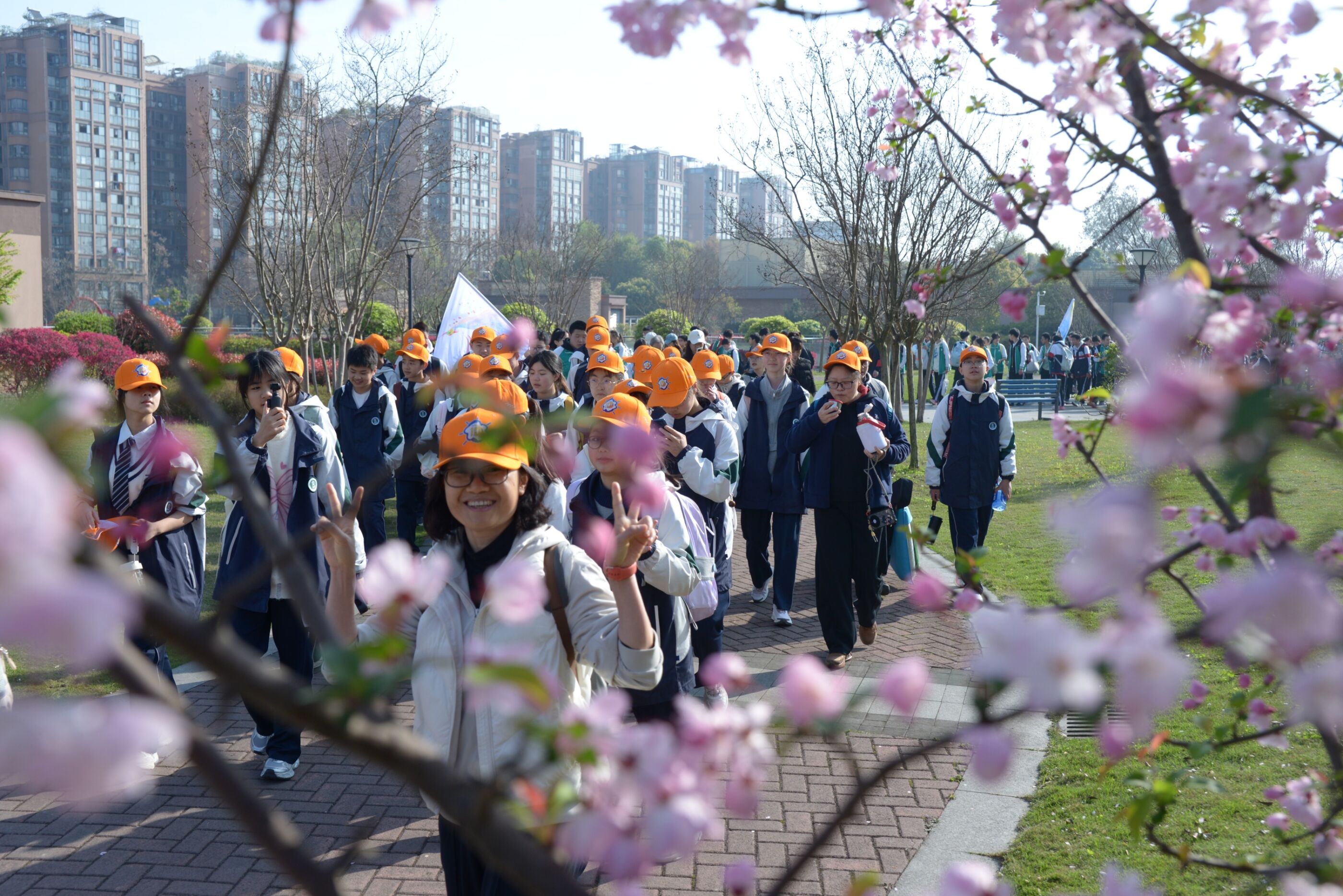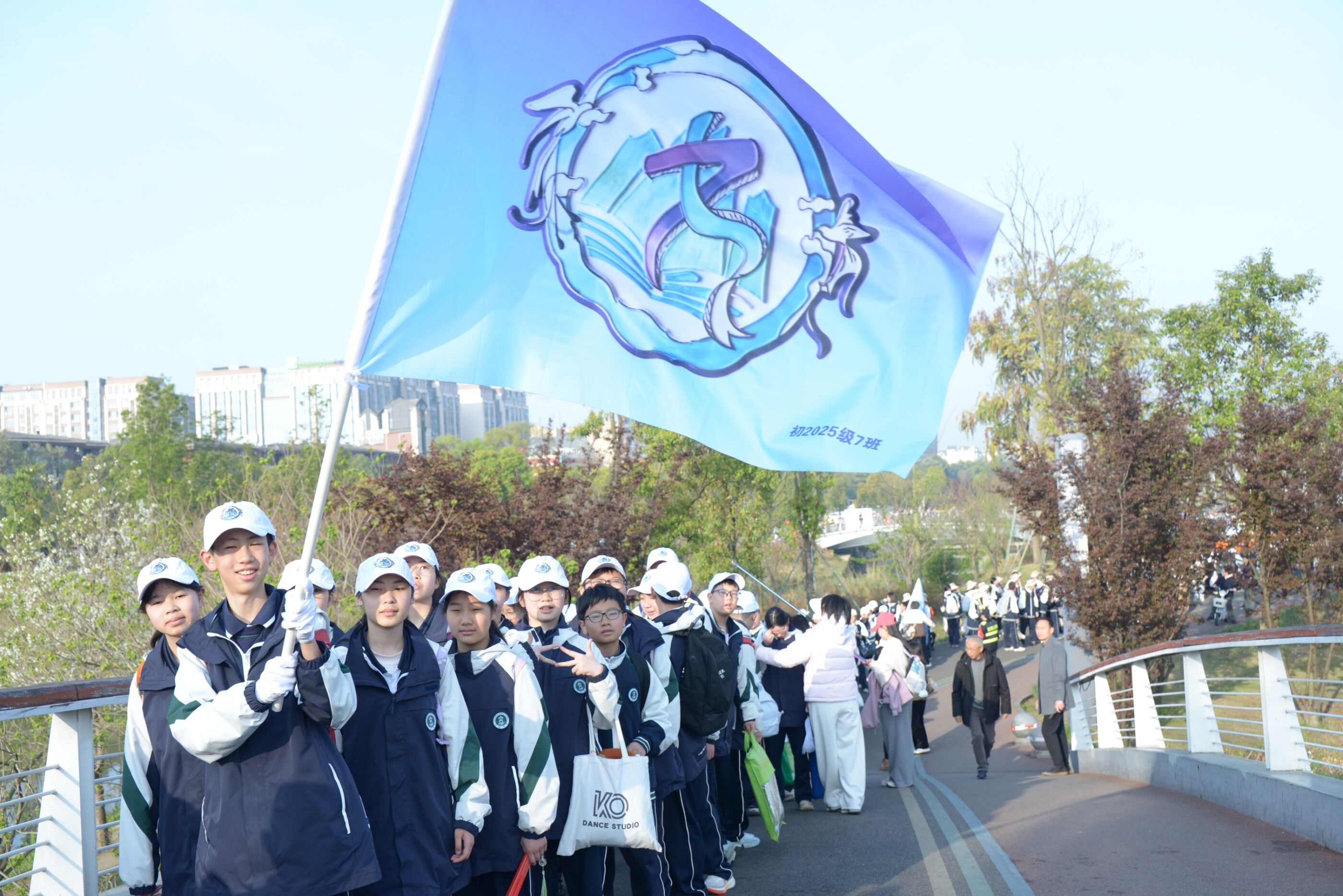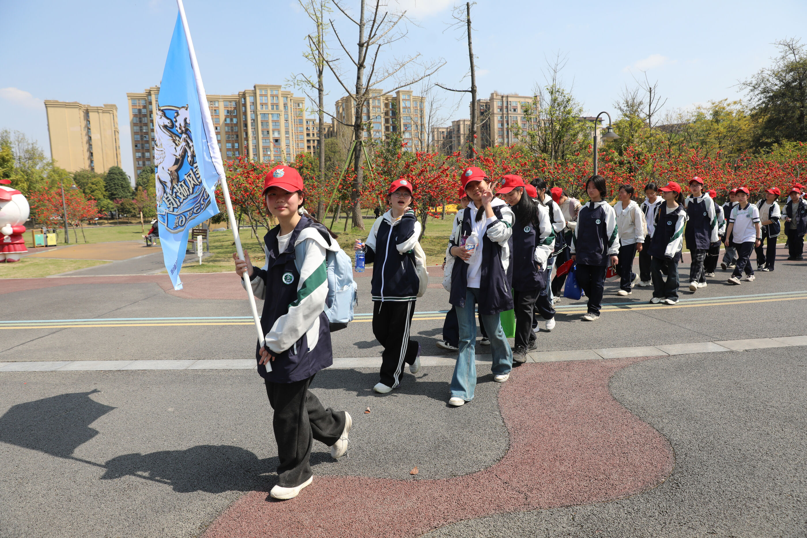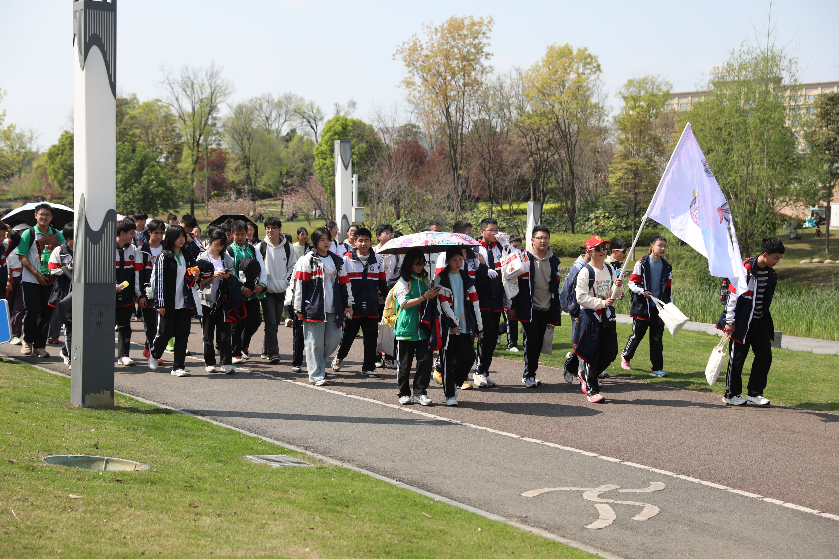 队伍行进在春日道路上
