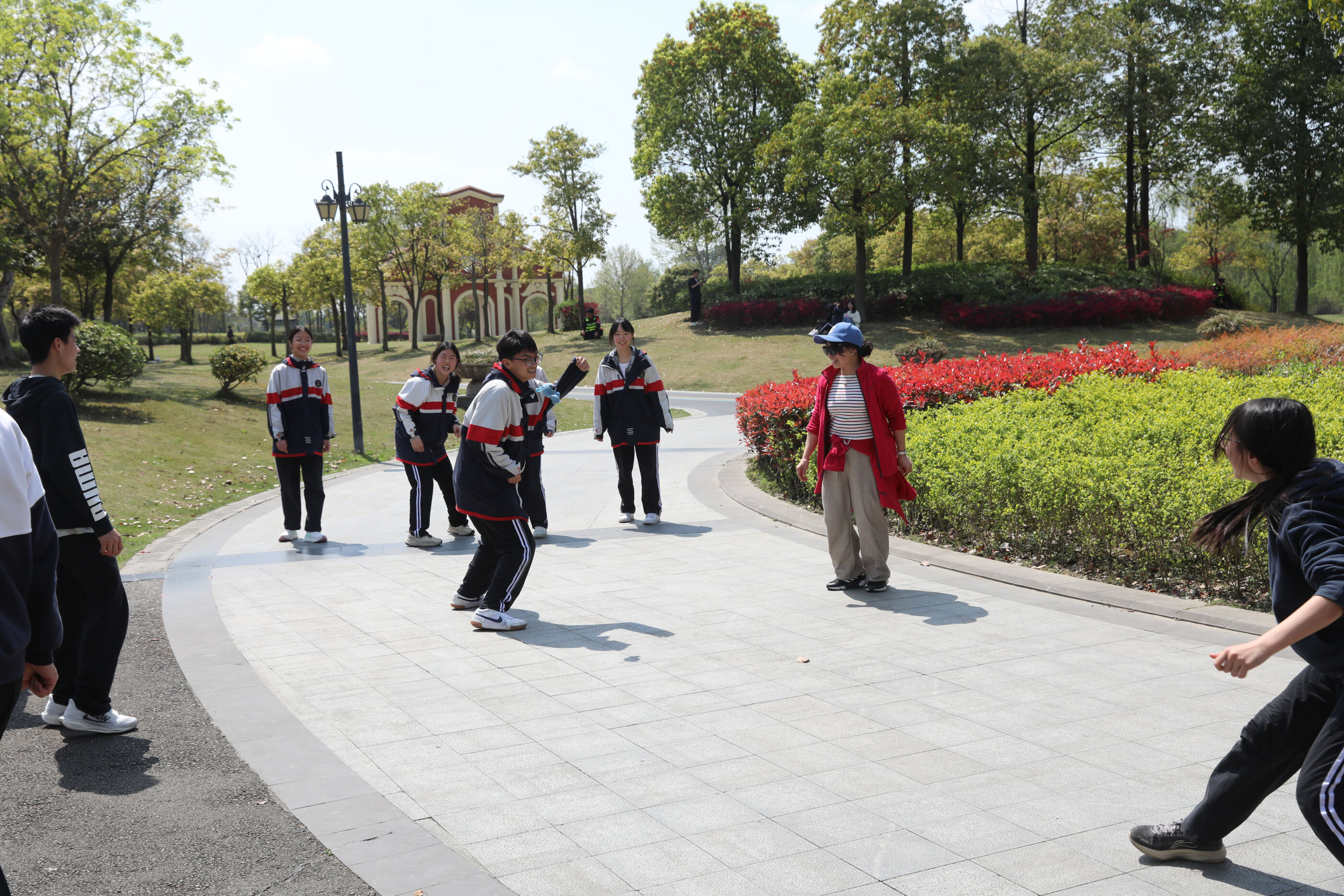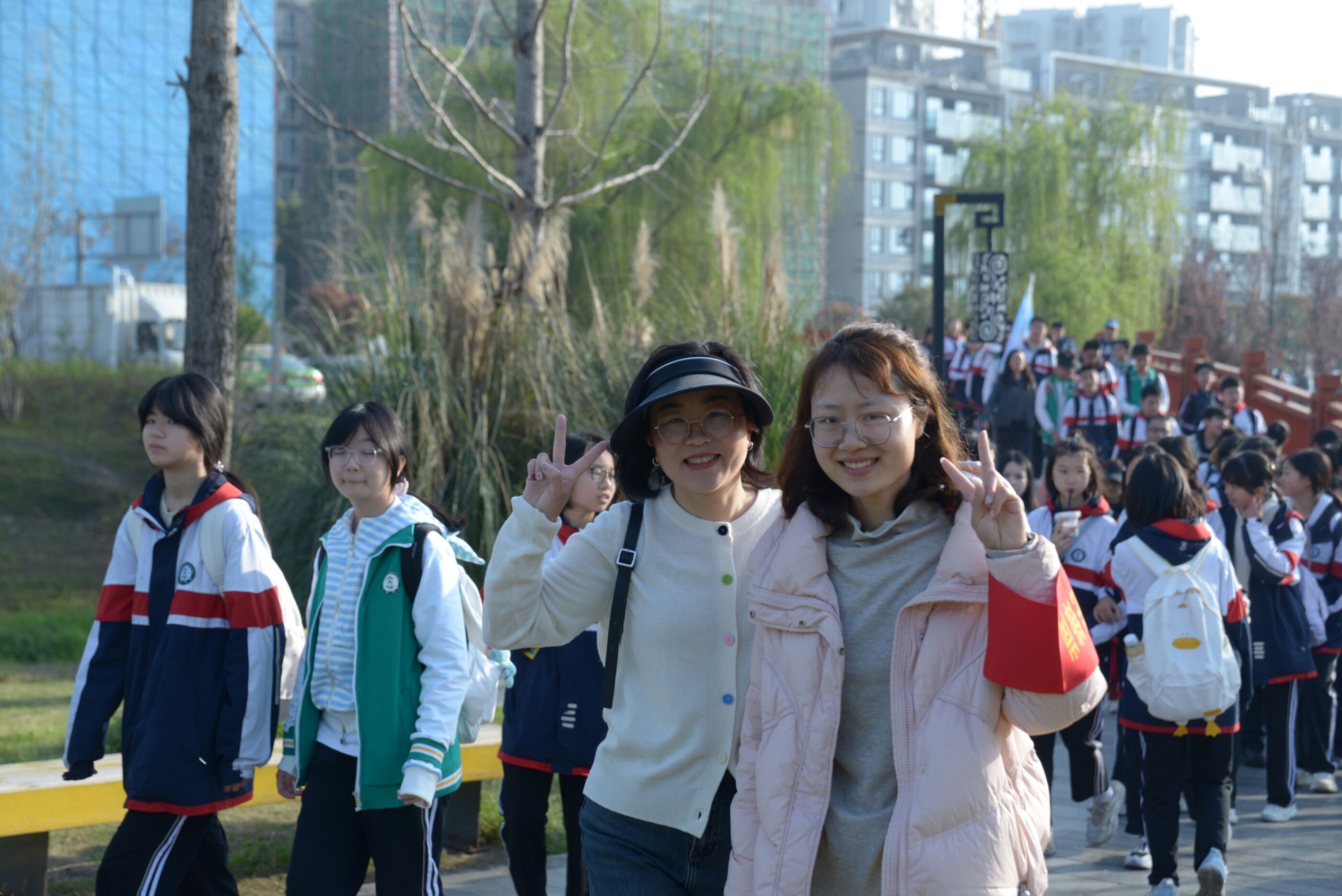 师生同框在公园留影,定格美好瞬间