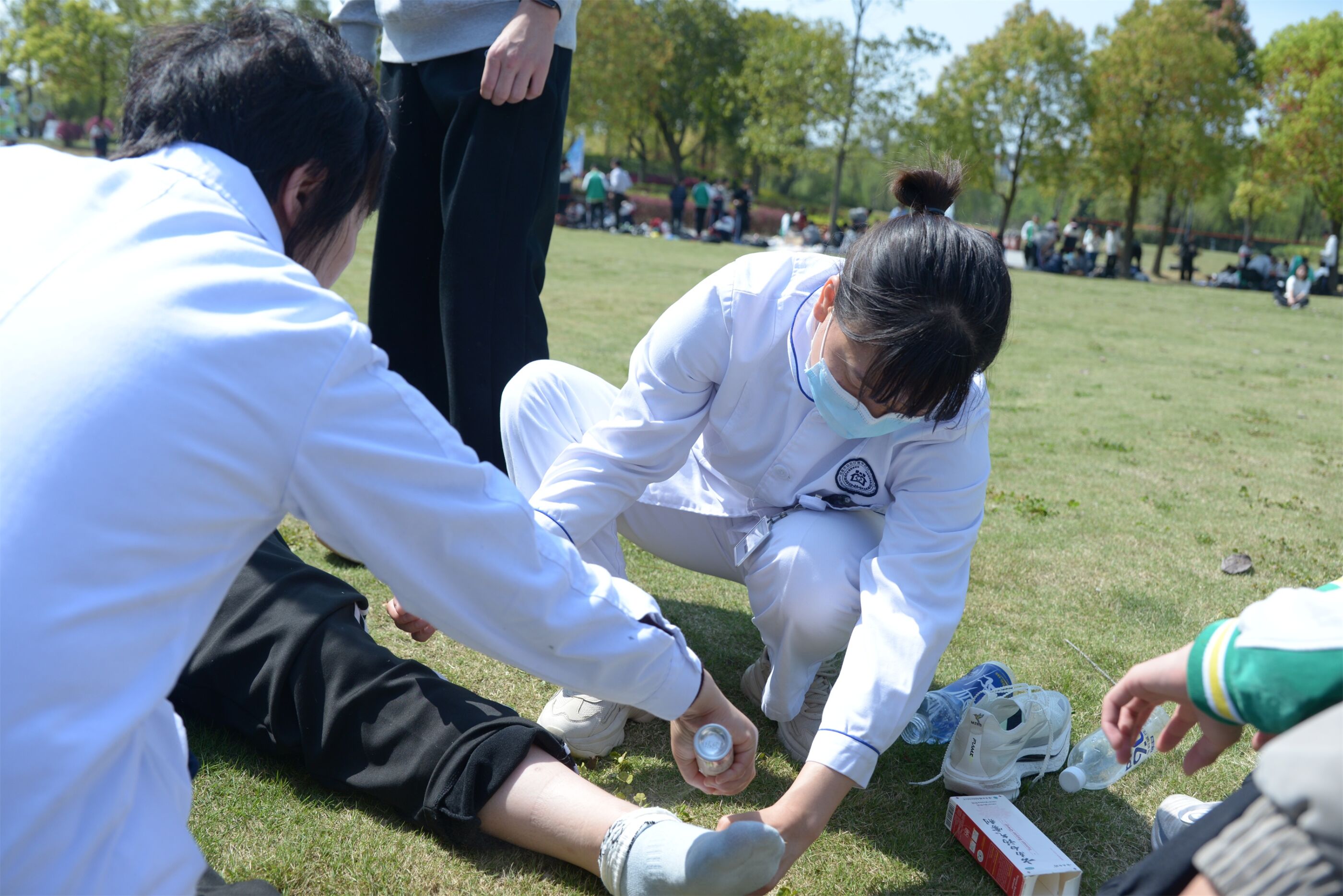 医护人员为受伤学生进行紧急治疗