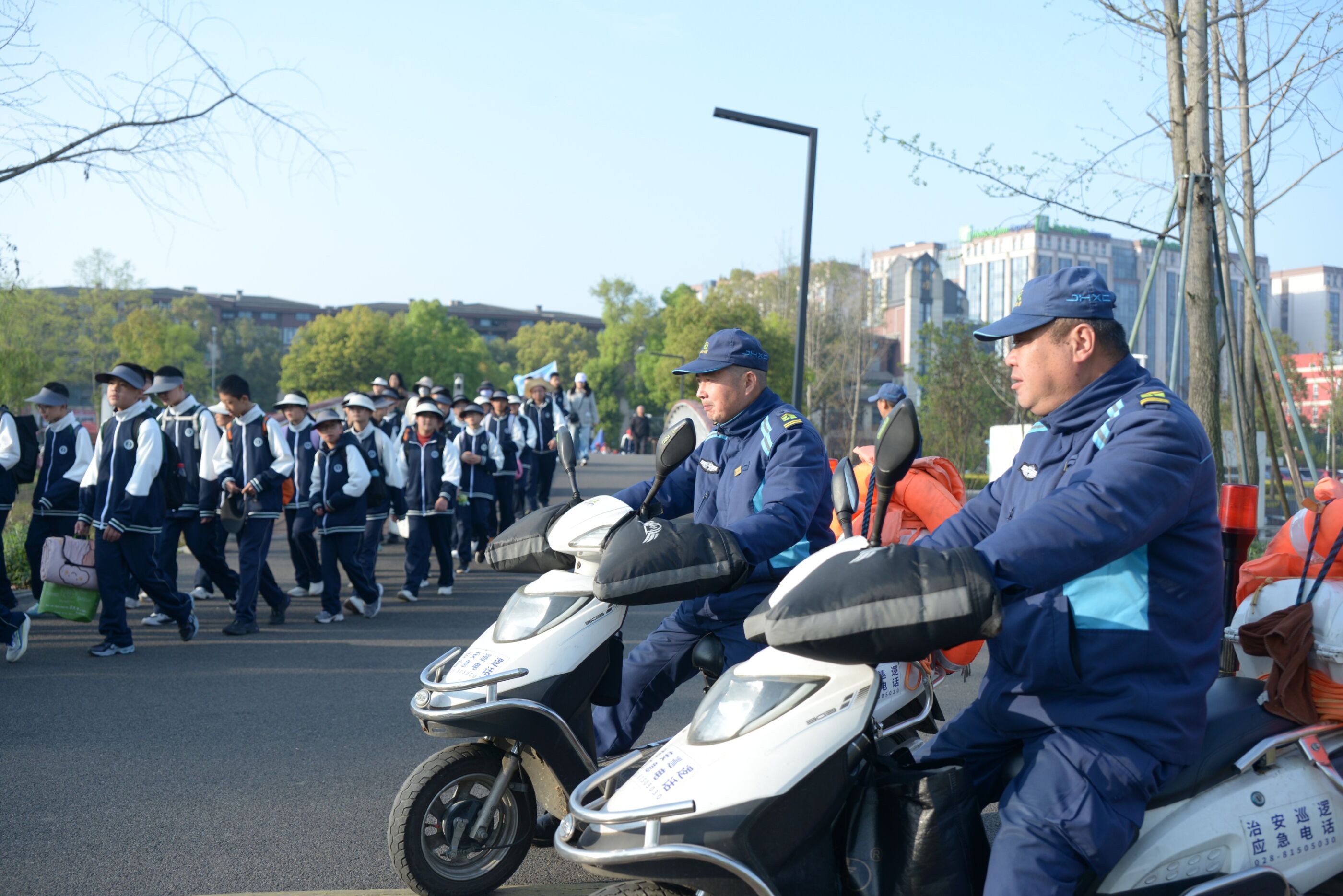 老师和家长们沿途守护,细节处满是关怀