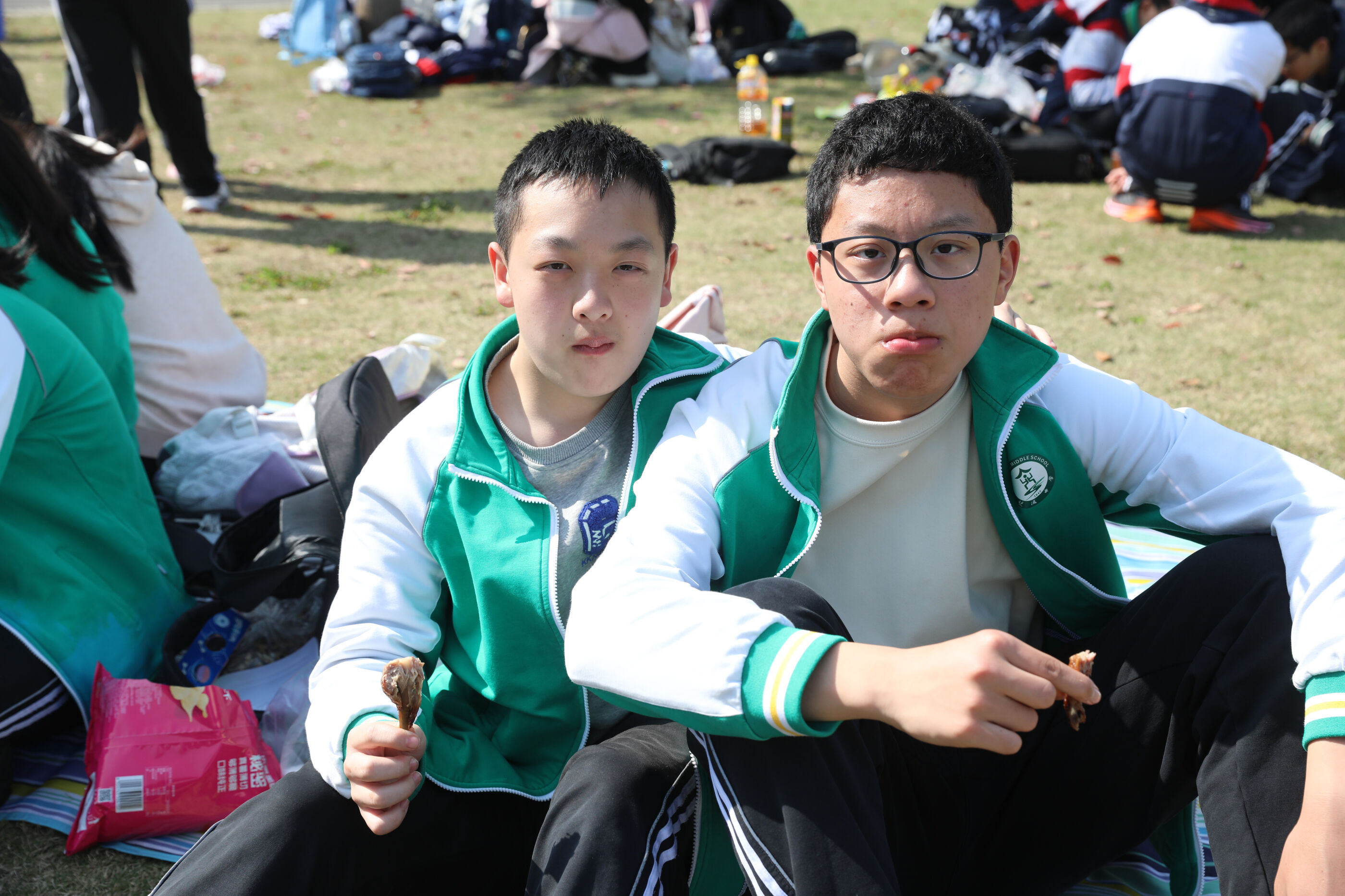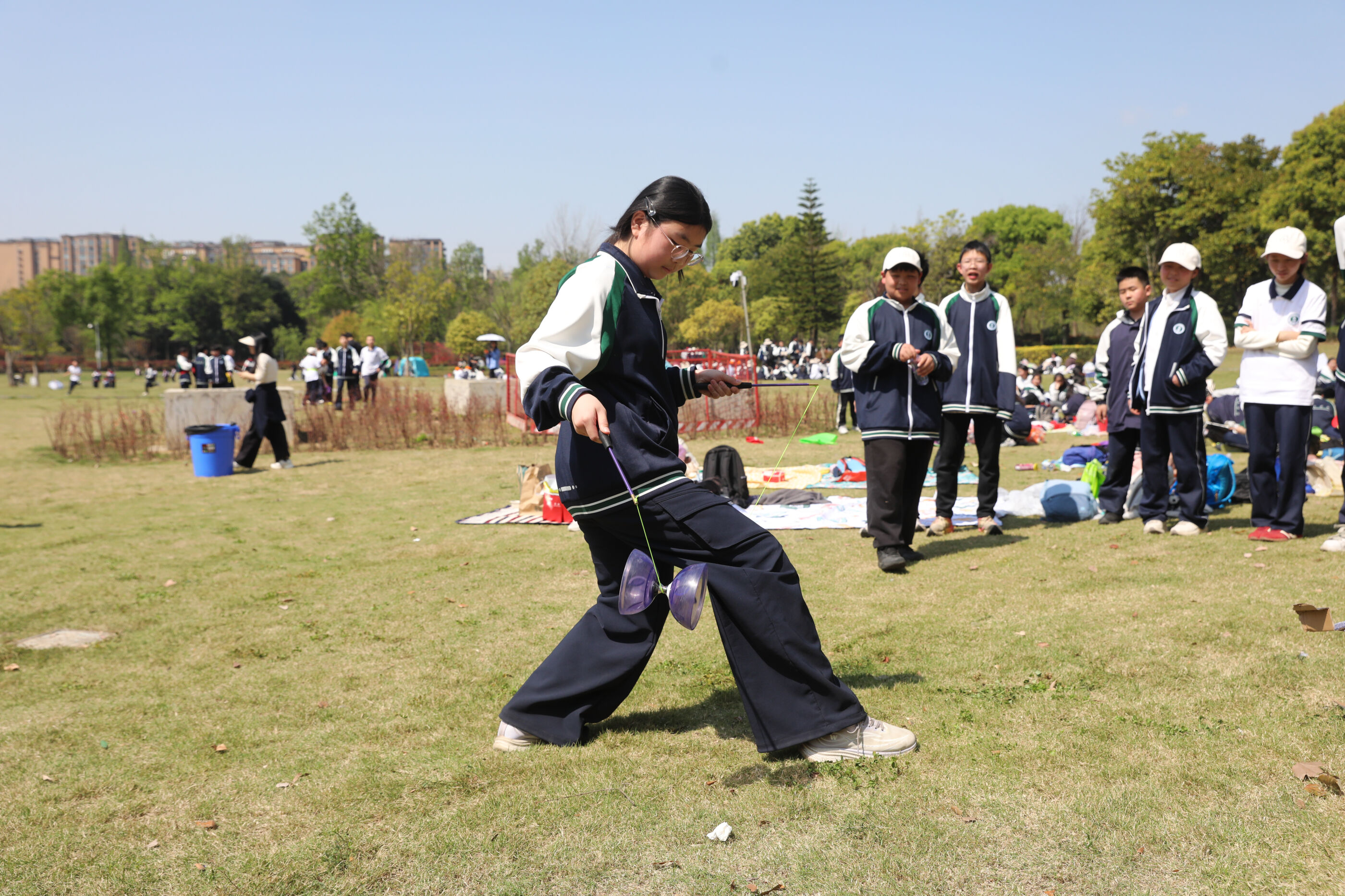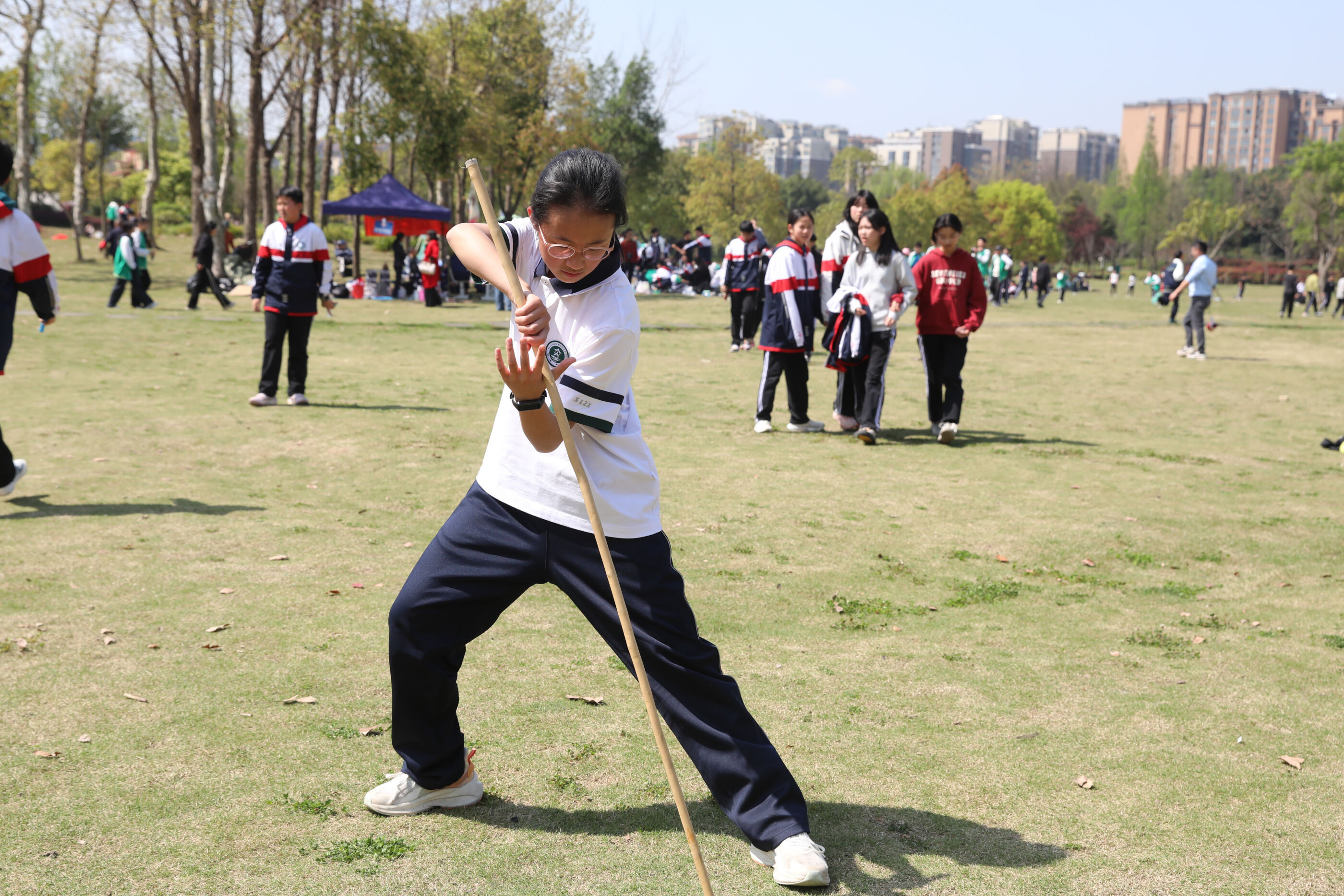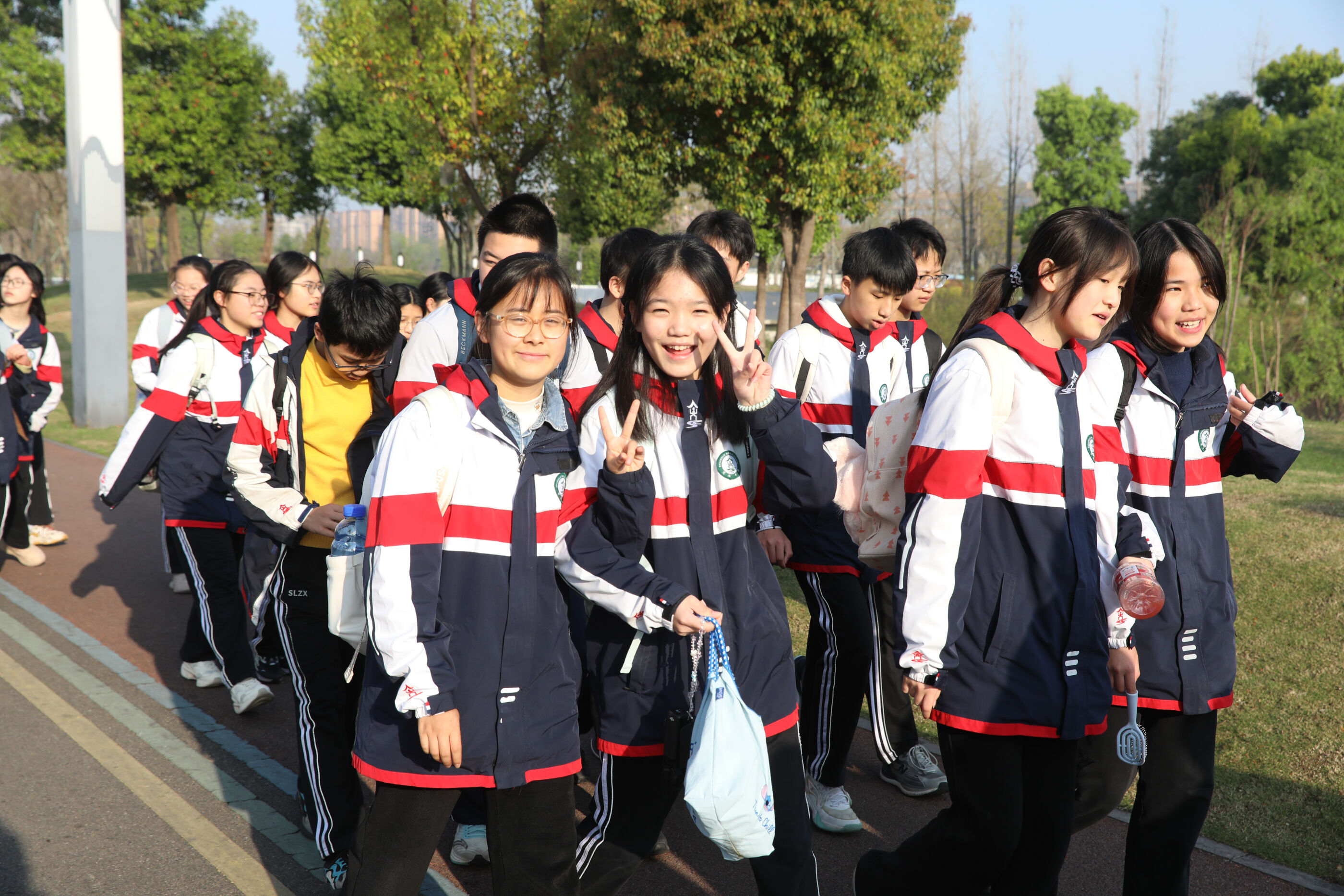 同学们行进路上的热闹互动