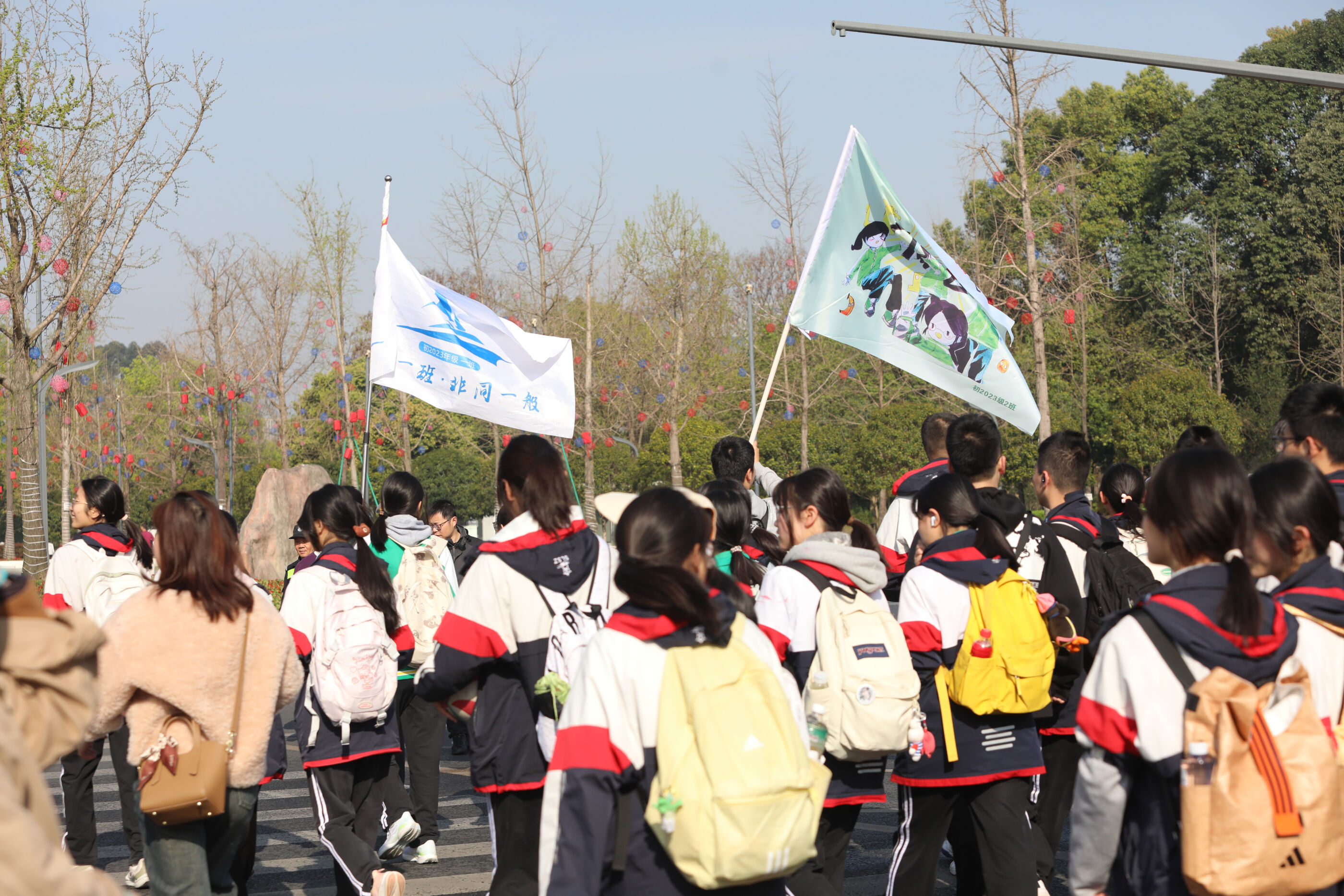 班级班旗迎风展,学子齐喊口号展风采