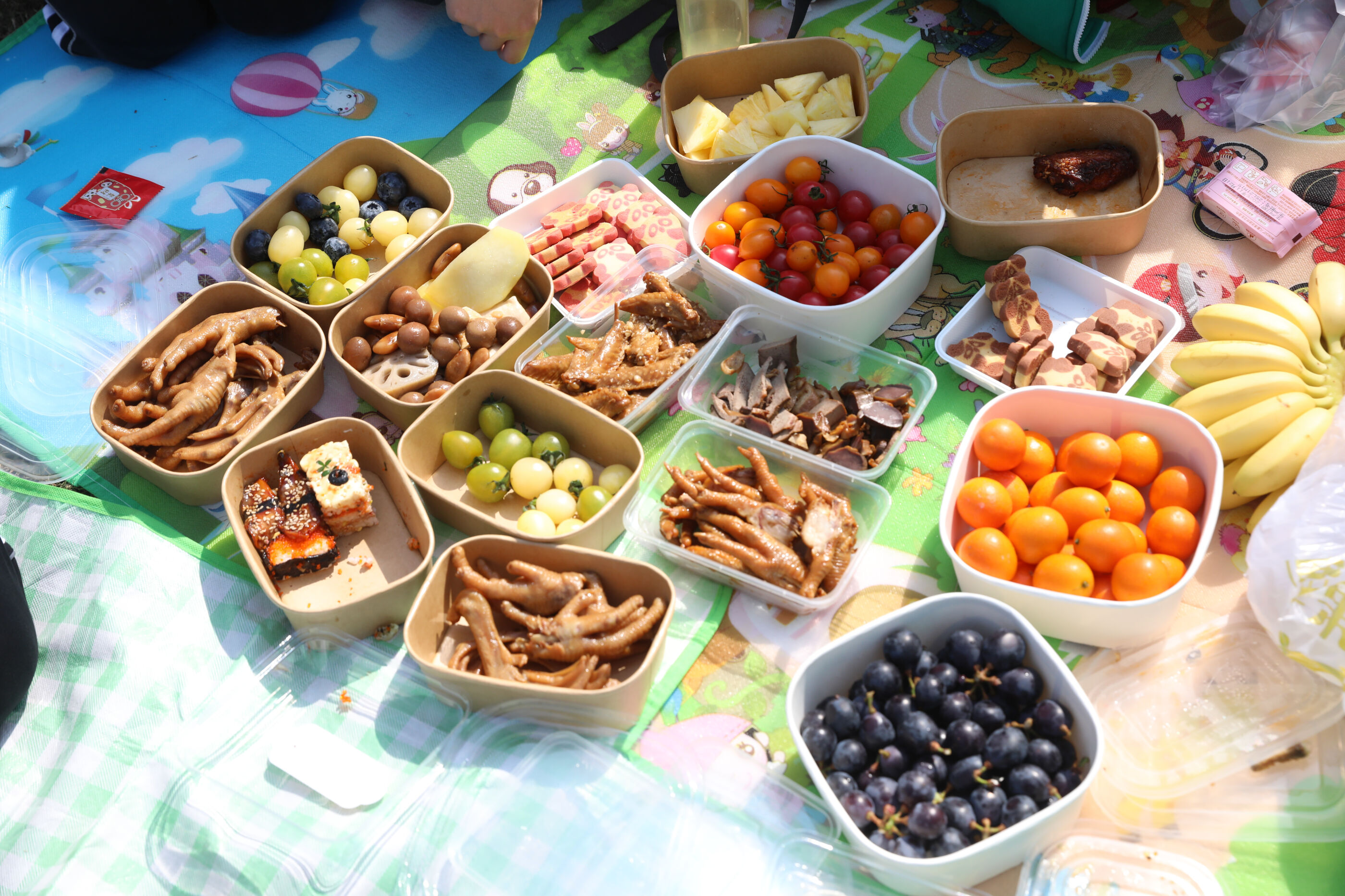 各色美食摆满一地,颜值与美味并存