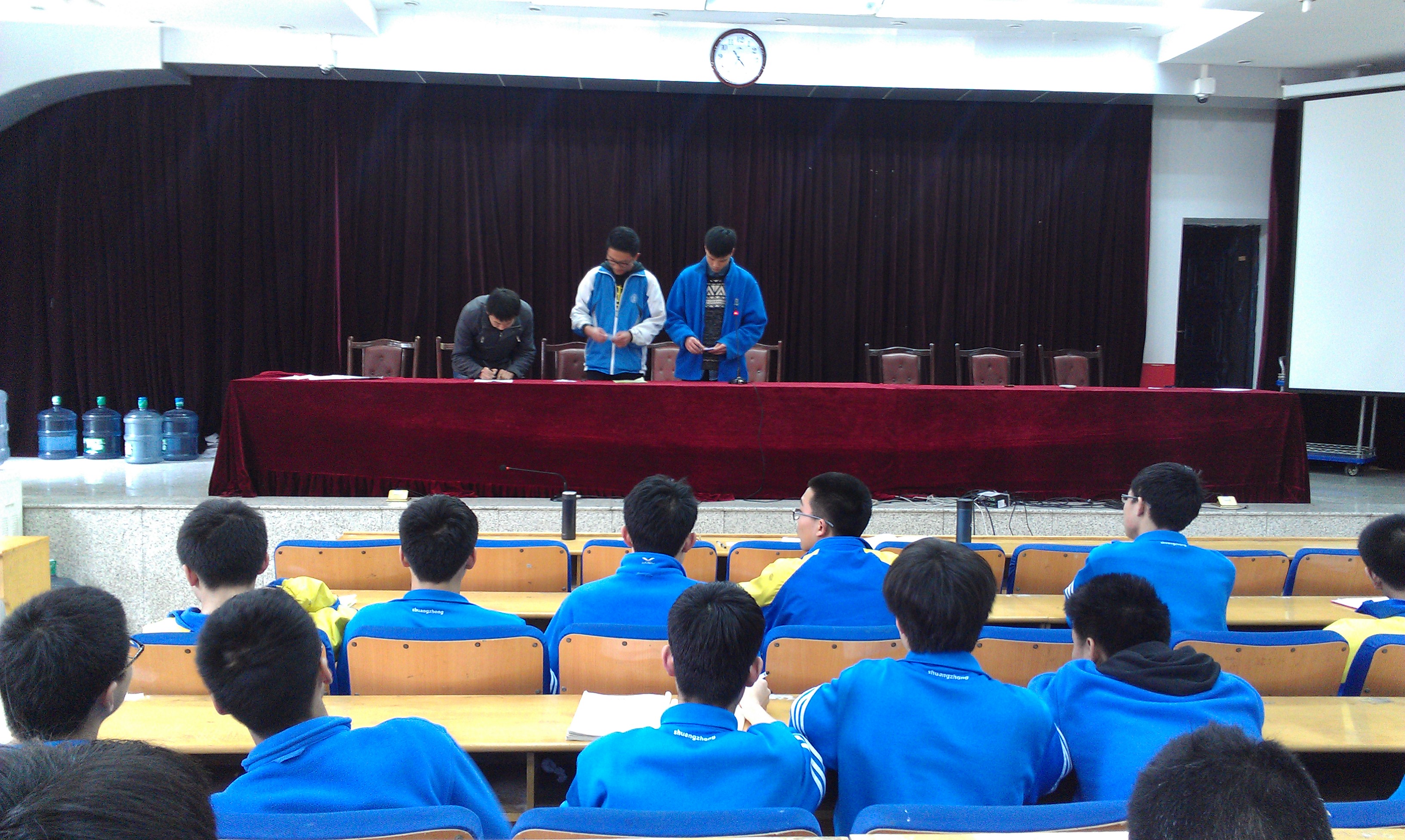 3月11日,双流中学第四节国旗班换届选举在学术演讲厅拉开帷幕,校团委书记魏东老师、国旗班指导老师文荣奎老师和全体国旗班成员参加了本次会议。会议由第三届国旗班班长肖迎港同学主持。