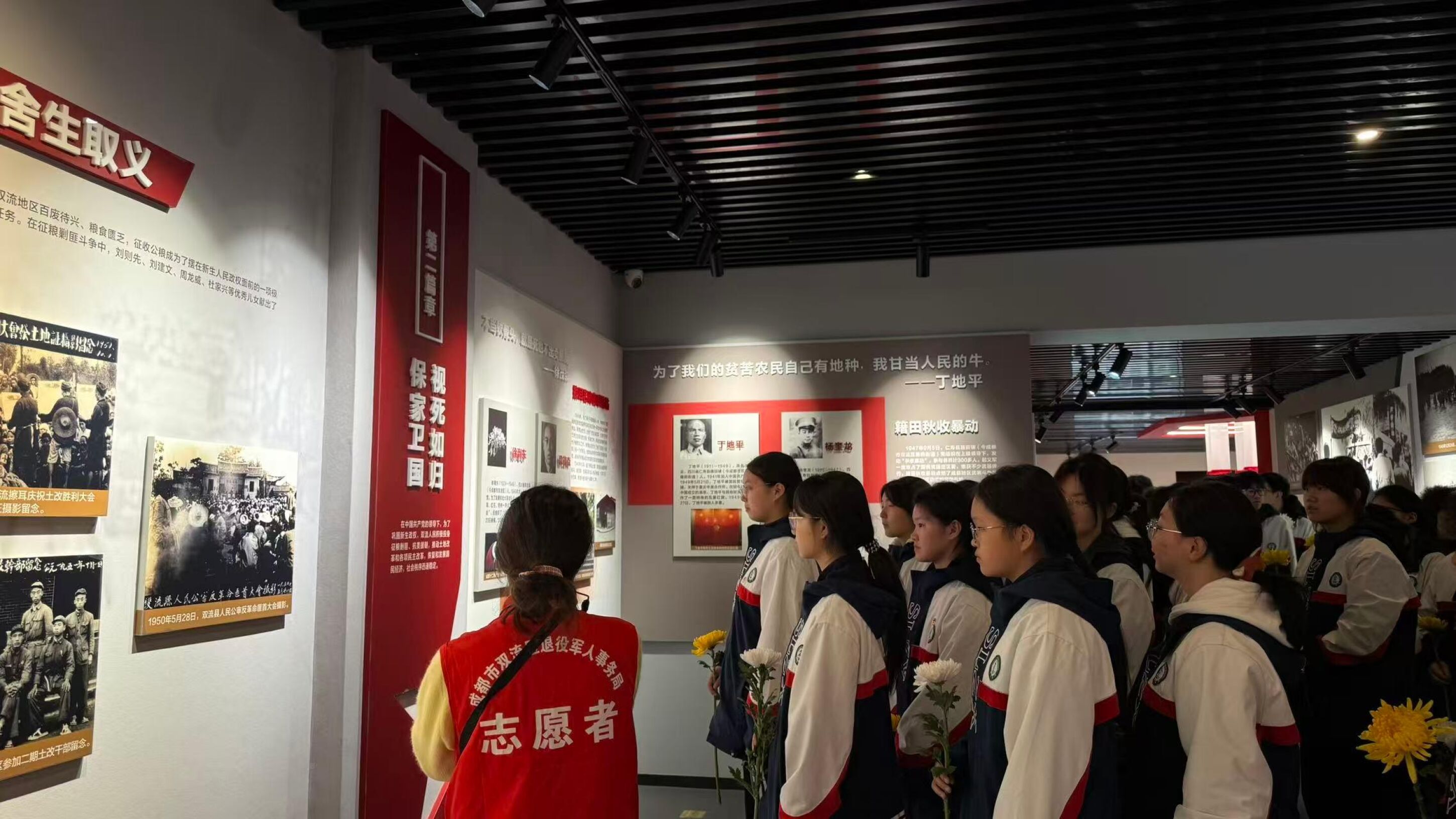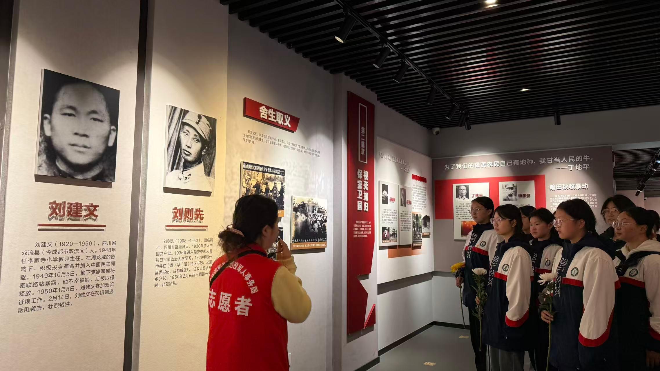 图2纪念碑照片 随后,师生们走进双流烈士纪念馆,在工作人员的引导讲解下,重温双流大地上为党的革命、建设、改革事业献出宝贵生命的371名烈士的英雄事迹。馆内泛黄的照片、斑驳的文物,生动还原了先烈们抛头颅、洒热血的峥嵘岁月,同学们驻足凝视,深刻感悟今日和平幸福生活的来之不易,将英烈精神深深烙印心中。