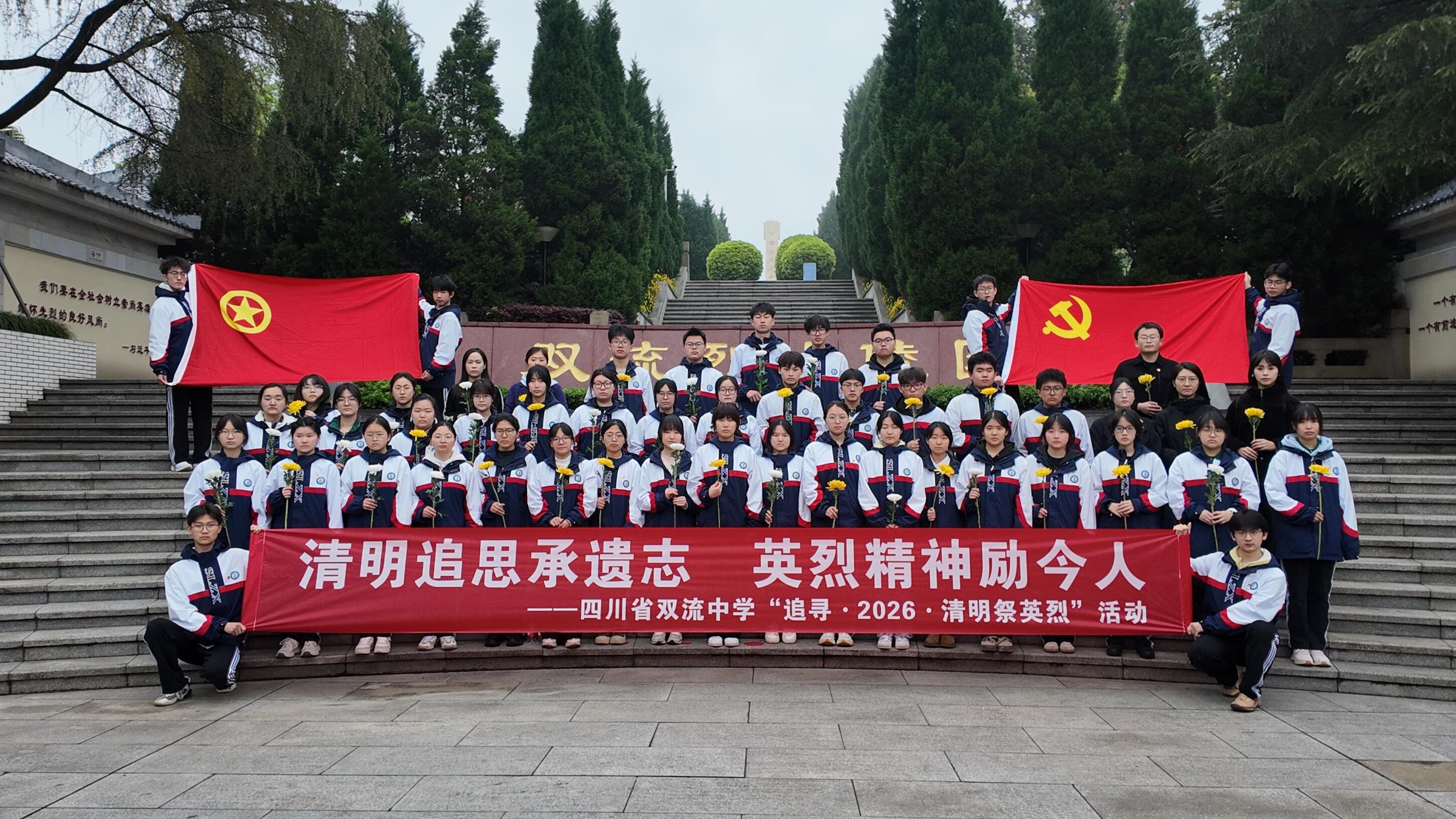 是一年清明至,松柏凝翠寄哀思。为深切缅怀革命先烈,赓续红色血脉,弘扬爱国主义精神,3月31日上午,双流中学团委副书记胡峻闻、团委委员李易蔓等老师带领我校学生代表一同前往双流烈士陵园,开展“追寻·2026·清明祭英烈”活动,以庄严仪式致敬英烈,以赤诚之心传承精神。
