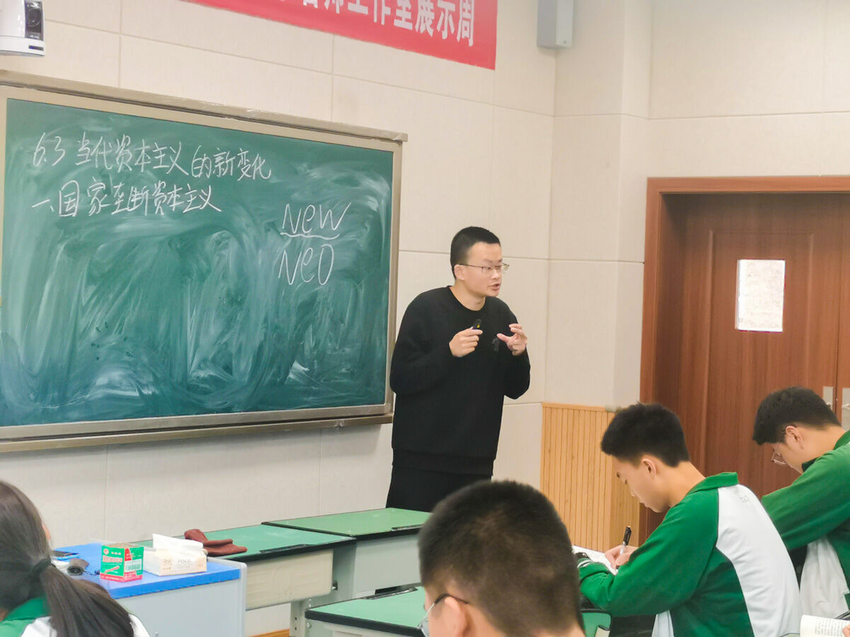 图1首先由双流中学胡峻闻老师带来示范课《当代资本主义的新变化》。胡老师根据高一年级学生的实际情况,通过对英语单词“New”和“Neo”的区别探究,引导学生初步逐步分析“凯恩斯主义”和“新自由主义”的区别;之后带领学生开展有针对性的材料分析,引导学生思考二战后资本主义世界产生新变化的原因和各自的特点,以及其对后世的启示,注重培养学生的材料解读能力和历史思维能力。