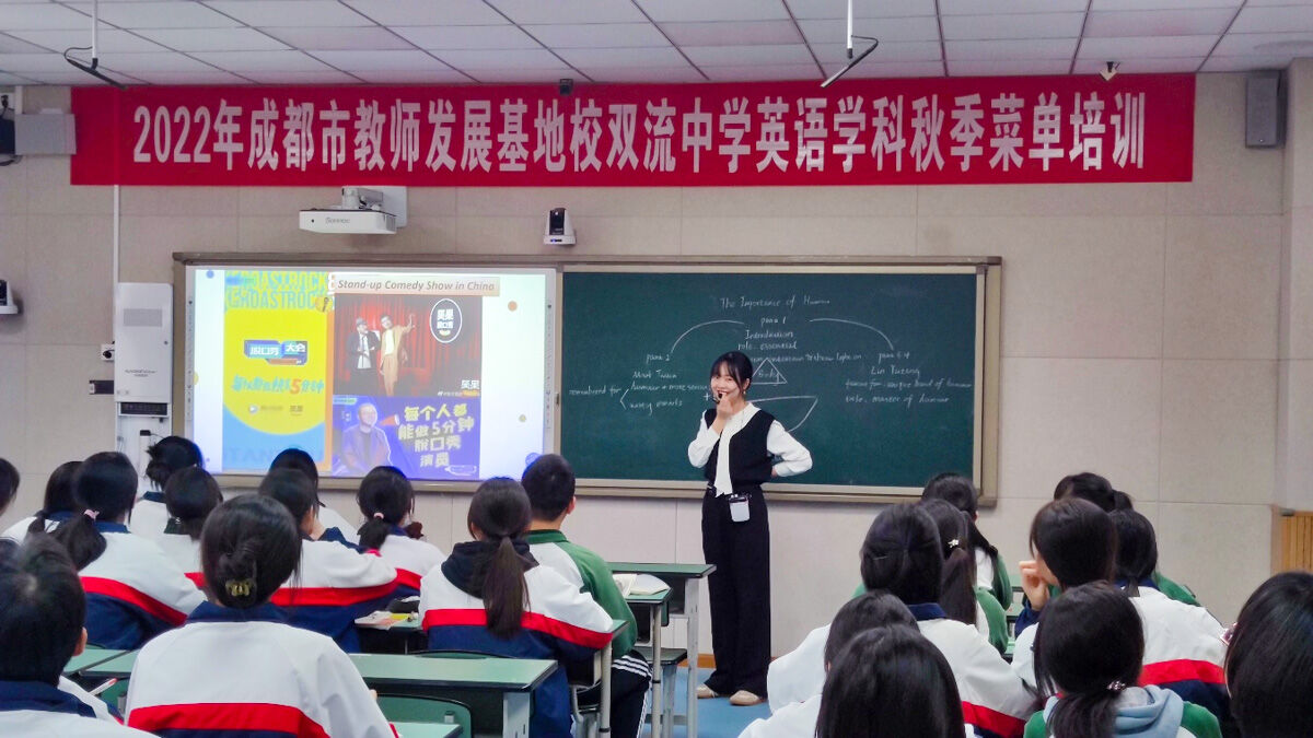 2022年10月17日上午,四川省双流中学成功举行了2022年成都市发展基地校双流中学英语学科秋季菜单培训,本次培训主题为《核心素养视角下高中英语阅读教学中思维品质培养的行动路径》。本次培训为线上线下结合,线下双流中学高一高二全体英语教师全程参与培训,线上在中小学教师继续教育网上进行直播。