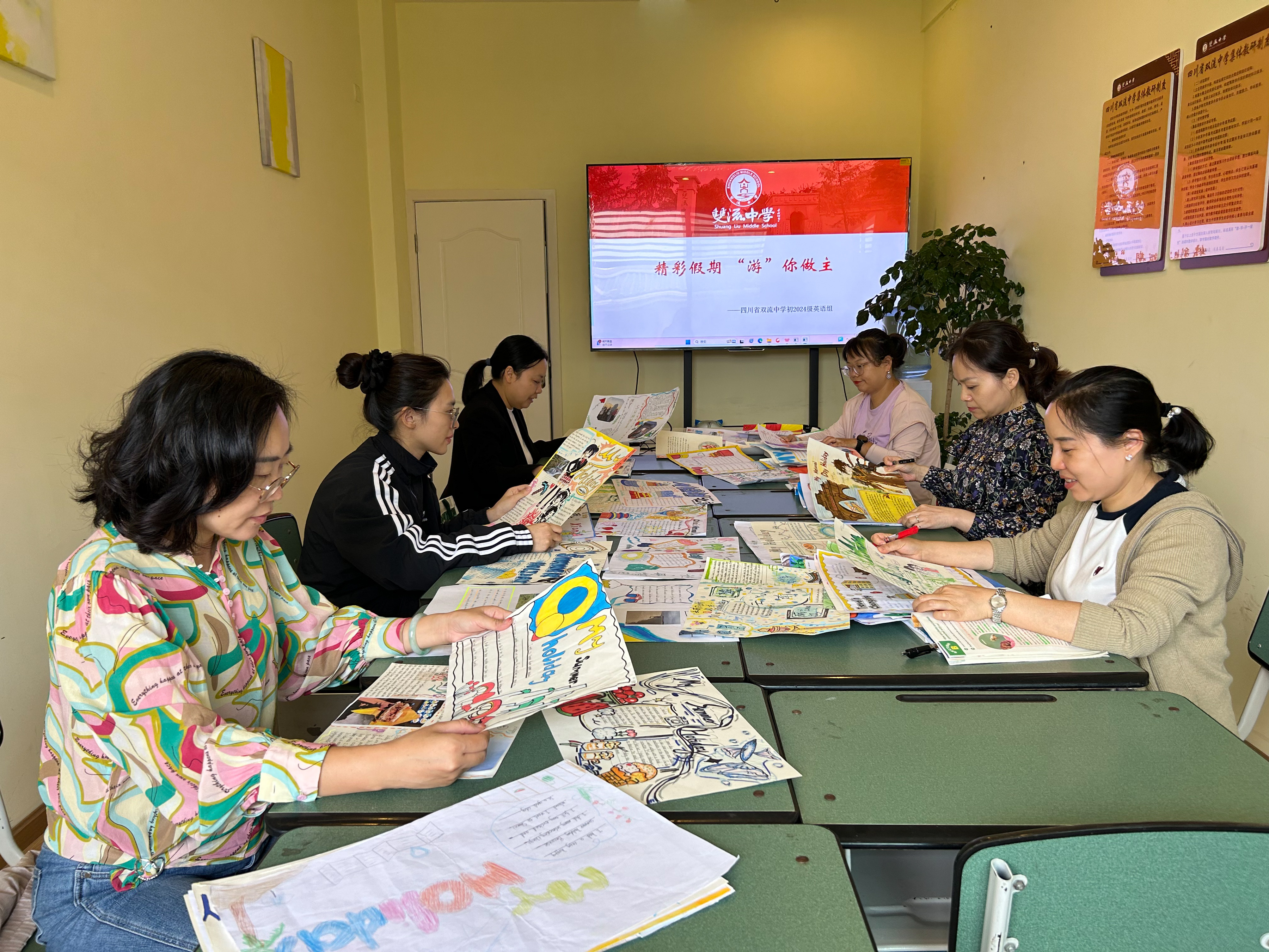 图片一在课堂上,英语老师们为同学们解析主题、讲解语言规范并示范如何用一般过去时描述假期经历。海报美化的技术指导也不落下:标题设计、图文搭配、色彩运用……干货满满!