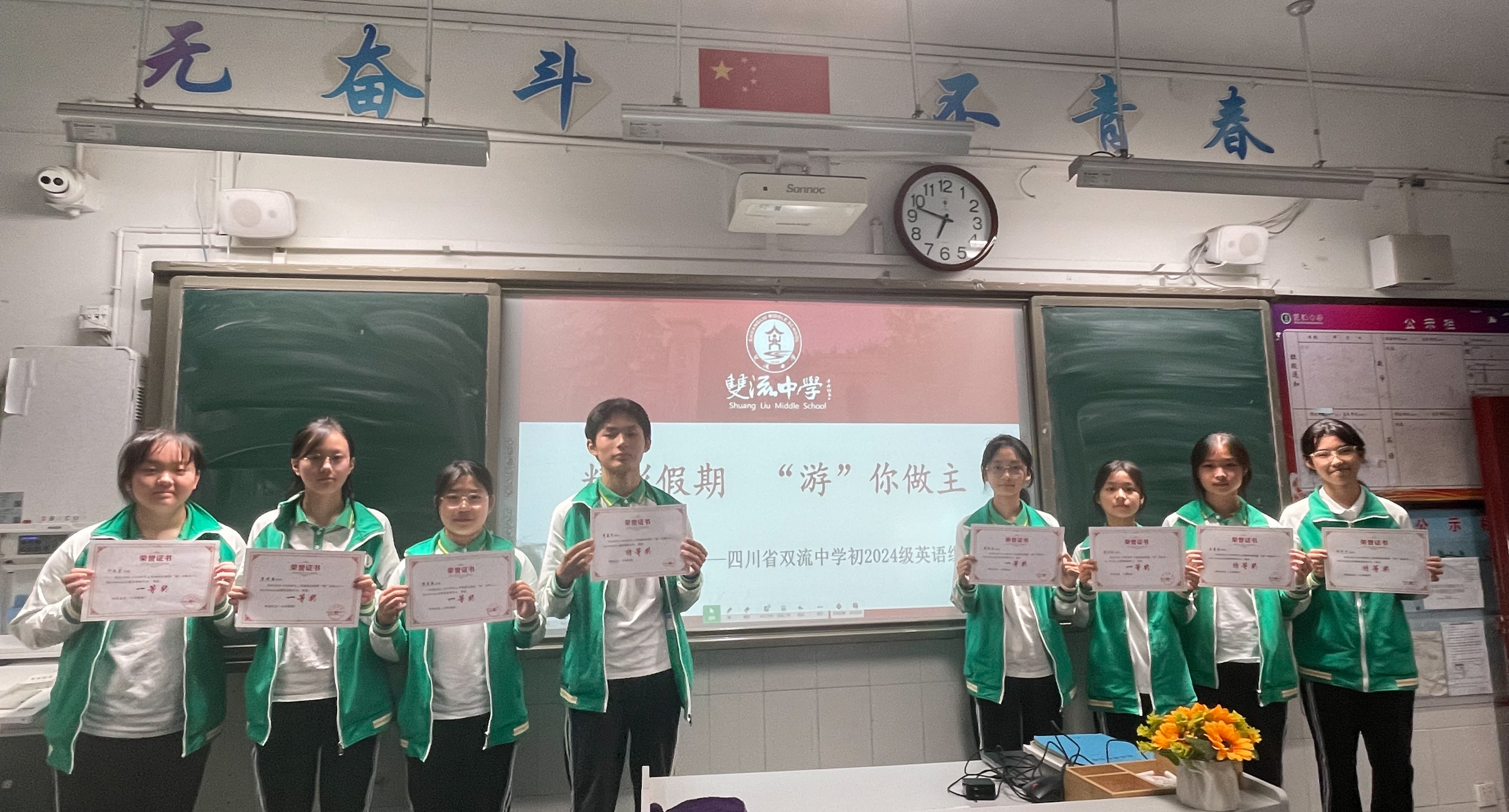 恰逢国庆、中秋双节假期,双流中学初2024级举办了一场以“精彩假期,‘游’你做主”为主题的英语海报创作活动。活动中同学们以画笔为语言,以色彩为情感,用一张张精心设计的海报,讲述了自己精彩的假期生活。