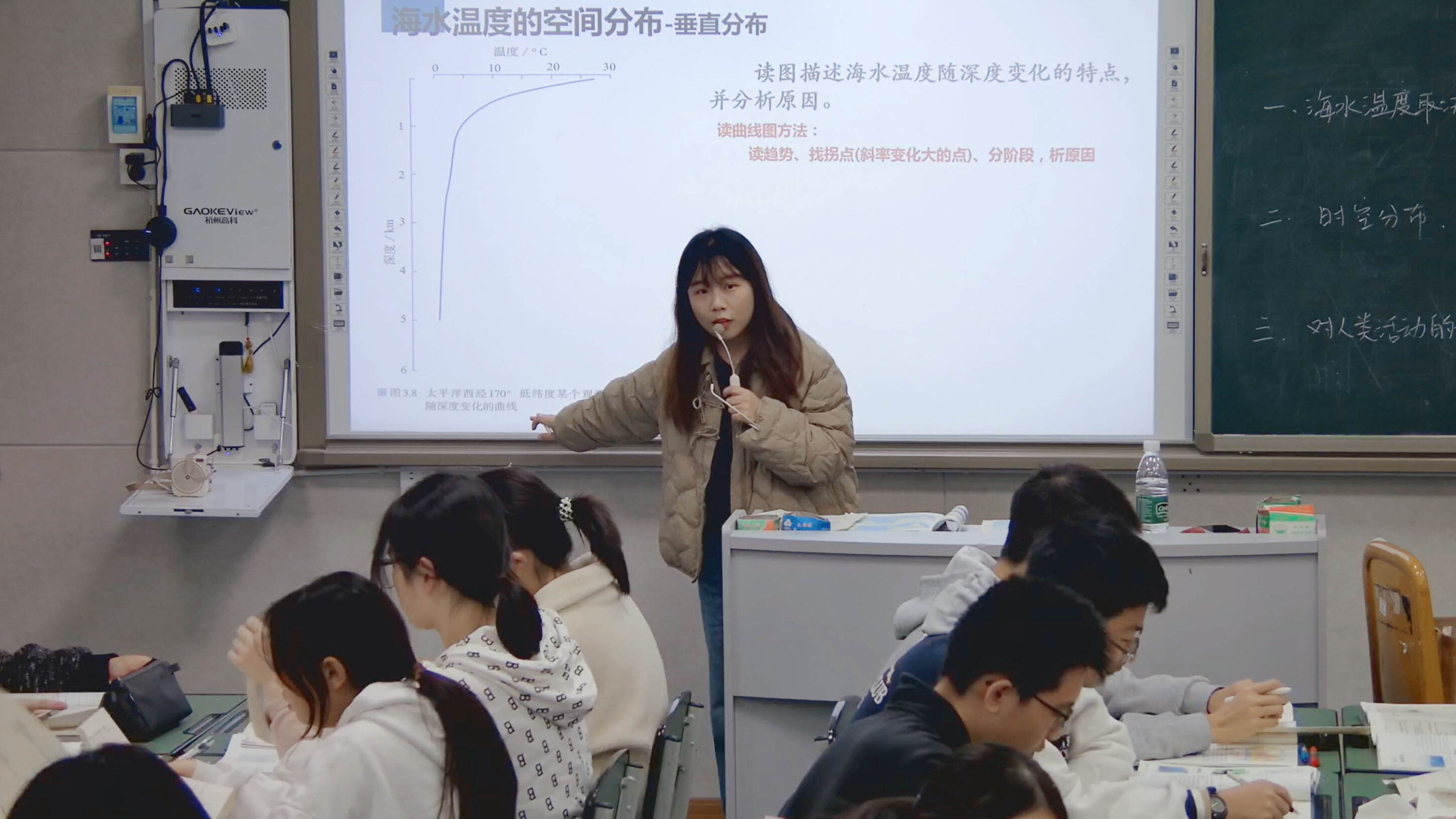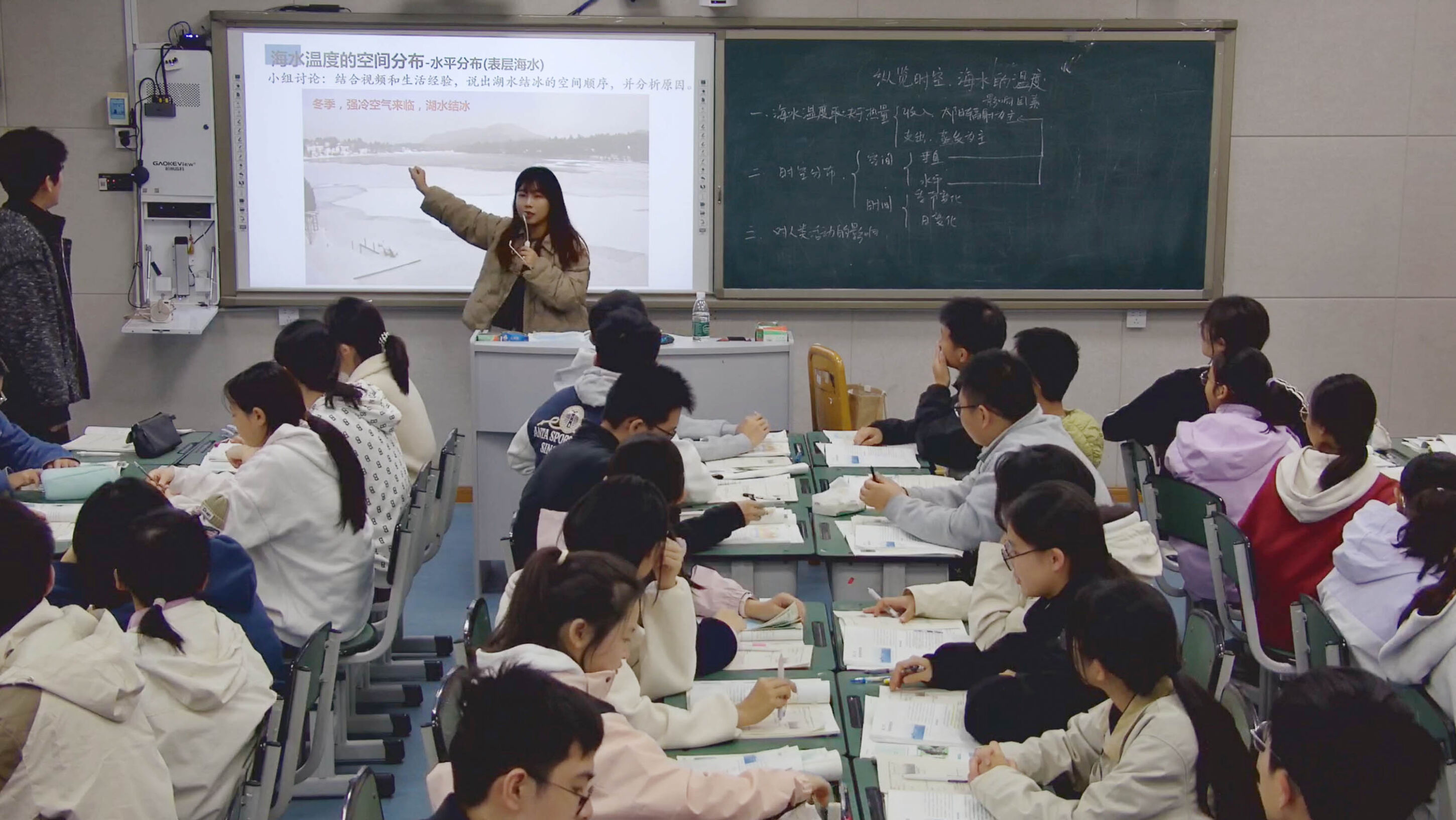 图2 王旭菲老师课例《海水的温度》其后,立格实验学校的杨霞老师带来讲座《高中地理“时空综合”素养的内涵解析及培养策略》。杨老师深入挖掘“时空综合素养”是什么、怎么考和怎么教三大核心问题,深刻阐释了“时空综合”素养的核心内涵与认知层级,并系统构建了一套行之有效的课堂教学策略体系,为一线教师如何将素养培育目标精准锚定于日常教学提供了关键支点与明确路径。