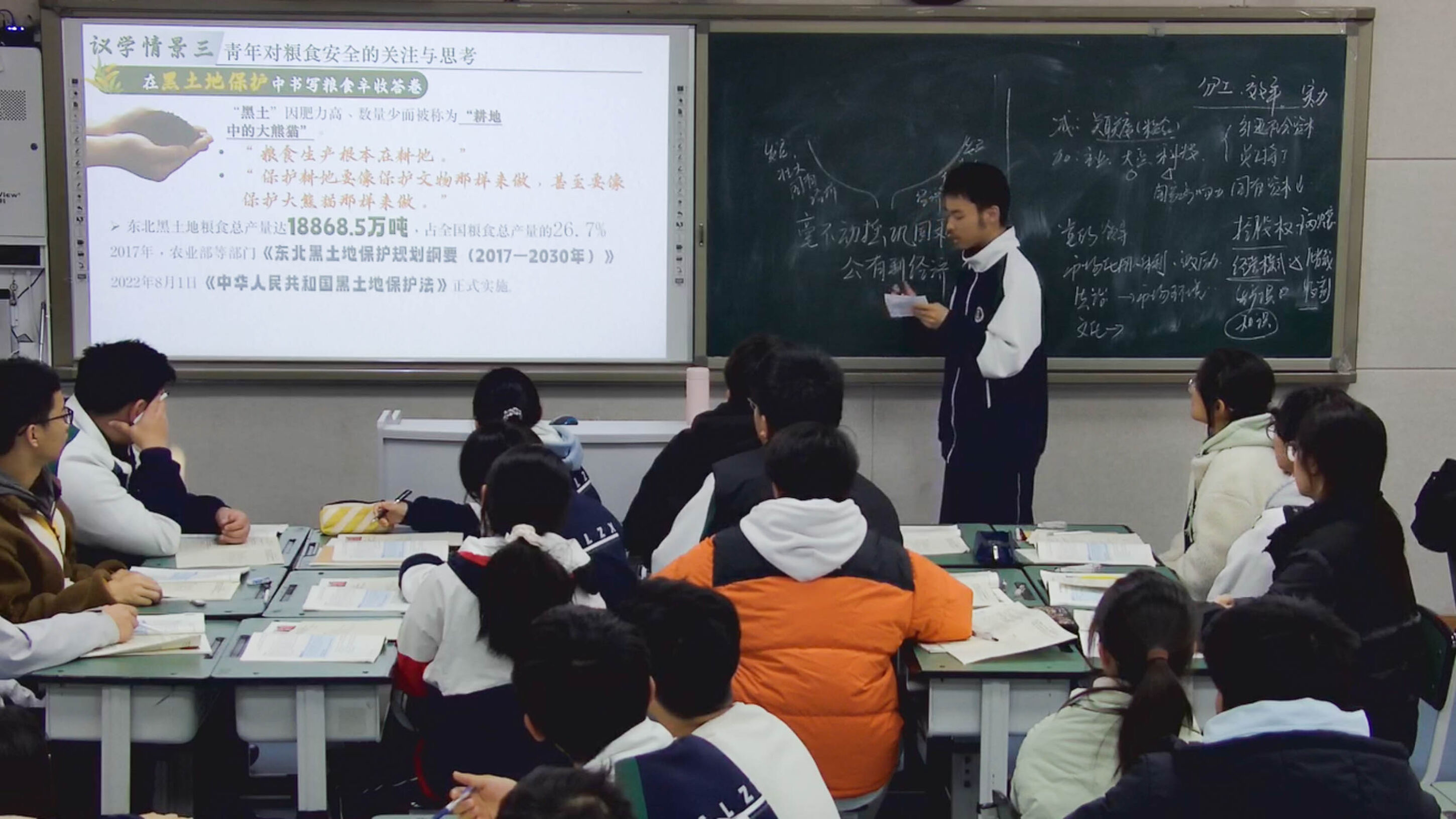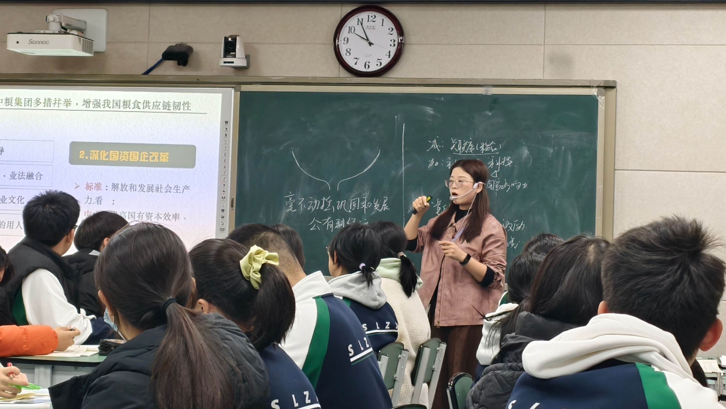 何丹老师以“毫不动摇巩固和发展公有制经济”为主题,聚焦“粮食安全”这一国家战略,以“中粮集团”的发展策略与“天府粮仓”的创新经营创设教学情境,精心构思,巧设问题,既解读了国有经济、集体经济的壮大路径,也鼓励学生立足身边实际开展调研,彰显青年思考与担当。