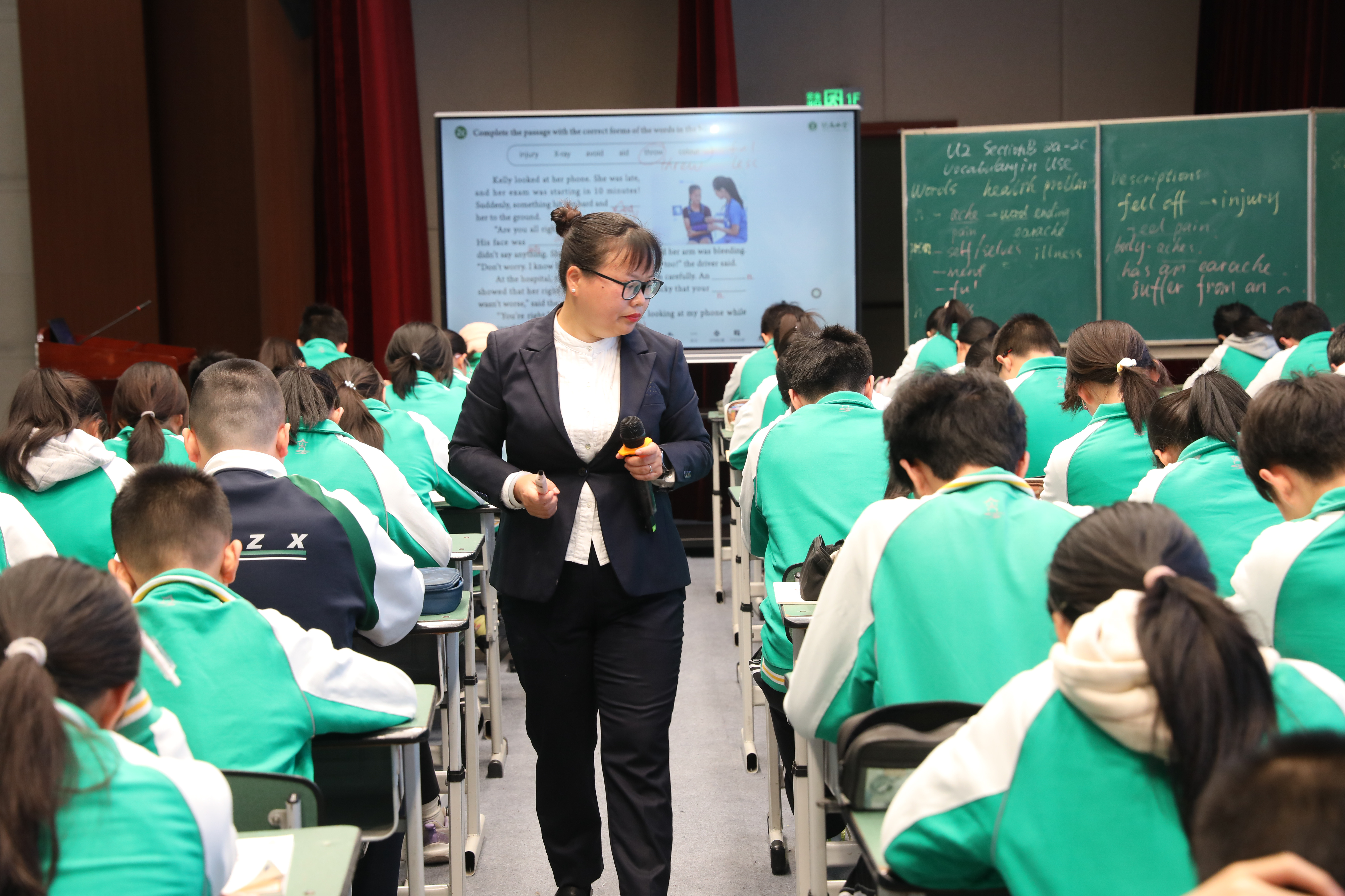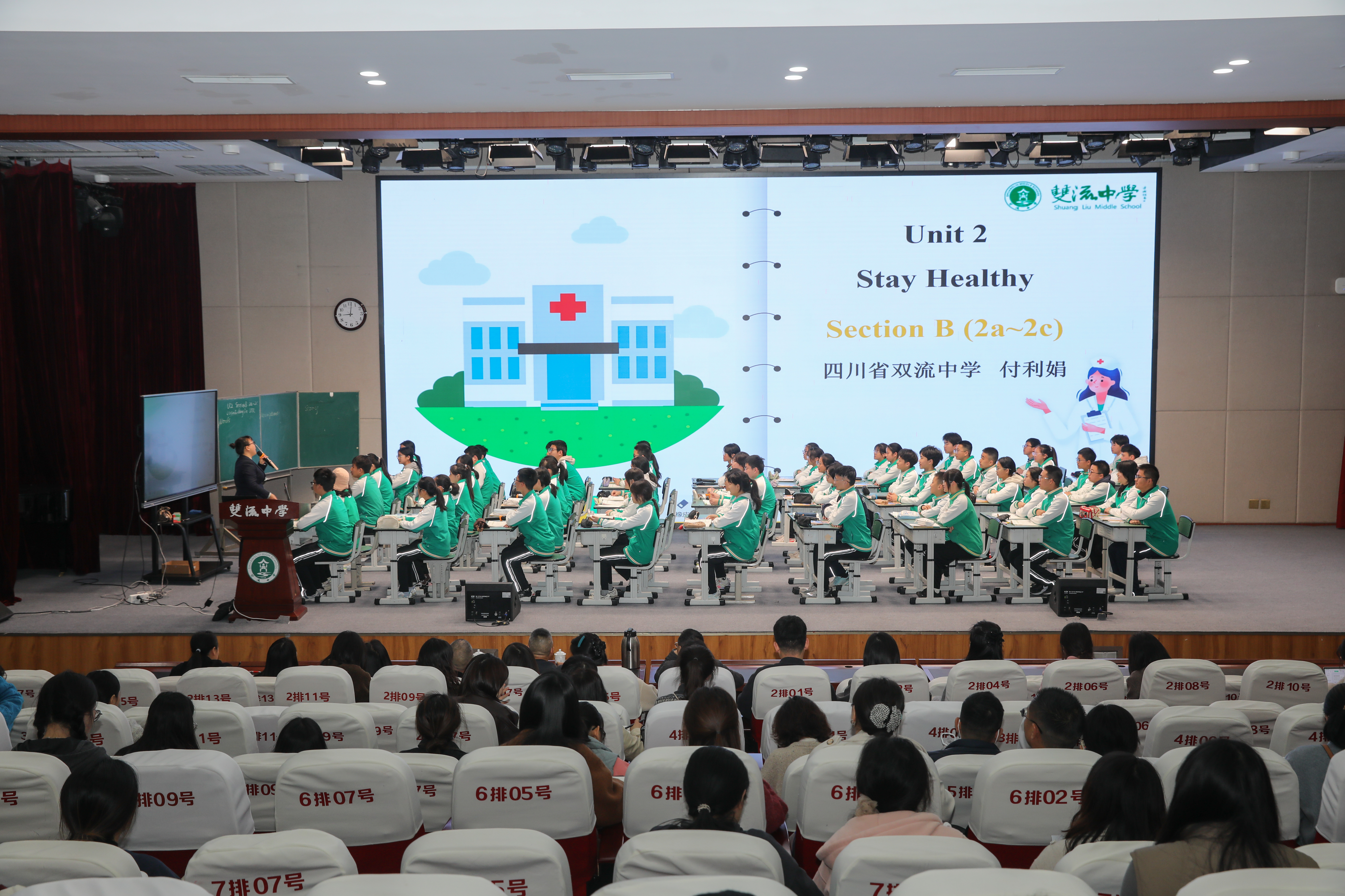 双流中学付利娟老师执教了2024人教版八年级下册Unit 2 “Stay Healthy” Section B 2a—2c,聚焦“Vocabulary in Use”教学。课堂立足基础,紧扣托底核心,教学目标与内容定位精准。教学环节按照“复习铺垫—新知探究—基础运用—进阶提升—情感升华”的梯度设计,环环相扣,为基础薄弱的学生搭建起清晰的学习阶梯,帮助他们在逐步跟进中实现有效防分化。同时,课堂通过学习理解、应用实践、迁移创新三类活动,兼顾全员参与和精准帮扶,筑牢托底防线。付老师还注重情感赋能,始终关注学生心理状态,帮助每一位学生保持学习动力。课堂尾声,她巧妙运用本课重点辨析的词汇写下一段话,令在场师生印象深刻:“The pain of an injury can make you suffer, and the ache may leave you sore, but ignoring the hurt will lead to more harm.”