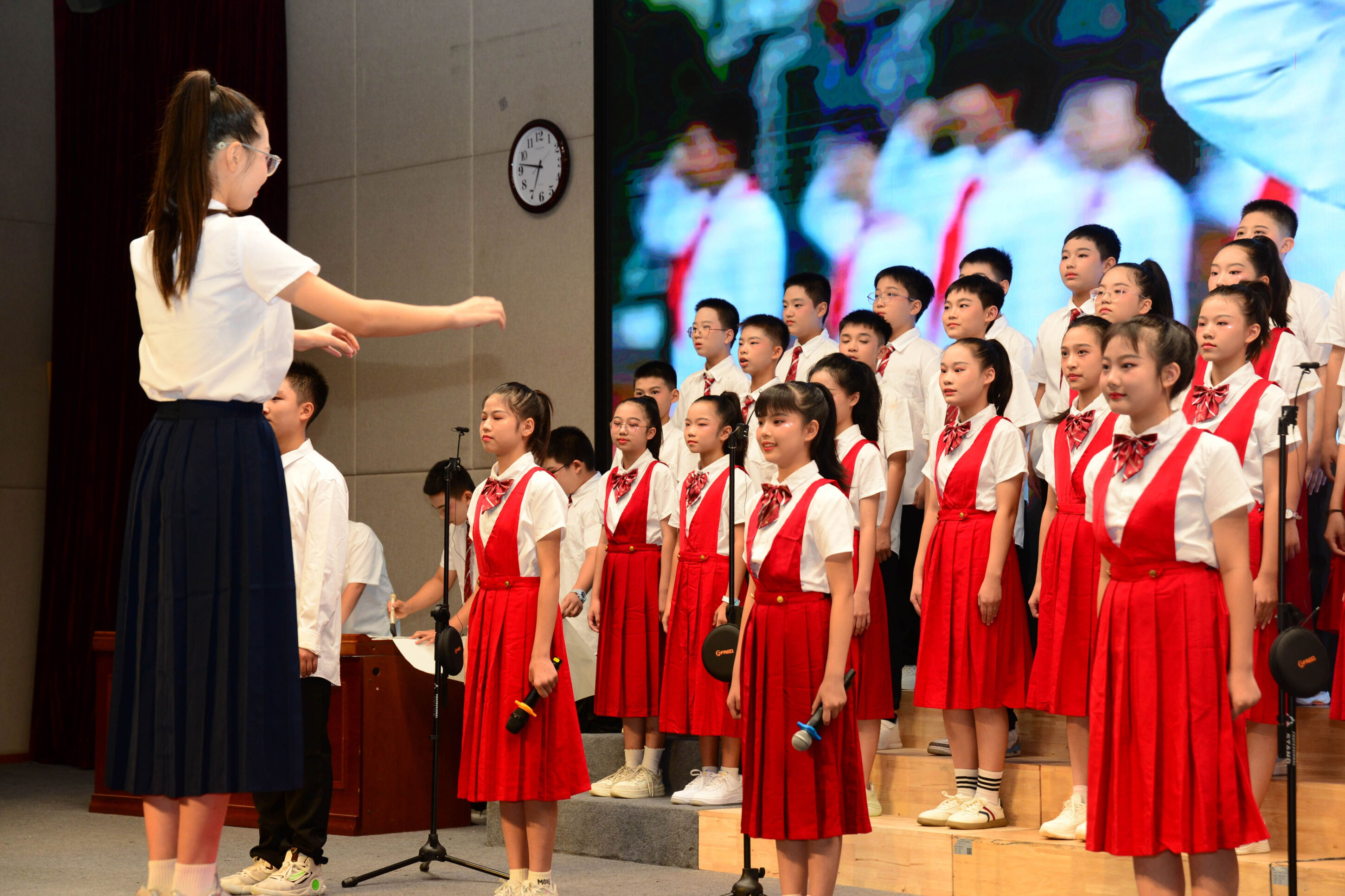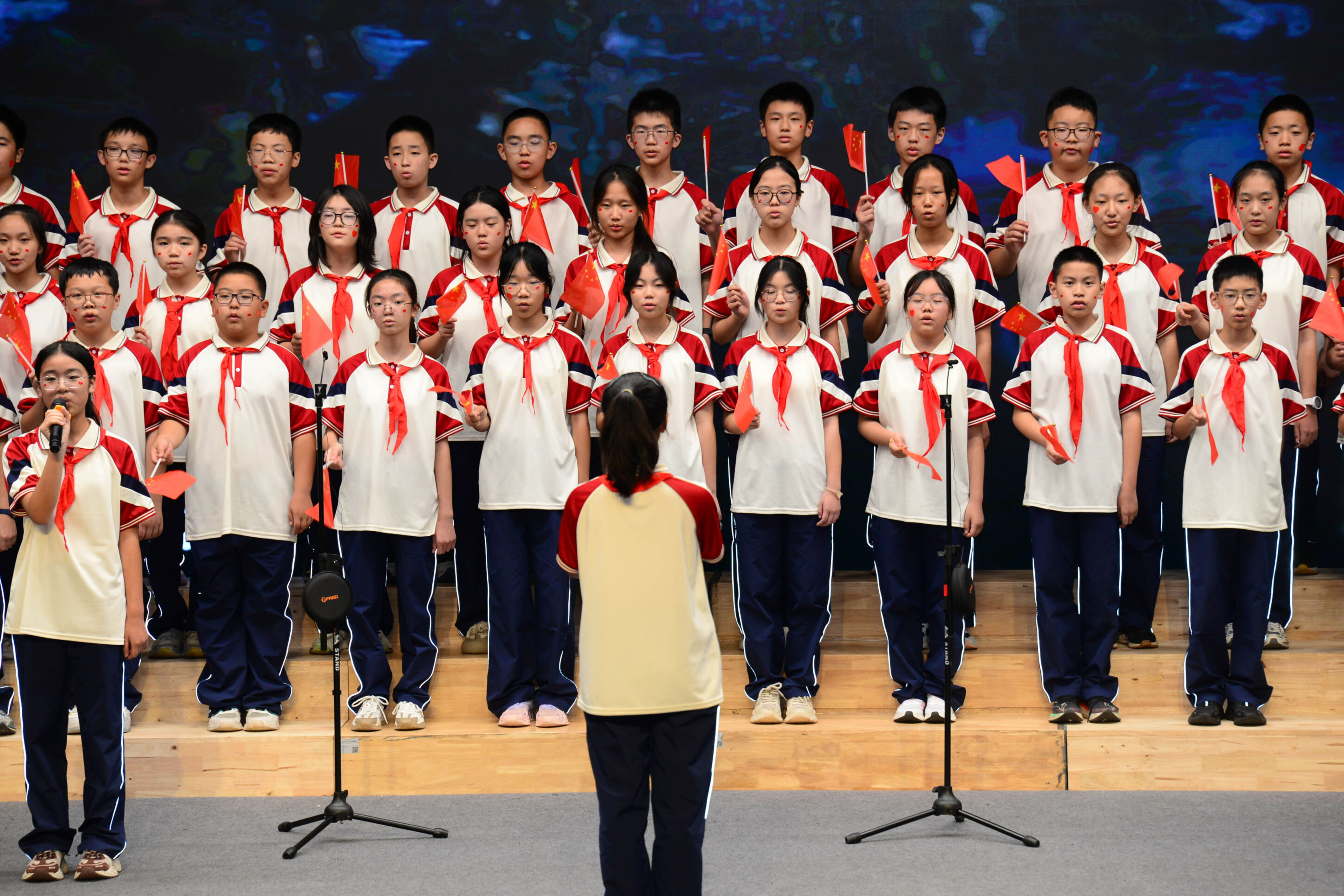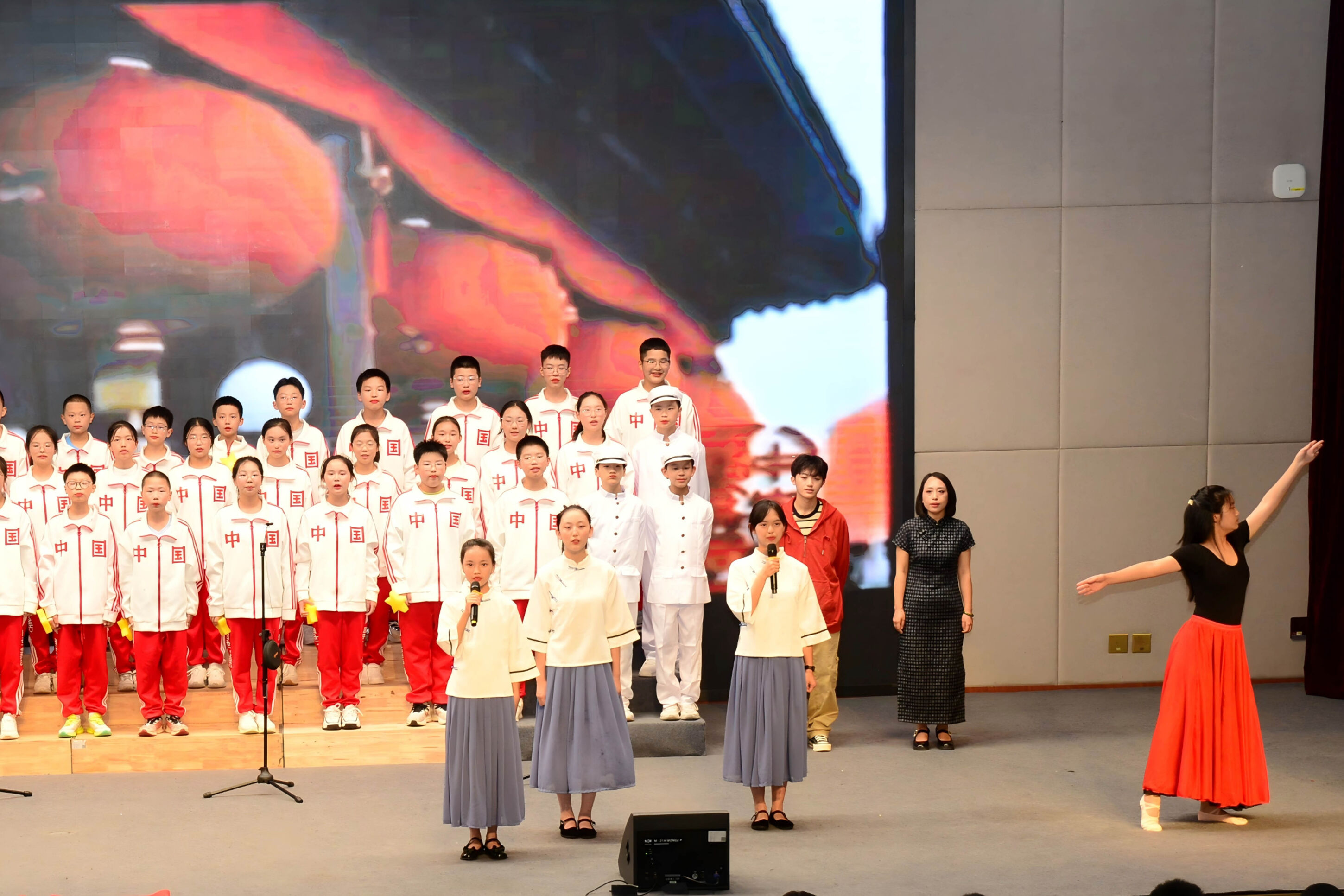 所有班级表演结束后,音乐教师覃嘉萱代表评委进行点评。她指出,这不仅是一场歌咏比赛,更是一场生动的艺术实践与爱国主义教育。“从小学到初中,这是许多同学的第一次集体合唱。通过这次比赛,大家真正体会到,合唱需要我们深度和谐共鸣,彼此倾听,相互成就。”她动情地说,“当今晚的歌声在玉兰厅响起,每一位同学的纯真与炽热,都是对祖国最真挚的爱意。”