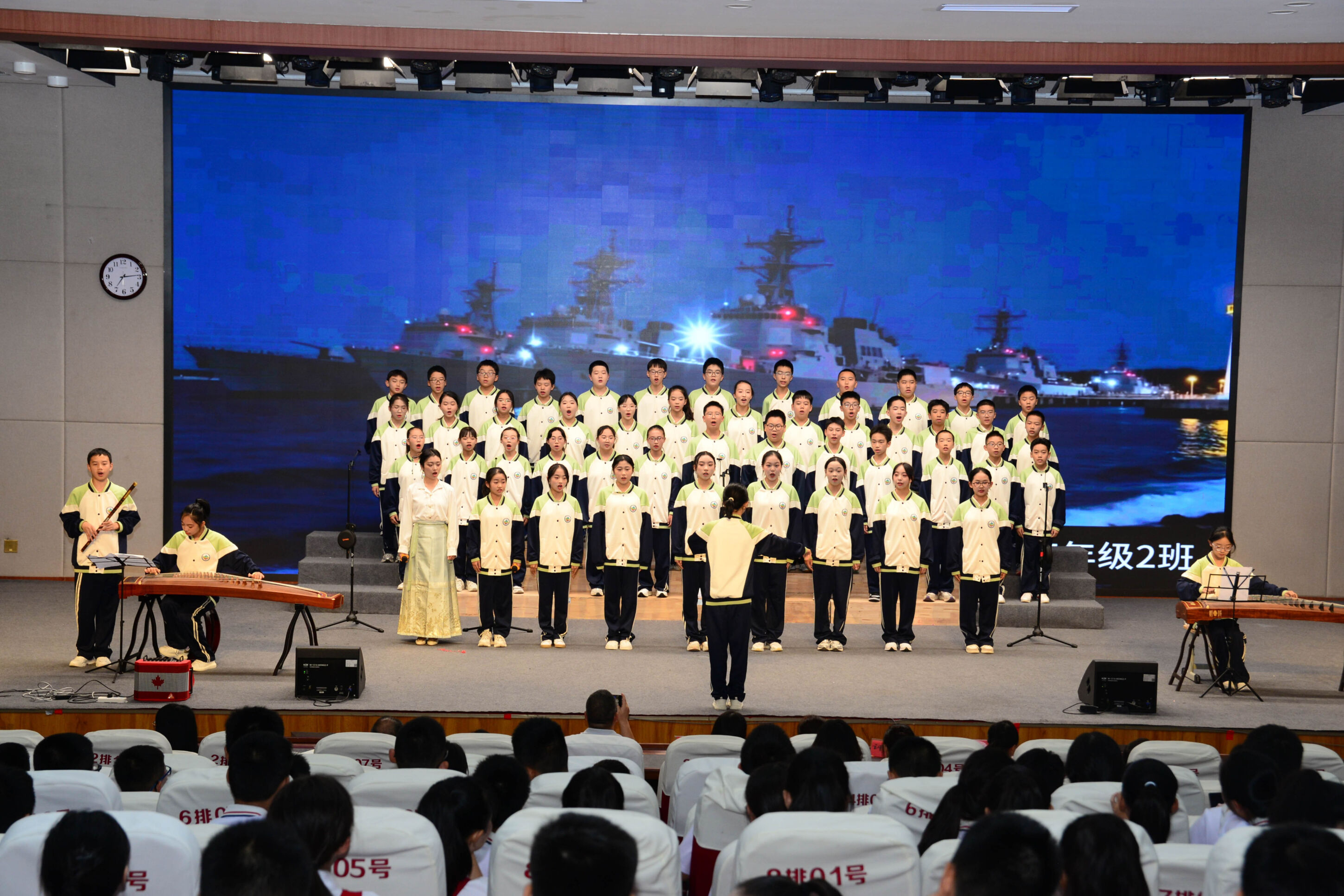 舞台上,同学们精神饱满、歌声嘹亮,展现出良好的艺术素养和班级凝聚力。