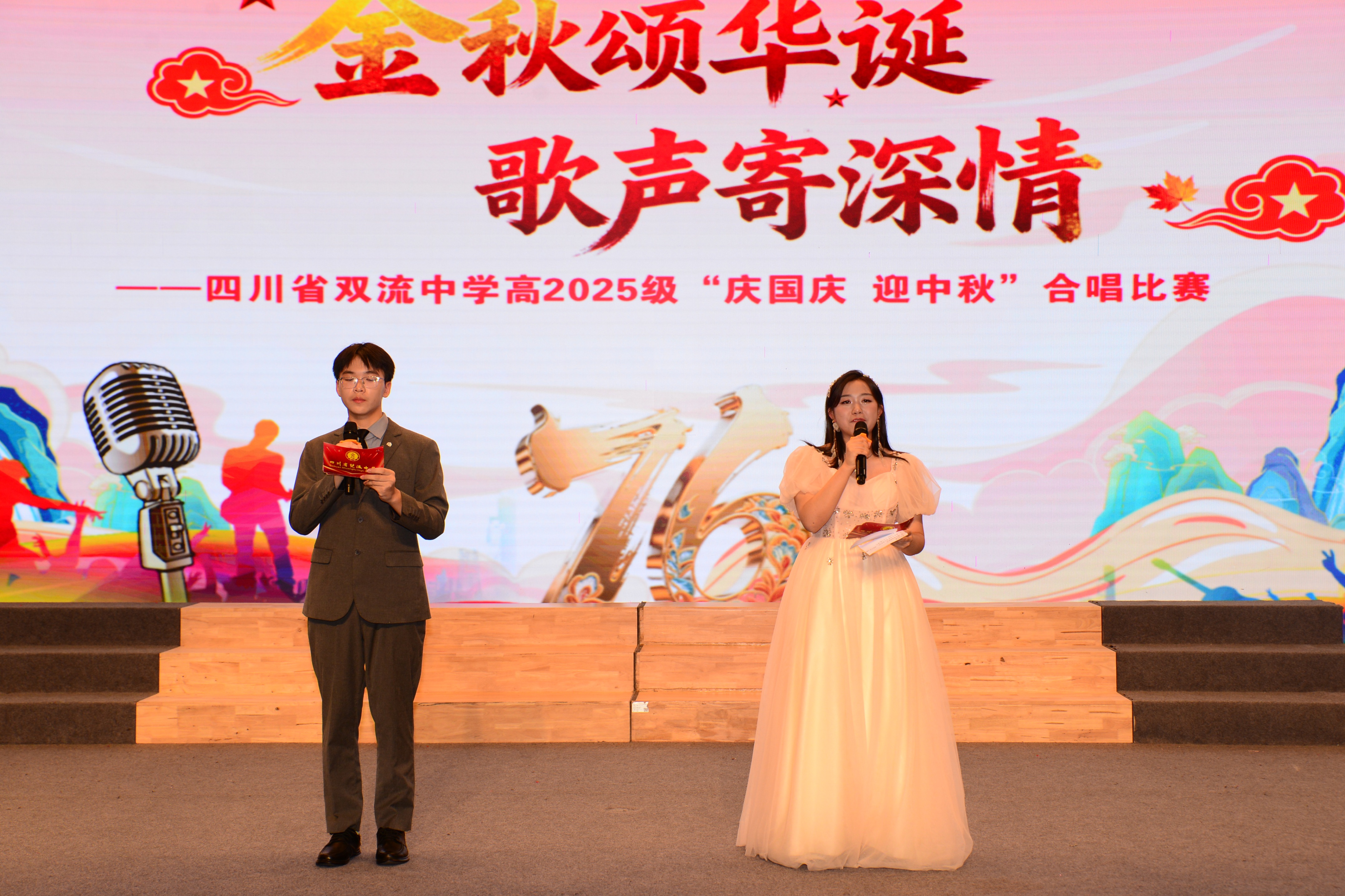 秋风送爽,丹桂飘香,金秋与赤诚相撞,奏响最美的青春乐章。9 月 29 日,双流中学高 2025 级 “金秋颂华诞,歌声寄深情” 合唱比赛于玉兰厅隆重启幕。厅内座无虚席,师生家长齐聚;校外直播火热,千余名家长与各界人士在线守候。高 2025 级学子以音乐为舟、以青春为帆,两校区共振、线上线下共鸣,共赴那片名为“家国”的星辰大海。
