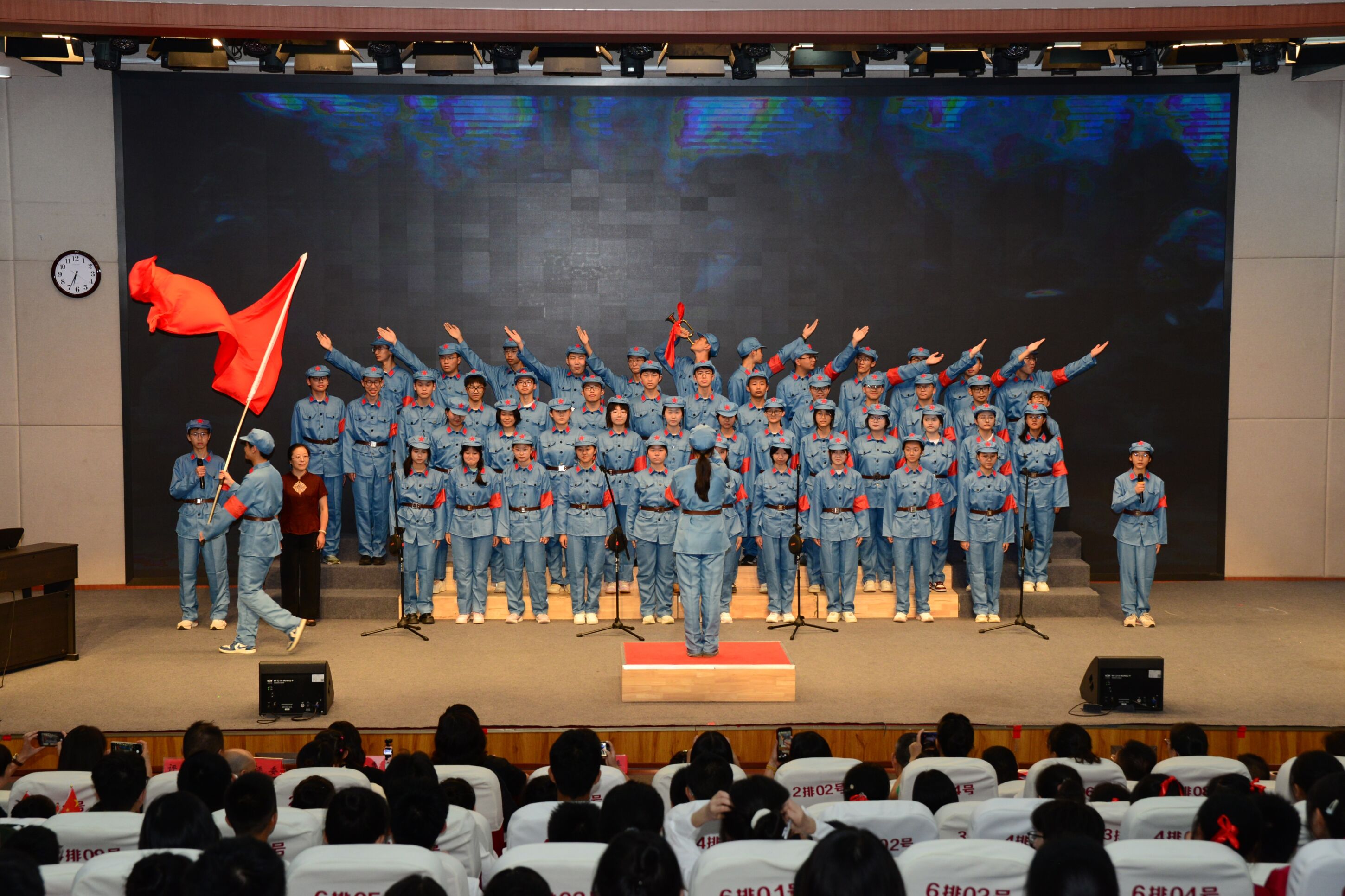 他们身着整齐的服装,眼神中闪烁着坚定的光芒。指挥的手臂划出优美的弧线,引领着青春的声浪时而如山涧清泉,潺潺流淌;时而如惊涛拍岸,气势如虹。那不仅是技巧的比拼,更是班魂的凝聚,是年轻的心灵对家国情怀最赤诚、最动人的诠释。舞台之上,星光为伴;舞台之下,掌声如潮。线上线下,无数颗心被同一份深情紧紧相连。