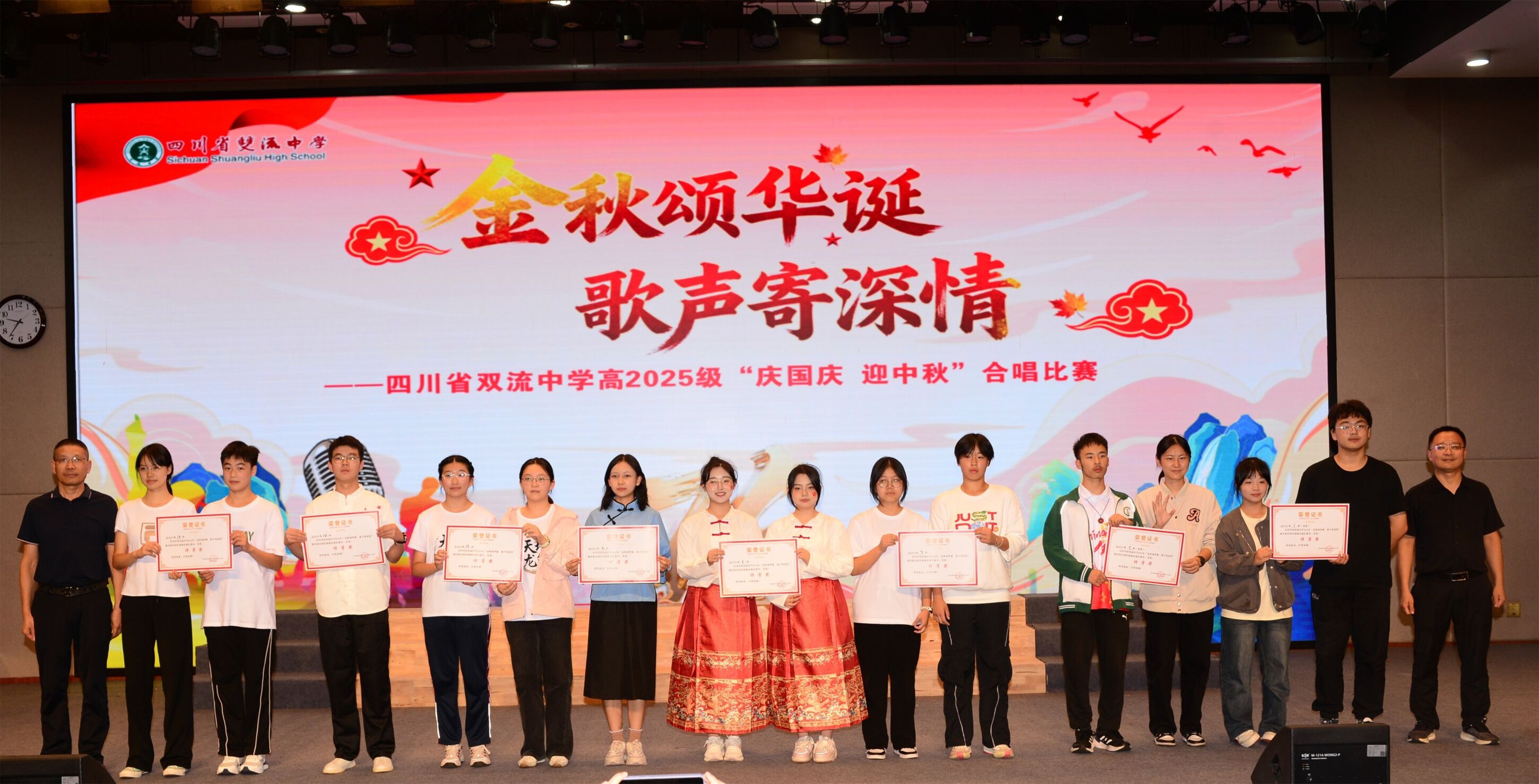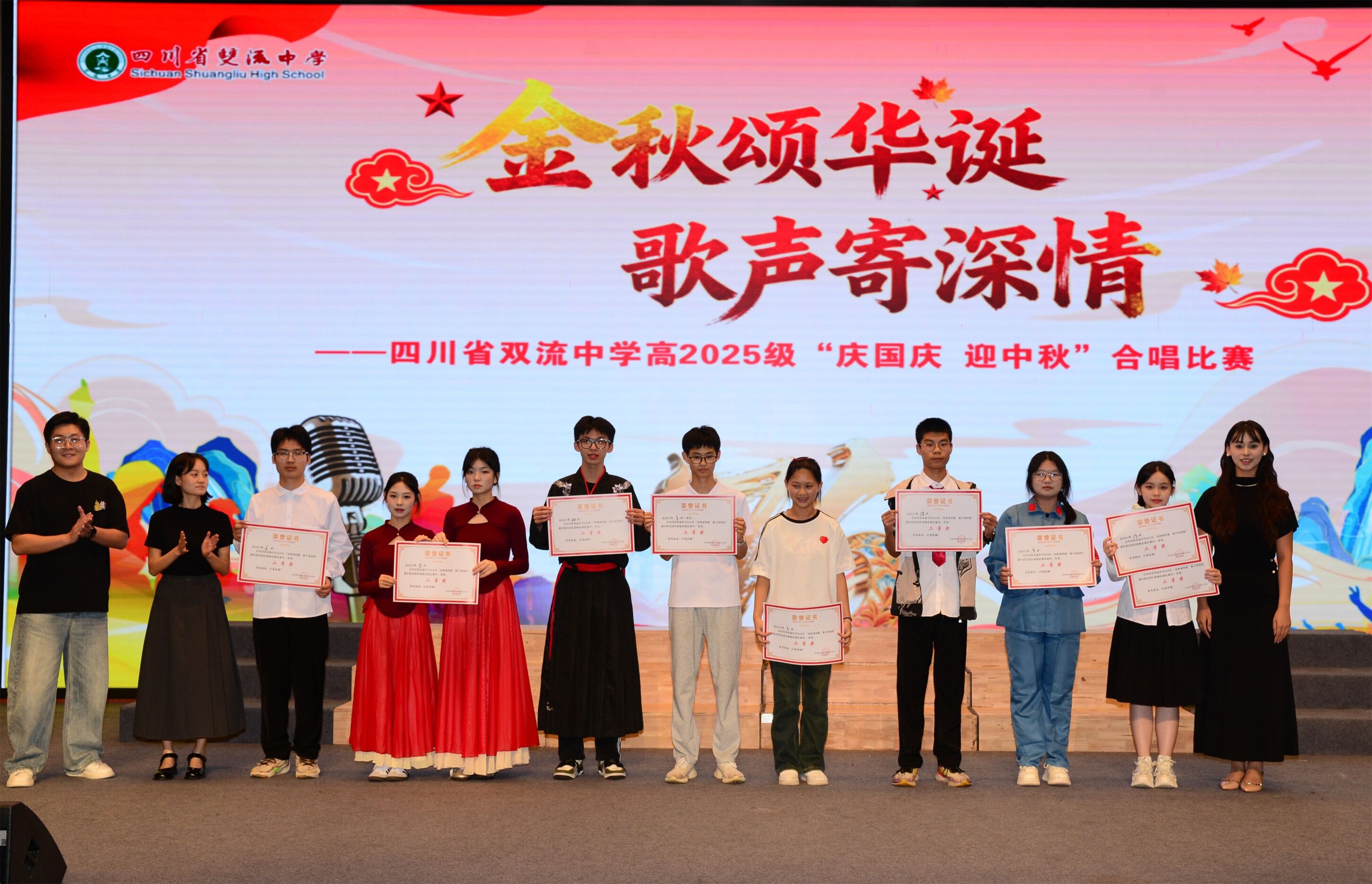 曲终韵未绝,情深入肺腑。本次合唱比赛,不仅是一场艺术的盛宴,更是一次深刻的爱国主义教育与集体主义教育。它让家国情怀在悠扬的旋律中生根发芽,让团队精神在和谐的声部里淬炼成钢。愿这份由歌声凝聚的深情与力量,能伴随双流中学高2025级的全体学子,在未来的征途上,继续引吭高歌,一路繁花!