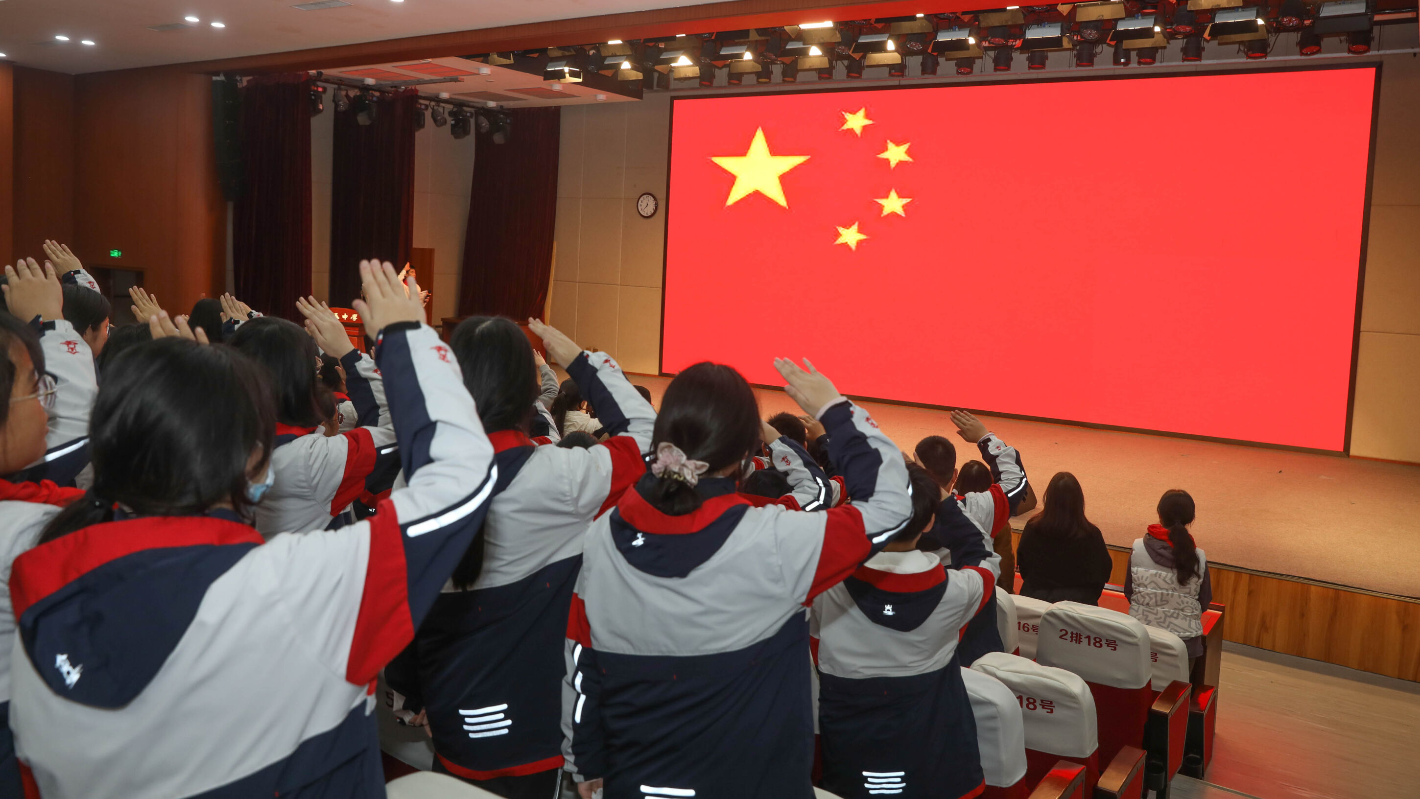 仪式在主持人赵鑫瑞、伏文萱清亮有力的宣告中正式开始。全体师生起立,奏唱《中华人民共和国国歌》,歌声嘹亮,情怀激荡,为这场青春的仪式铺就庄重的底色。