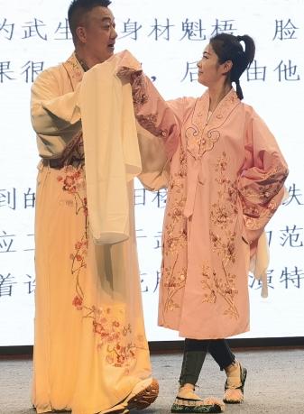 图片7 : 郑洁老师和许威巍老师现场为师生们表演京剧《牡丹亭》片断成都市京剧研究院优秀青年演奏员刘馨丹老师,给同学们现场演奏了京胡。