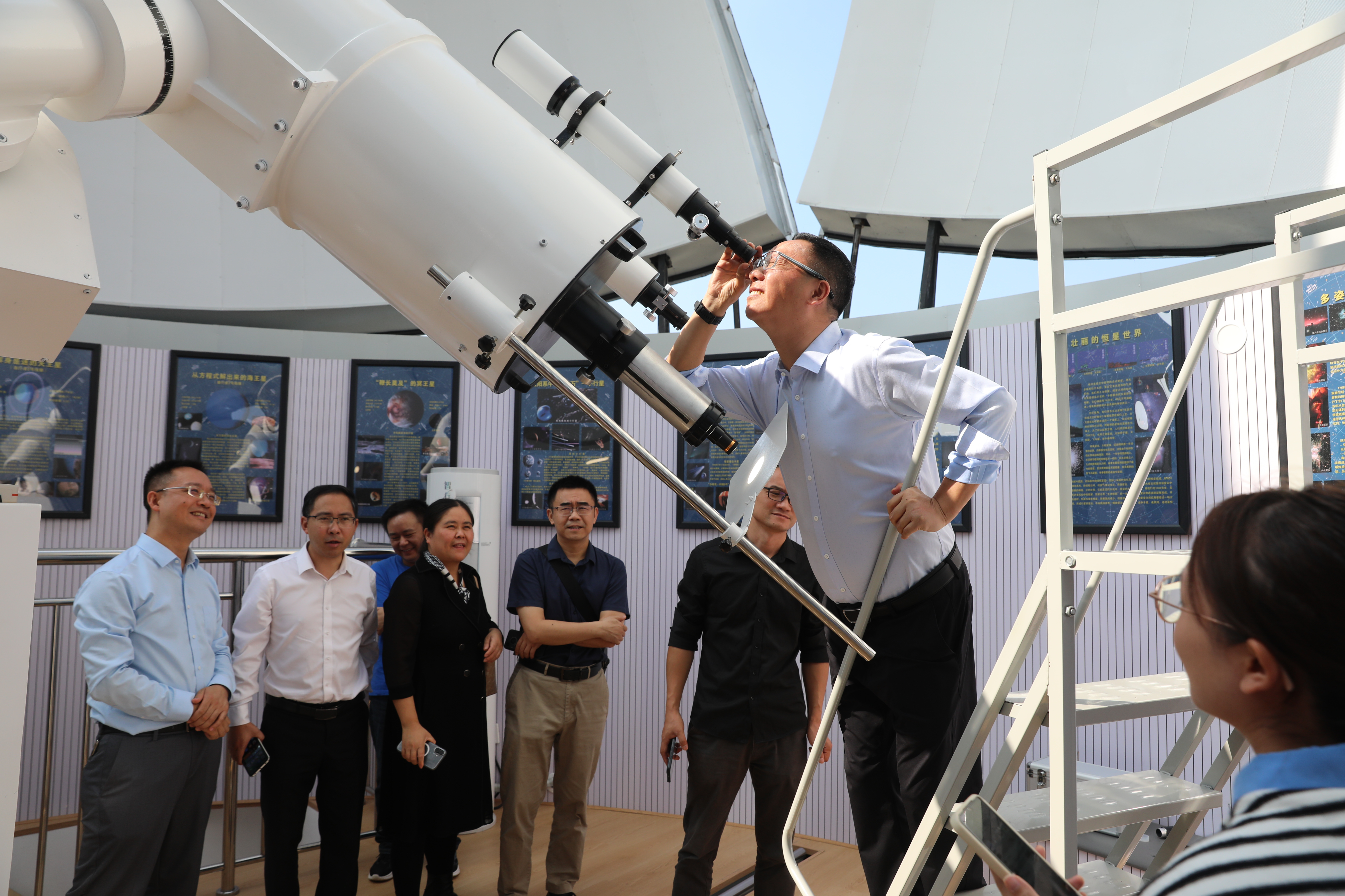 在航空航天中心,张烨老师系统介绍了课程体系与实训平台。从飞行模拟器到无人机编程,学生们在项目式学习中展现出的创新能力获得校长们一致好评。随后在天文中心,屈惠平老师通过演示穹顶天文台、介绍社团活动,展现了学校在培养学生科学素养方面的扎实努力。两大科创中心是学校“课程博雅”理念的生动实践。
