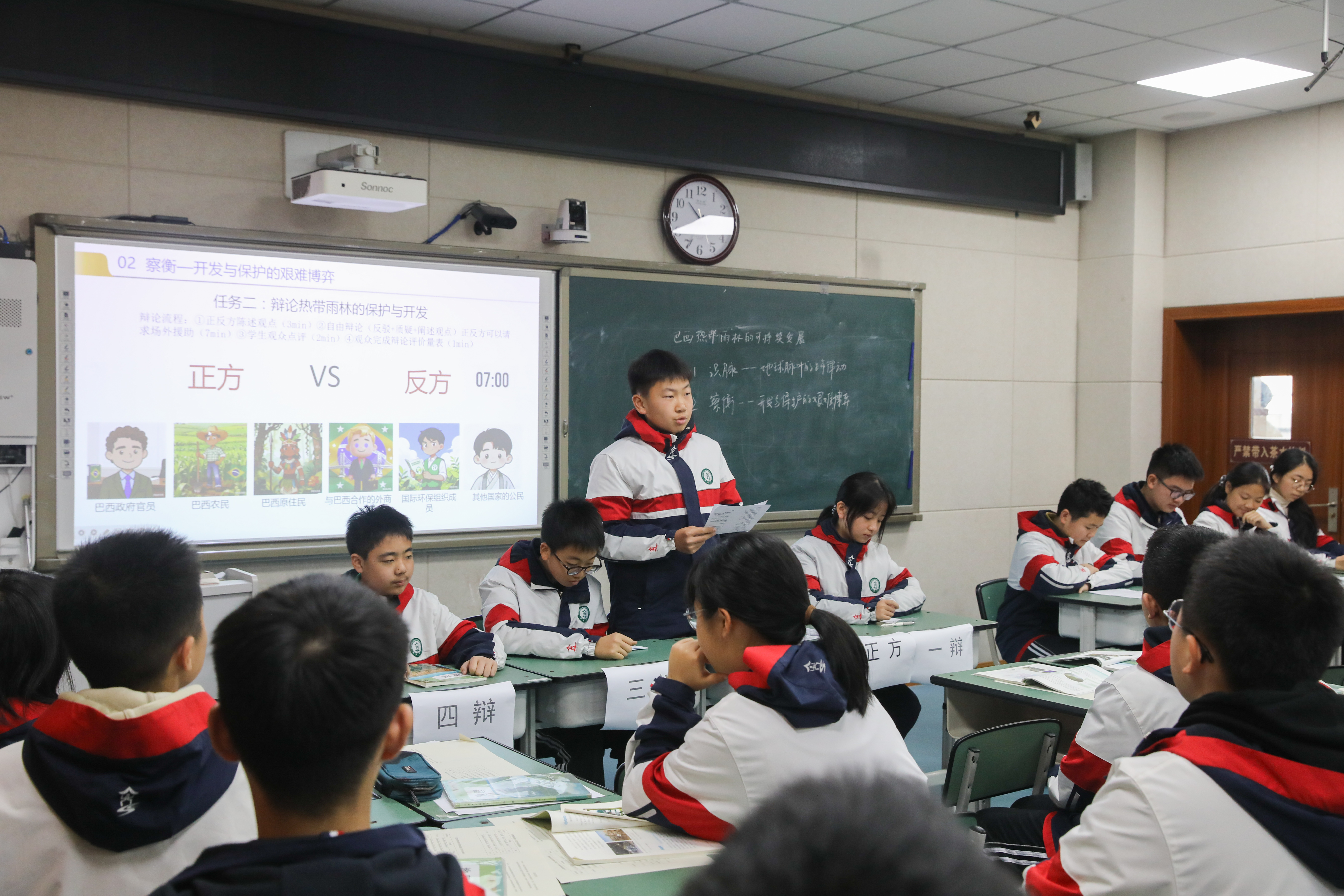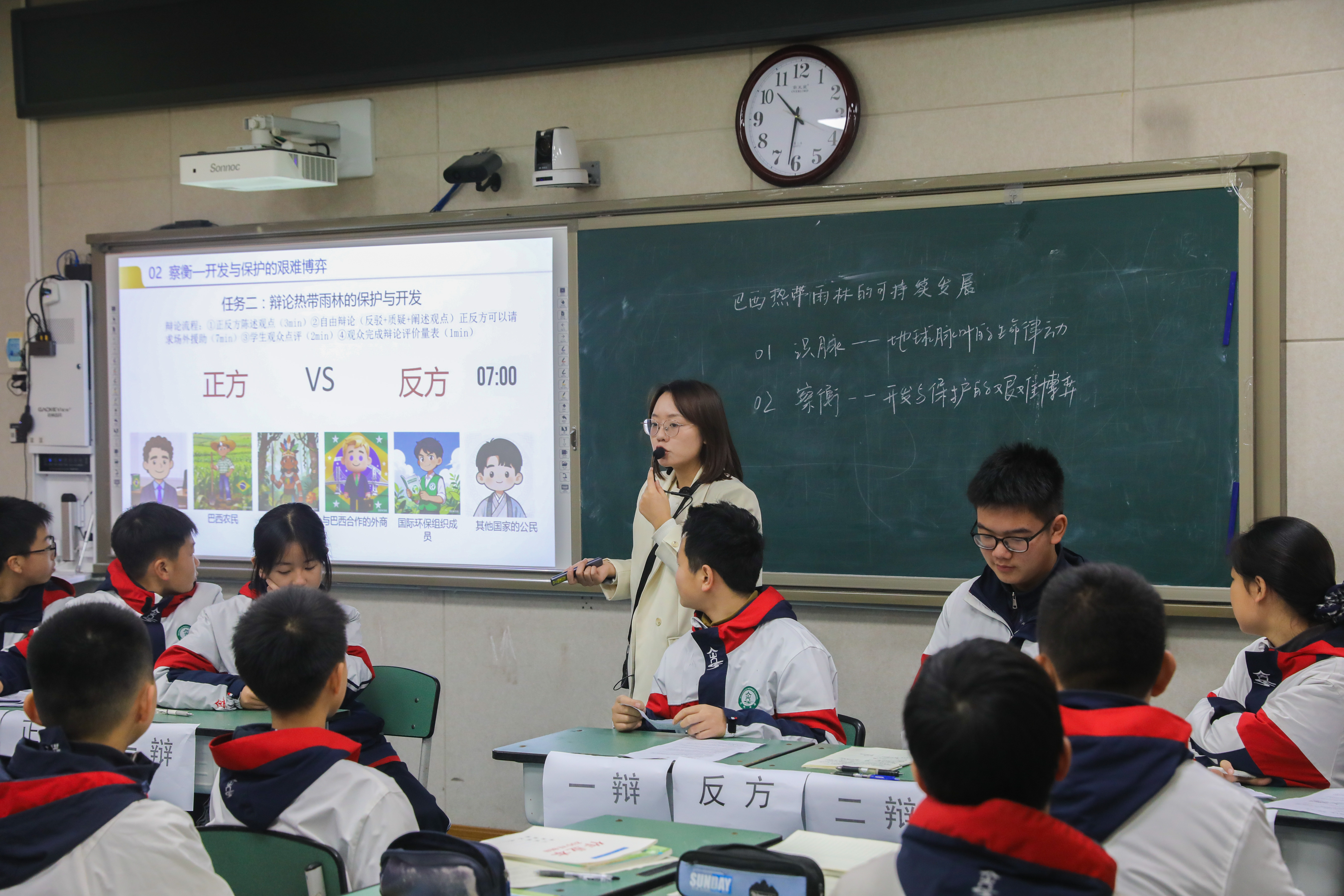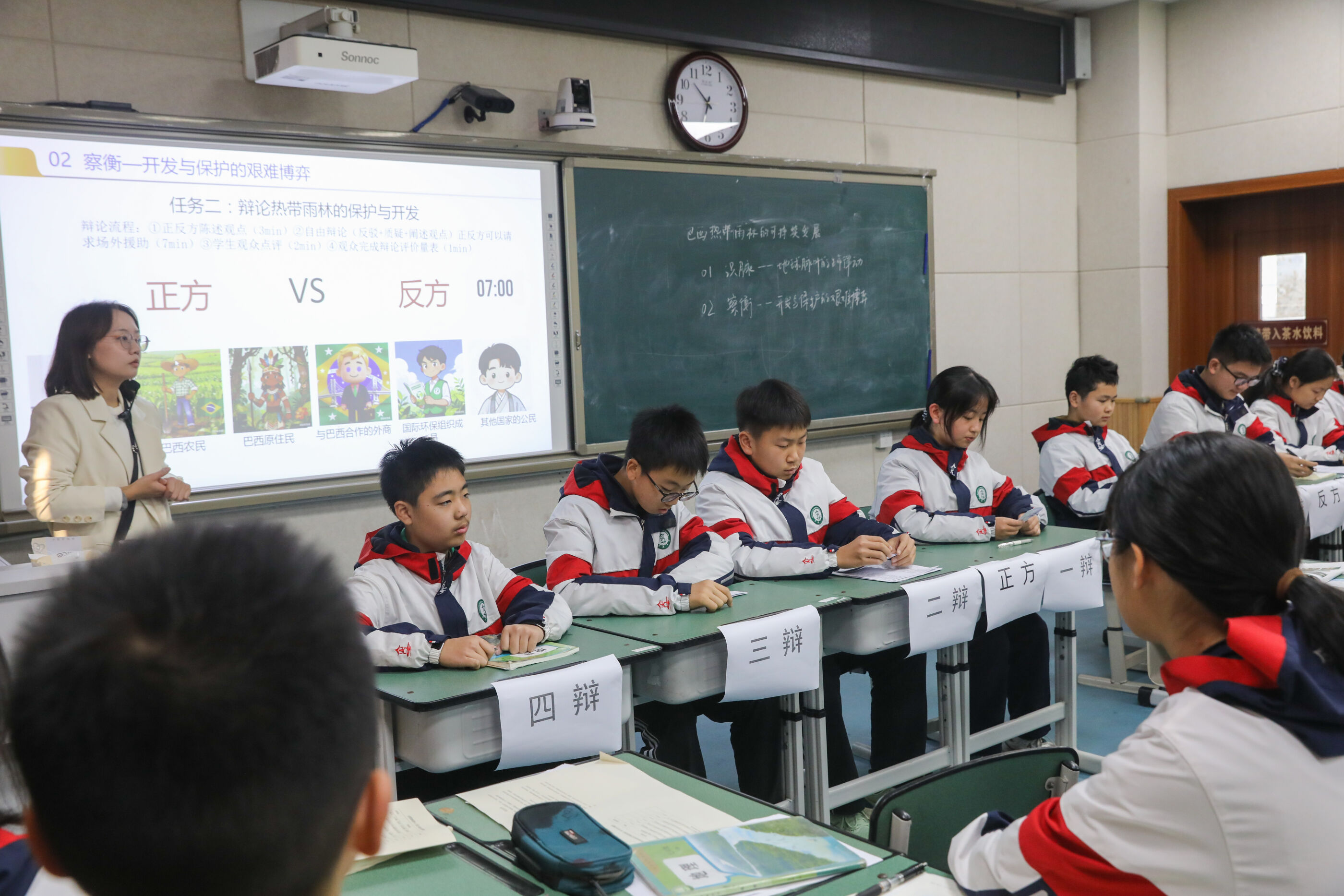 参观校史馆参观结束后,交流团教师共同观摩了地理组屈惠平老师精心设计的国际理解教育展示课——《巴西热带雨林的可持续发展》。课堂上,屈老师以生动的案例和互动式教学,引导学生深入探讨全球环境问题,展现了国际理解教育的实践魅力。