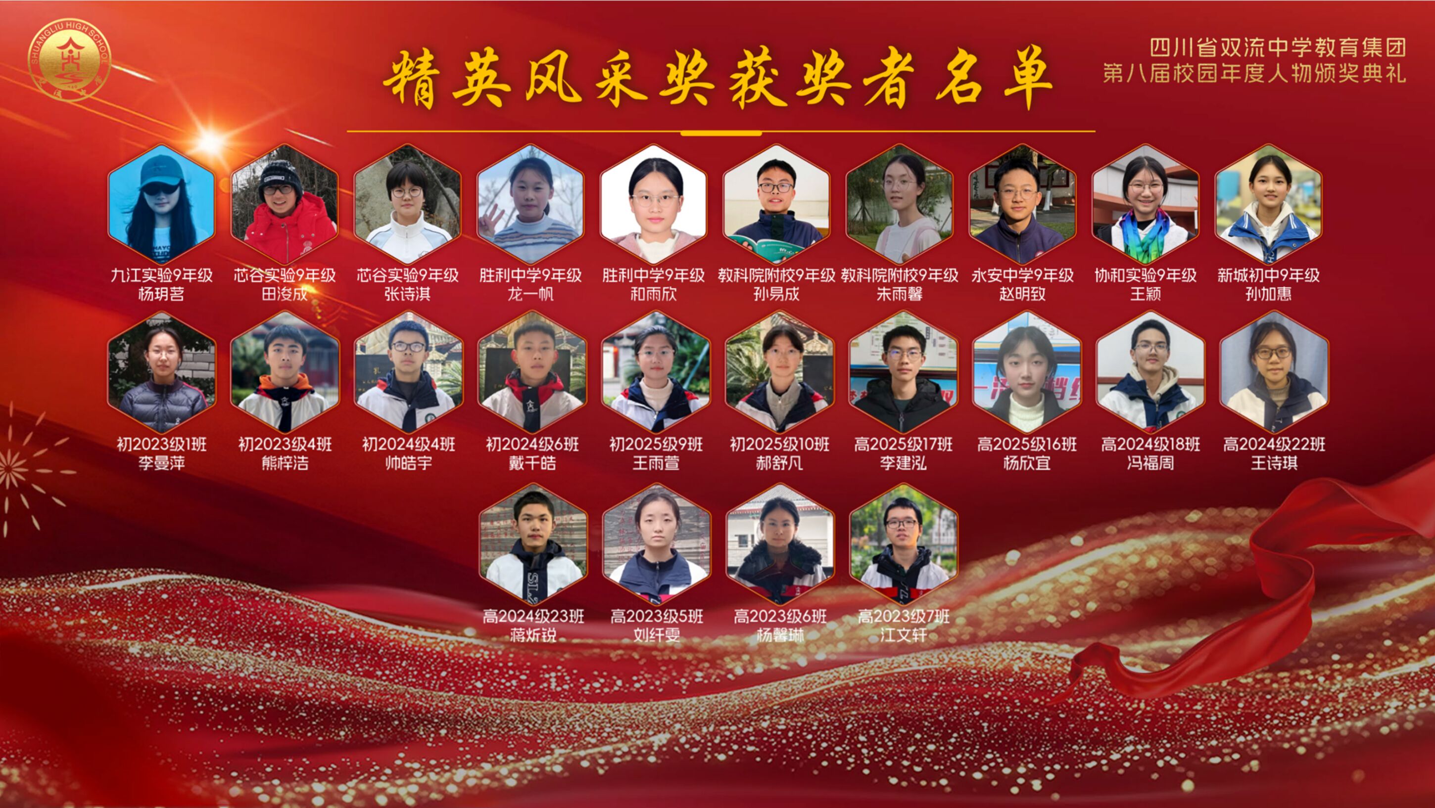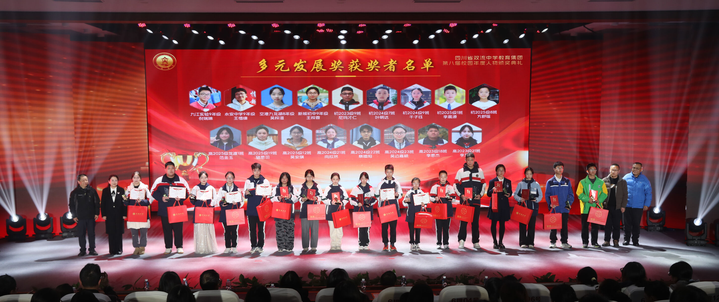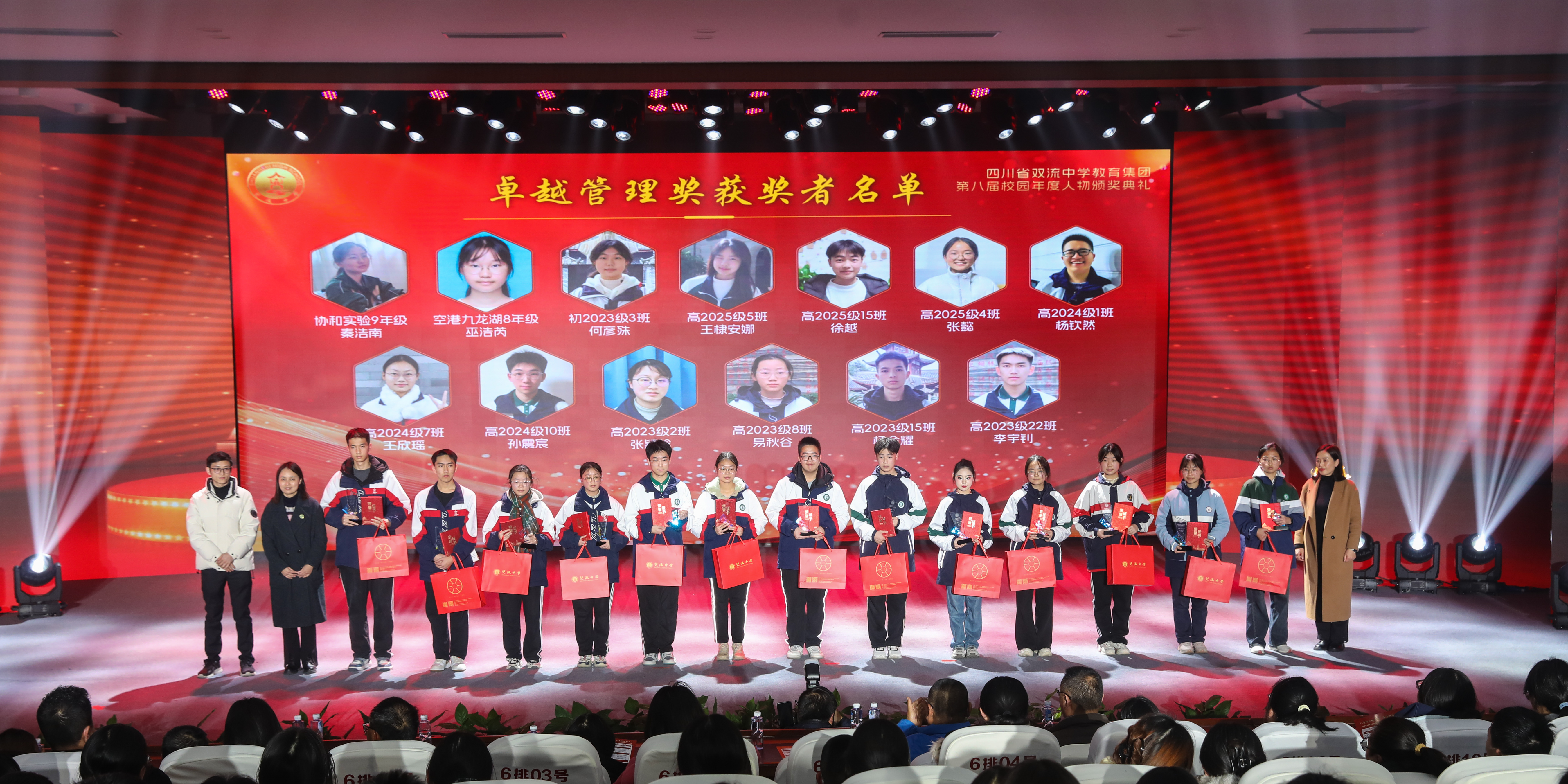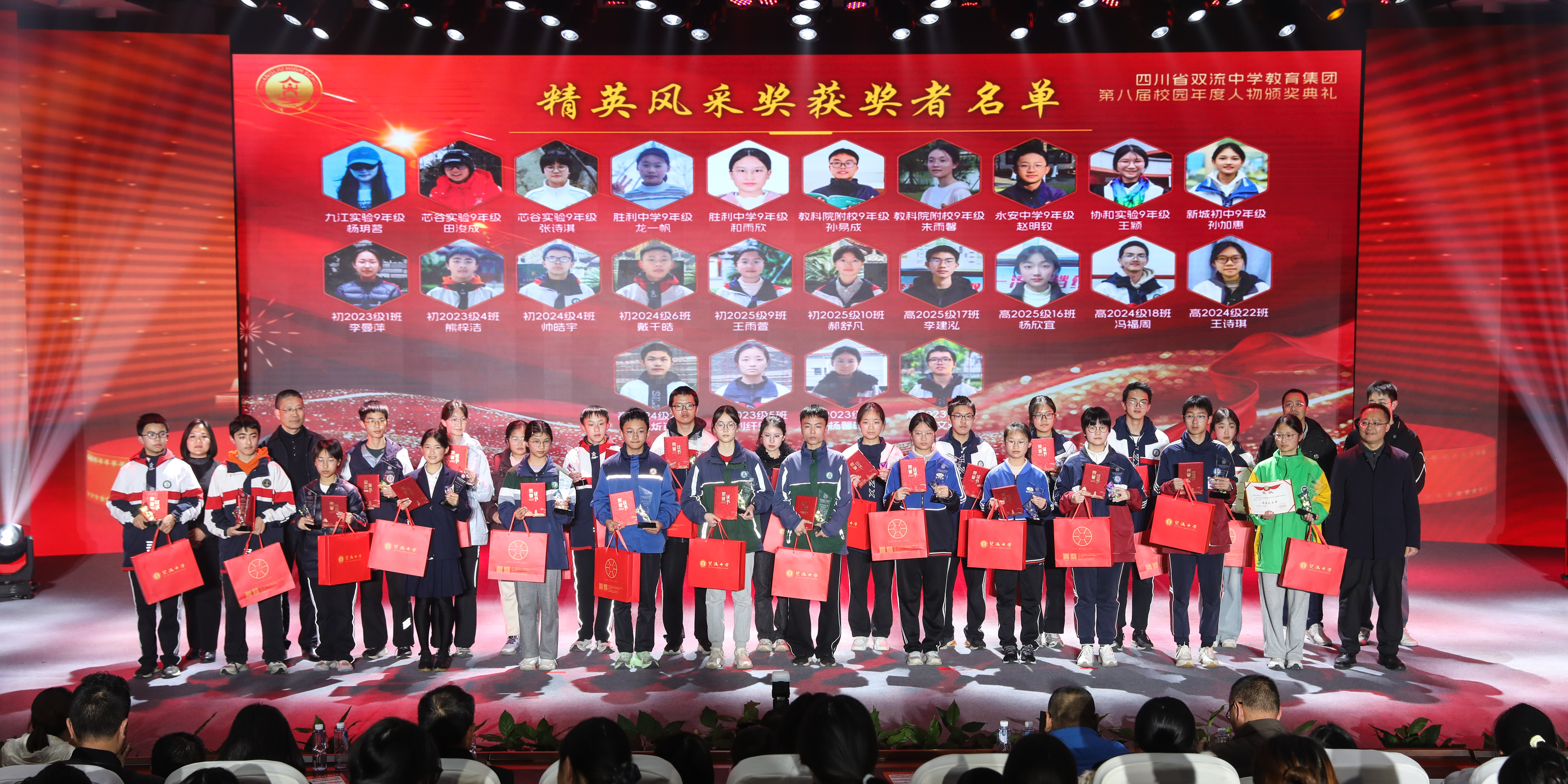 获得“ 精英风采奖”的学生 今夜星光璀璨,明日更值期待。从艺术的盛宴到思想的碰撞,从个人的荣耀到集体的奋进,这场晚会不仅是一场视听享受,更是双流中学教育集团“五育并举”育人成果的生动展示。这场盛会不仅定格了美好瞬间,更凝聚了奋进力量。新的一年,双中教育集团将继续深耕育人沃土,培育更多栋梁之材;双中学子也将以榜样为光,奋楫启航,奔赴更灿烂的未来!
