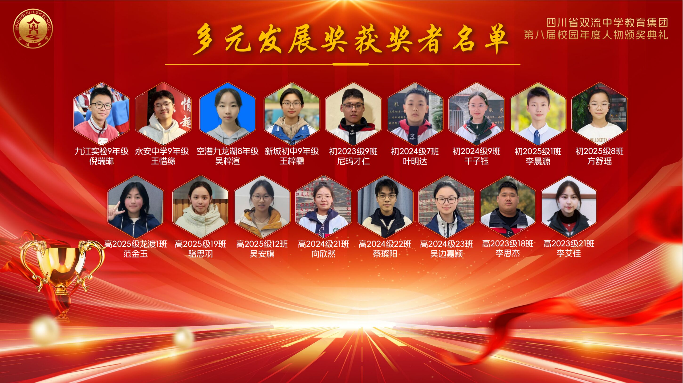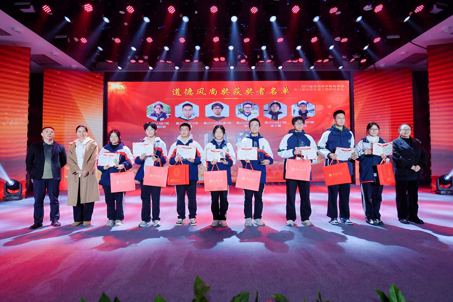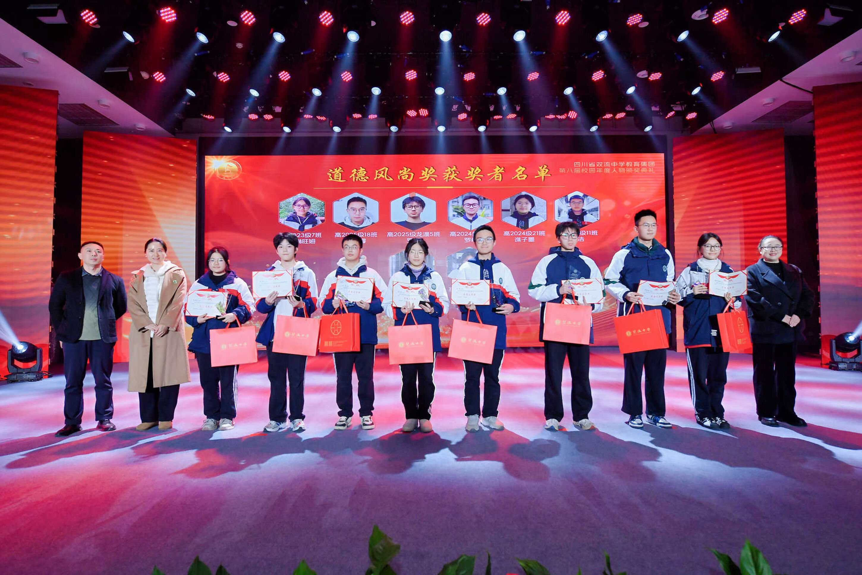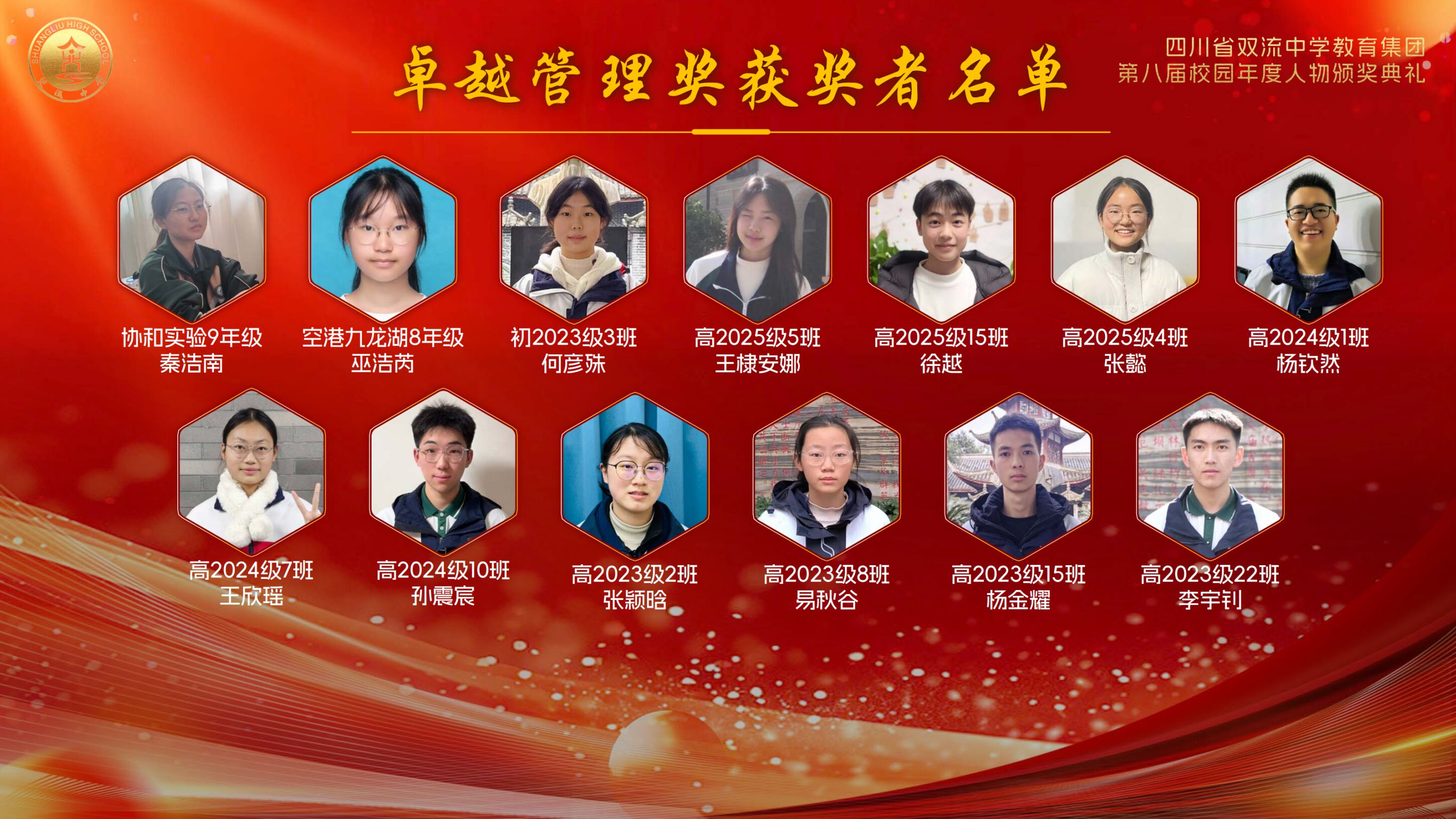 获得“ 精英风采奖”的学生 今夜星光璀璨,明日更值期待。从艺术的盛宴到思想的碰撞,从个人的荣耀到集体的奋进,这场晚会不仅是一场视听享受,更是双流中学教育集团“五育并举”育人成果的生动展示。这场盛会不仅定格了美好瞬间,更凝聚了奋进力量。新的一年,双中教育集团将继续深耕育人沃土,培育更多栋梁之材;双中学子也将以榜样为光,奋楫启航,奔赴更灿烂的未来!