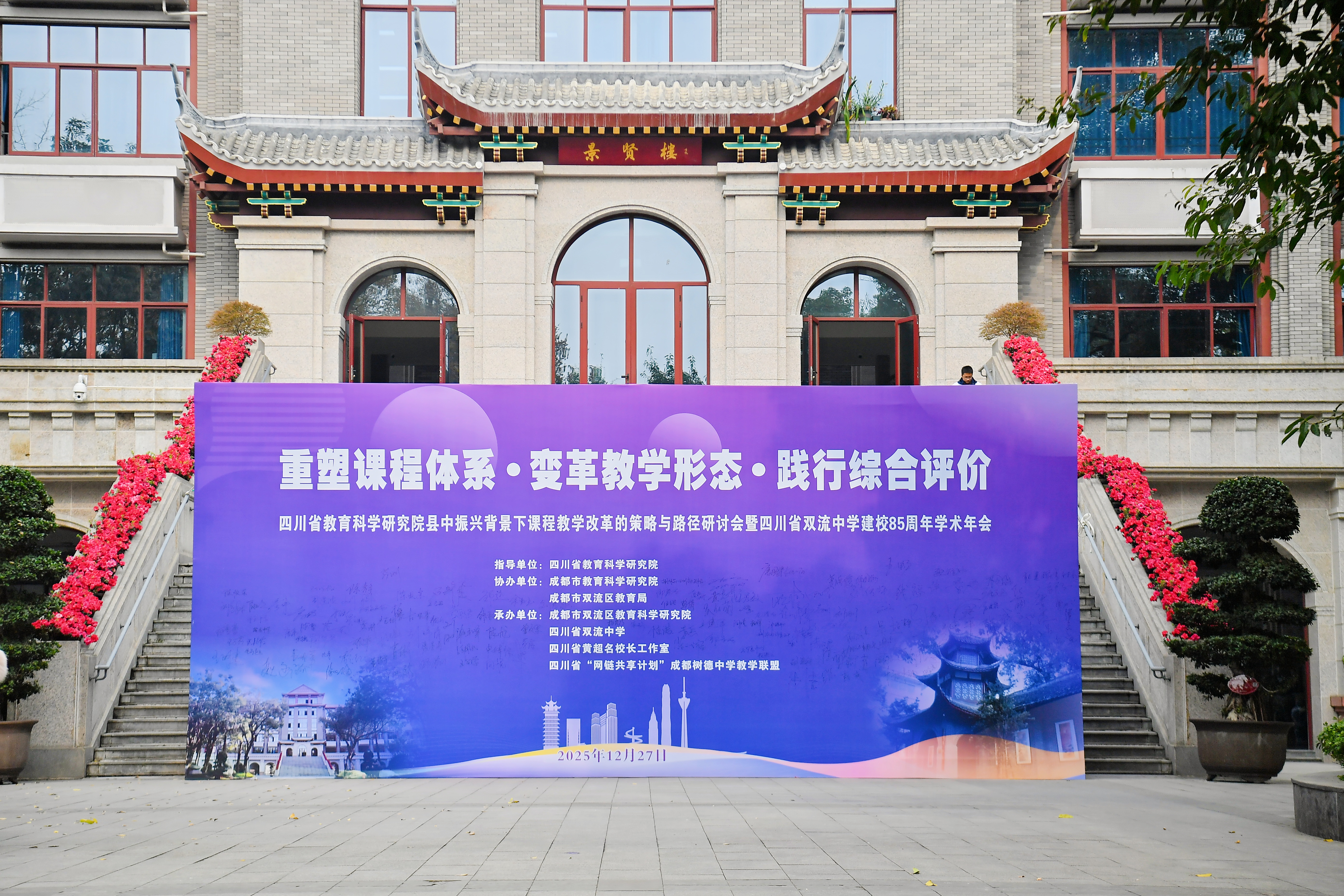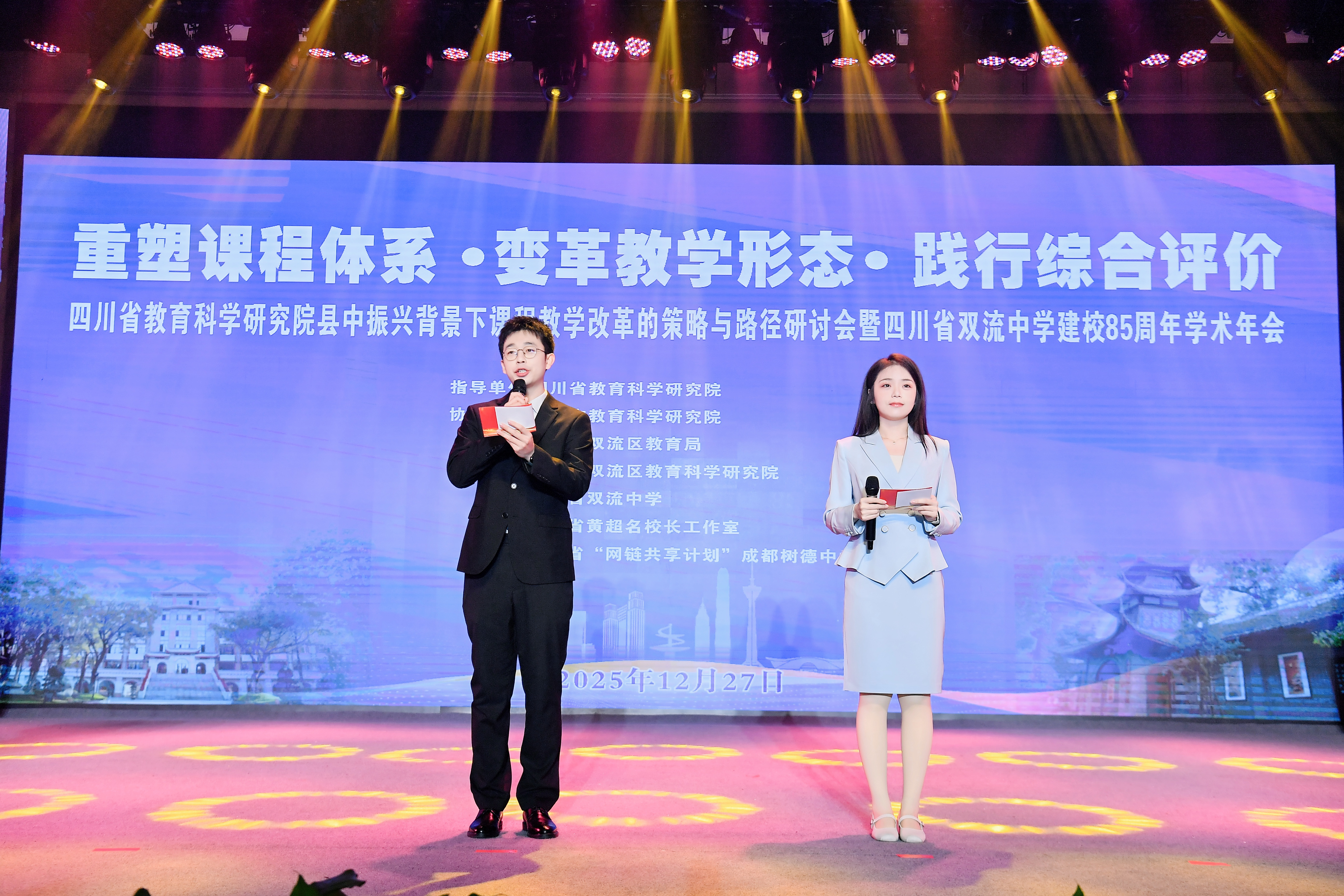 岁末蕴新,冬阳融暖。2025年12月27日上午,四川省教育科学研究院“县中振兴背景下课程教学改革的策略与路径研讨会”暨四川省双流中学建校85周年学术年会在双流中学学术厅盛大启幕。来自省内外教育主管部门领导、知名专家学者、全省各地中学校长、教师代表及教育联盟同仁齐聚一堂,共襄这场思想与智慧交融的学术盛会。