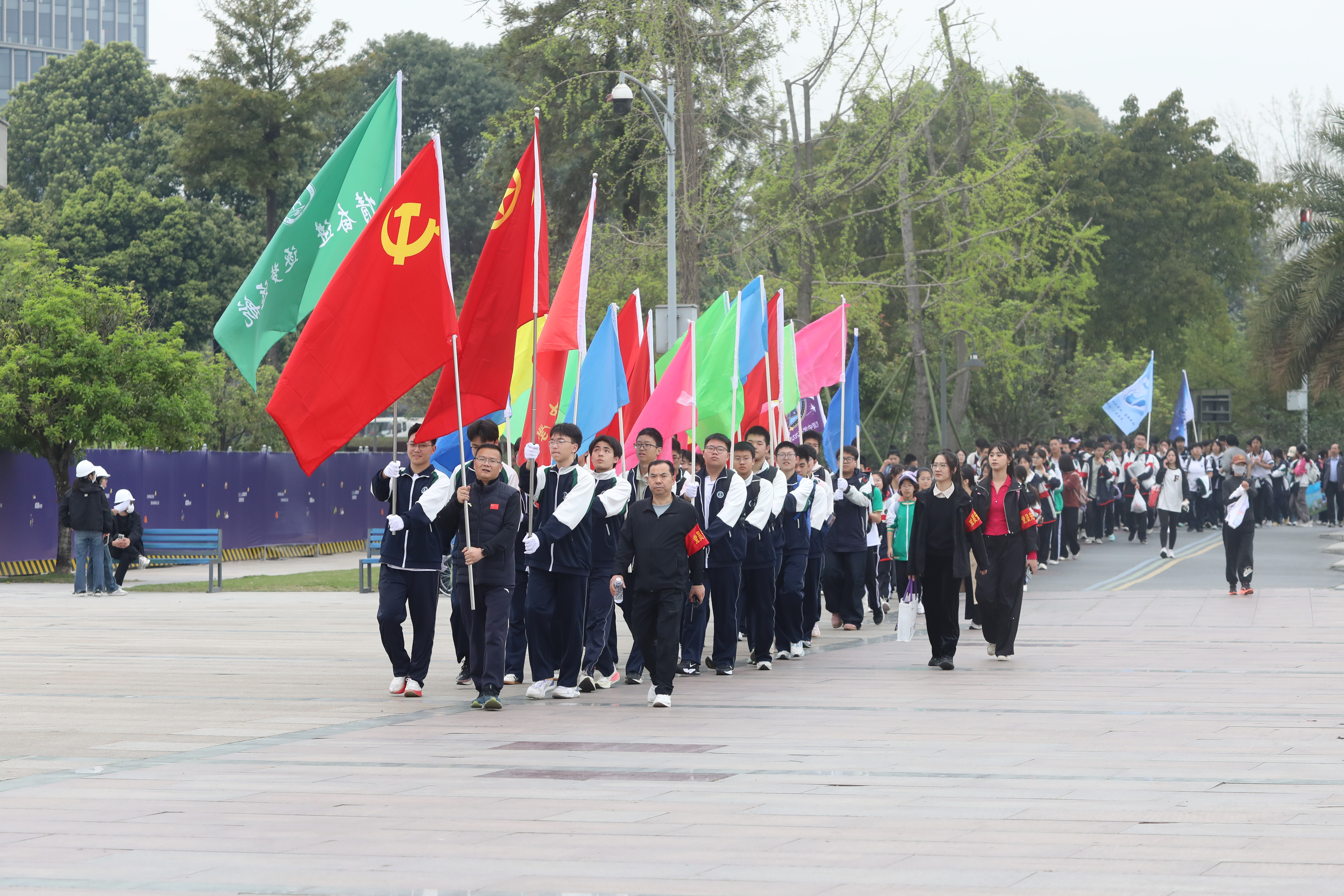 以双流中学党委书记为首的彩旗方队引领队伍前进二、步履铿锵,征途砺初心