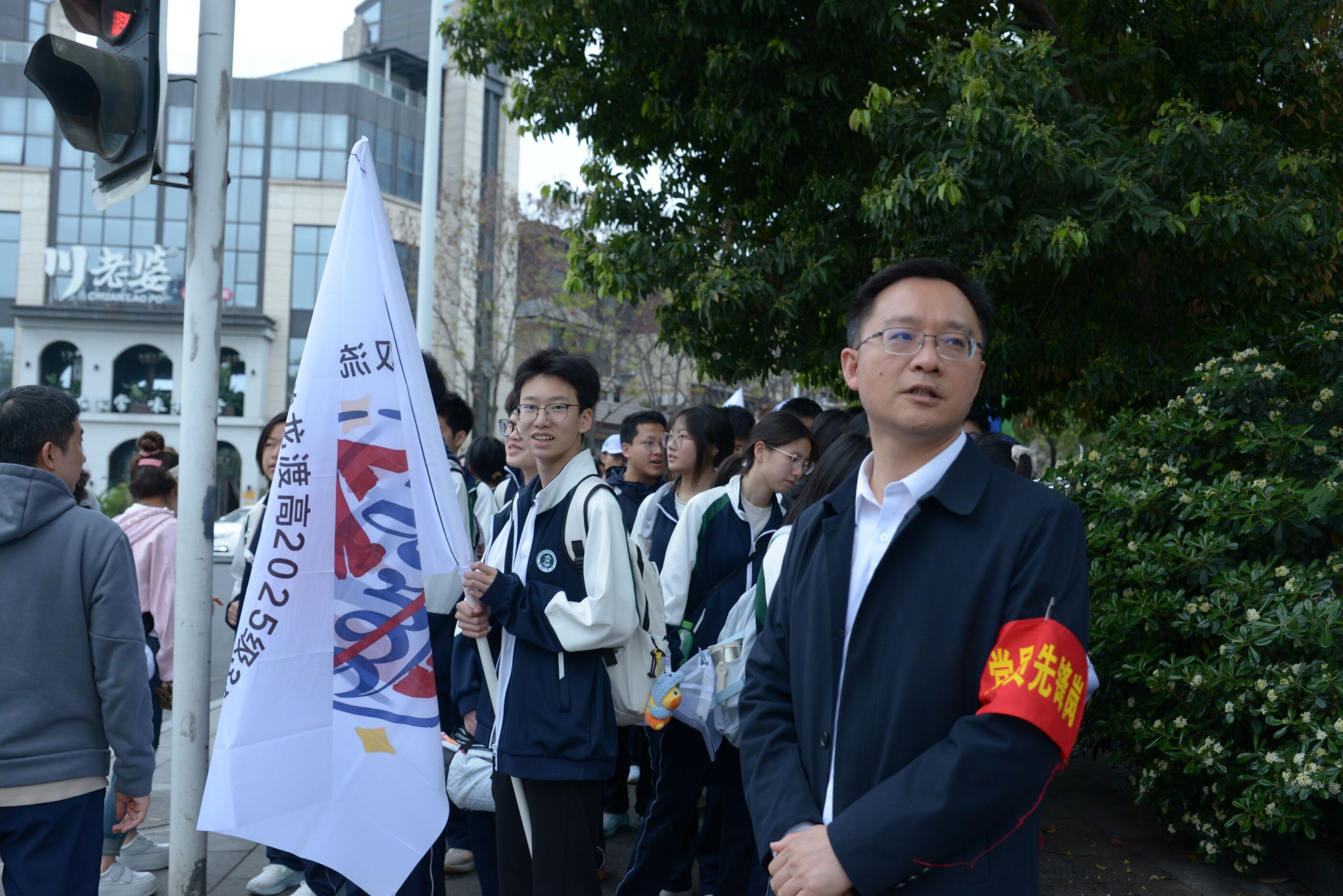 十八公里跋涉,是体能挑战,更是意志锤炼。十三公里去程,学子们结对同行、彼此支撑,无人轻言退缩;班级接力传唱励志之歌,嘹亮歌声为前行注入动力。各保障组全程护航:交通组值守路口疏导通行,安全组紧跟队伍守护平安,医护车辆组时刻待命保障健康,老师与家长志愿者一路暖心相伴。学子们严守规矩、文明前行,将双中素养体现在细节,在坚持中炼勇气,在互助中懂担当。