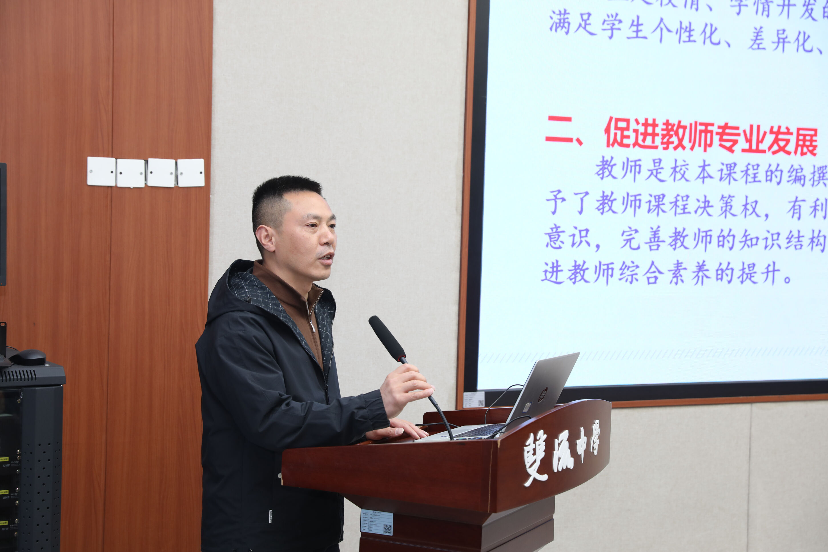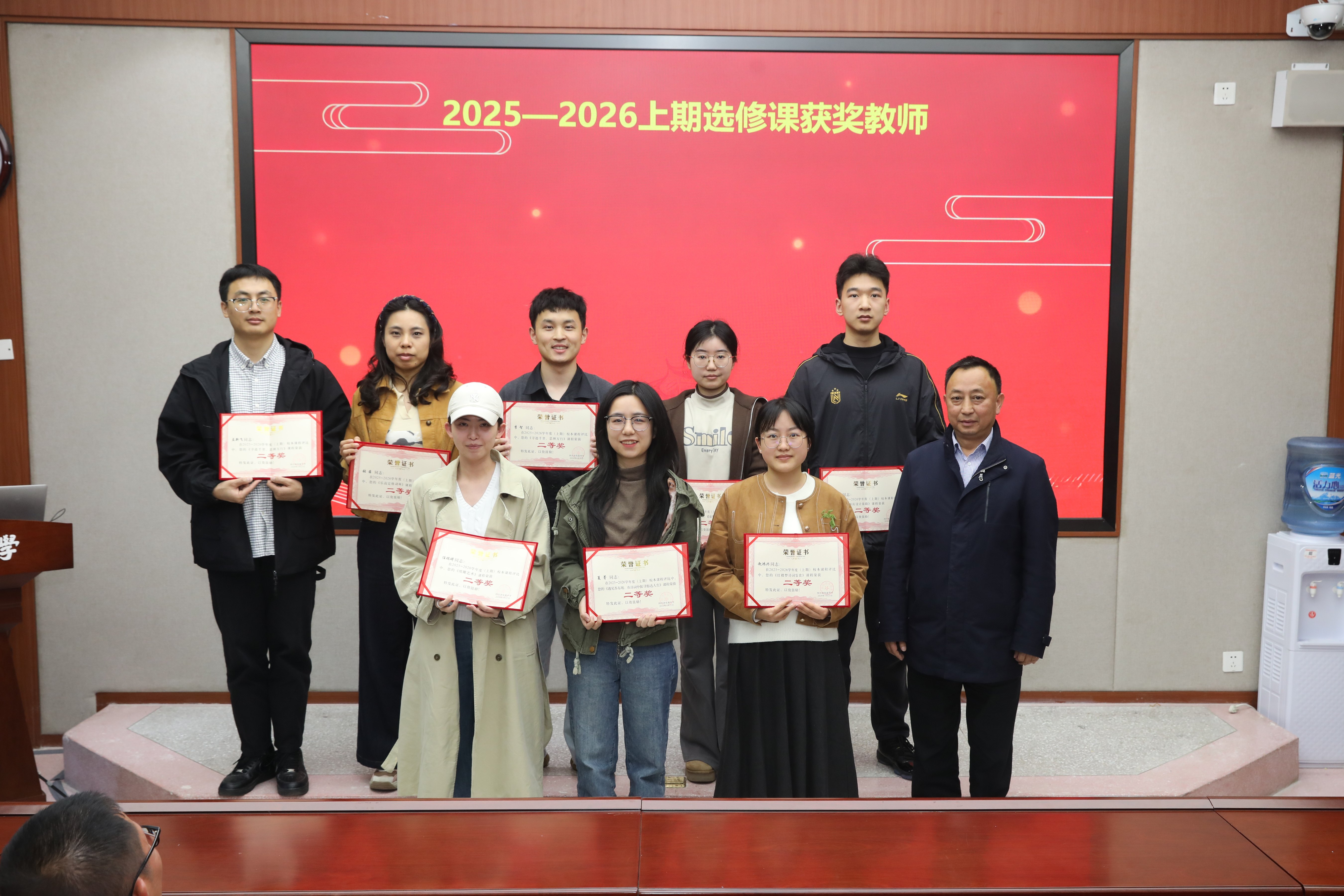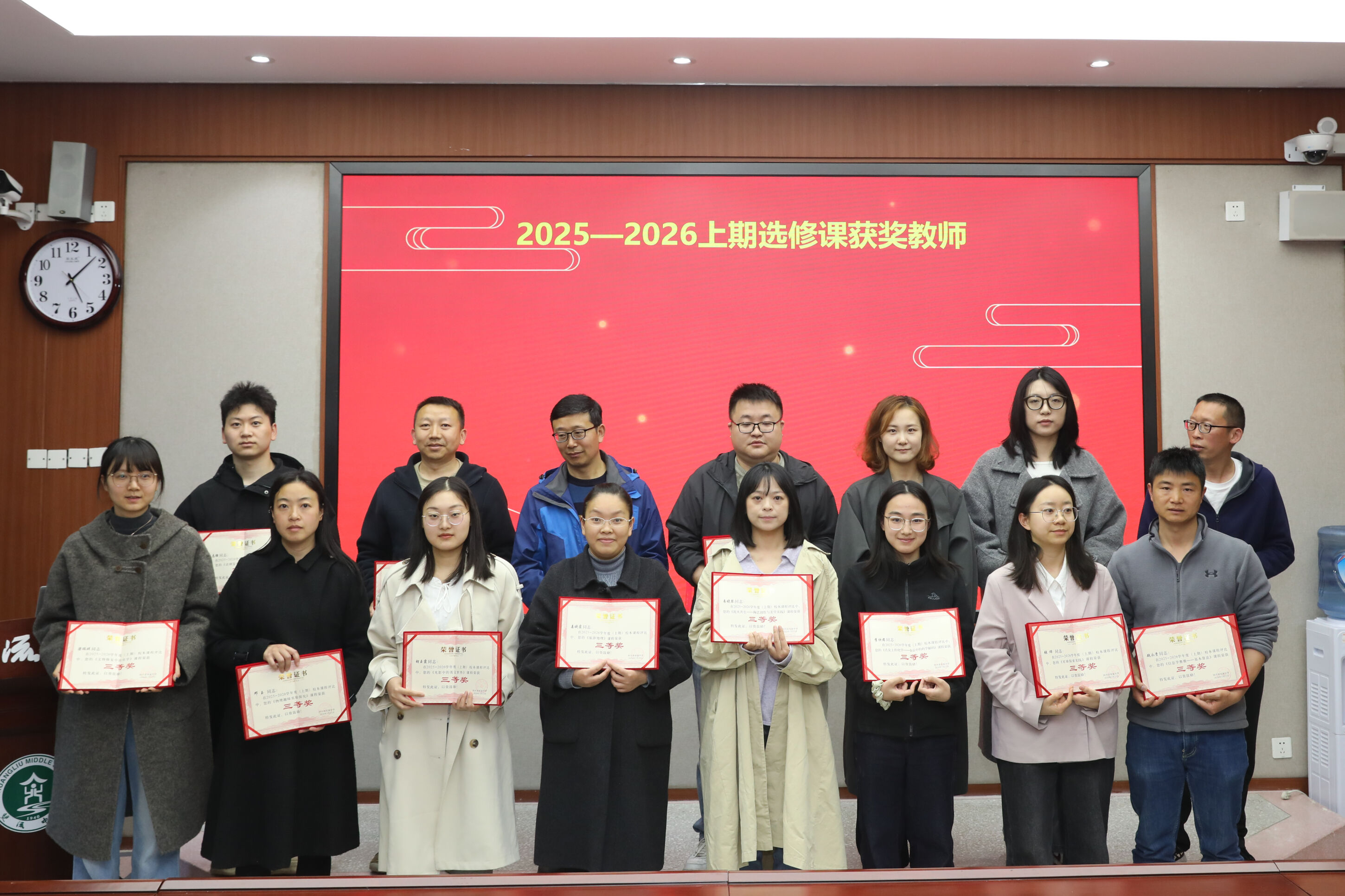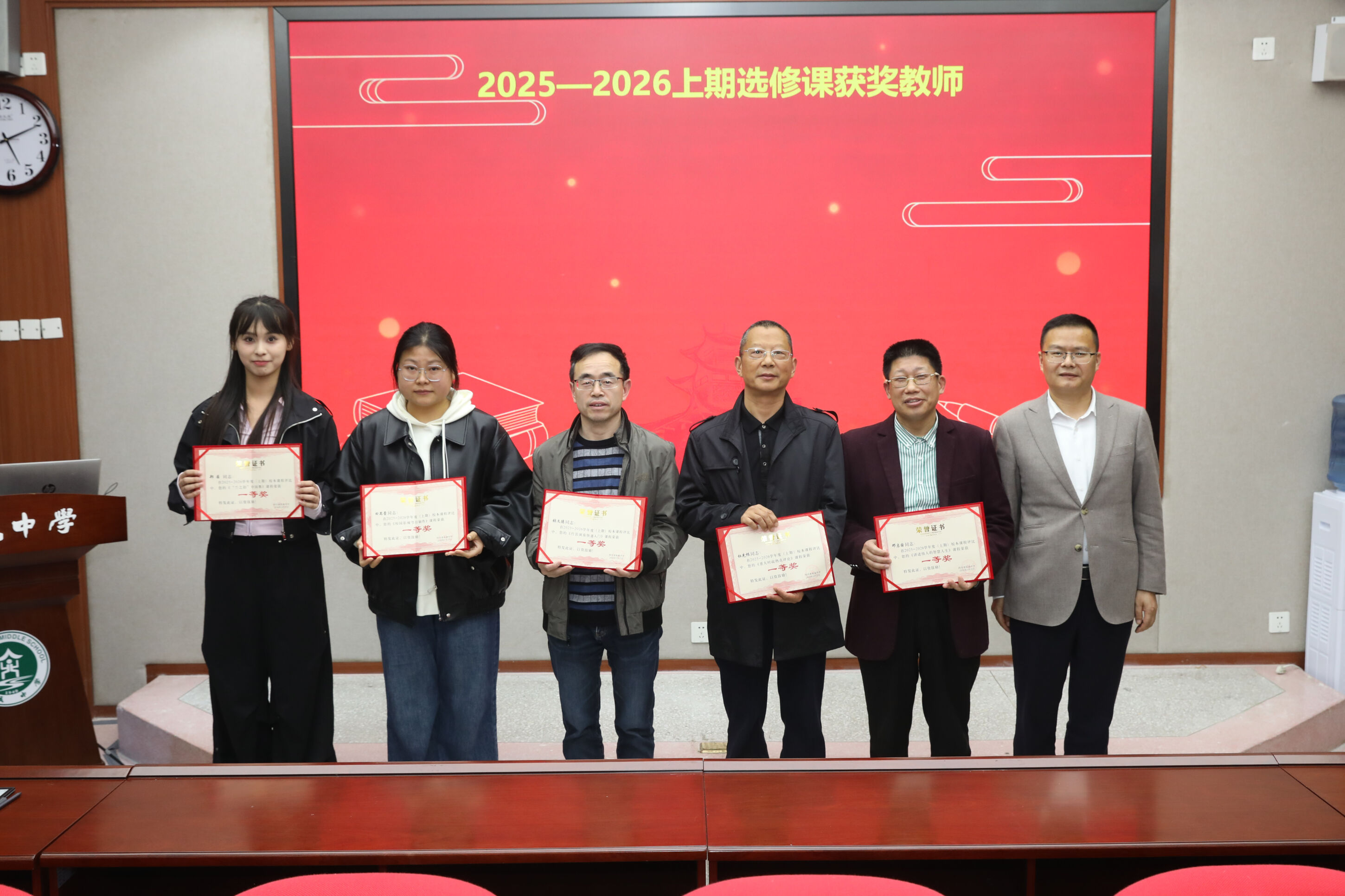 图一3会上,曾月波副主任强调了校本课程对于学校特色发展与学生个性化成长的重要意义,表彰了优秀课程和获奖教师,与会领导分别为获奖教师颁发荣誉证书。会议全面总结了上学期工作,部署了新学期教学任务与要求,为选修课的高质量运行奠定了坚实基础。