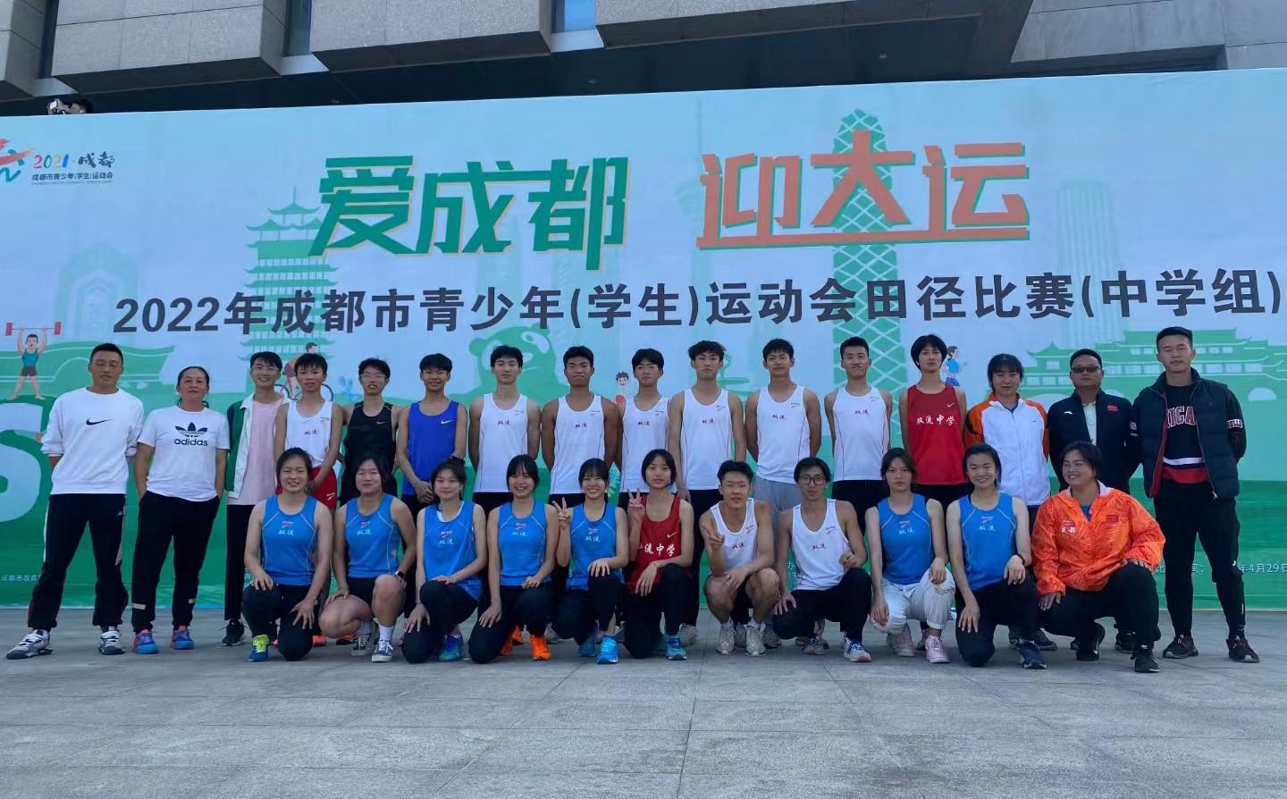 双中田径队在谭书华、唐俊美、李立、邹川教练的带领指导下,双流中学田径队队员李湘在跳远项目、刘鑫琪在铅球项目、谢靖在铁饼项目以及张茂毅、孙楚涵和刘金凤在男女混合接力赛中夺得桂冠,其中刘鑫琪在铅球项目取得了破纪录的成绩。最终,双中学生以4金4银3铜和打破一项记录的成绩,排名双流区第一名。